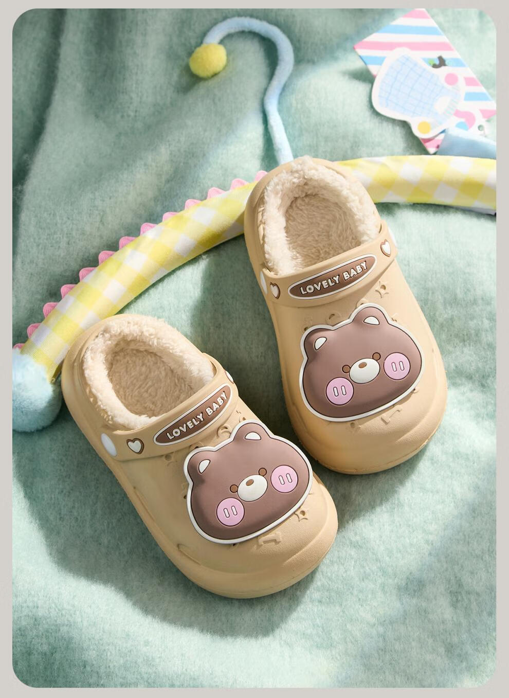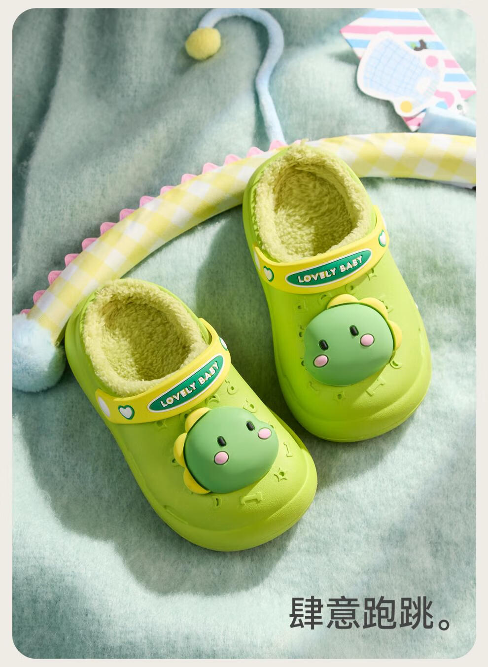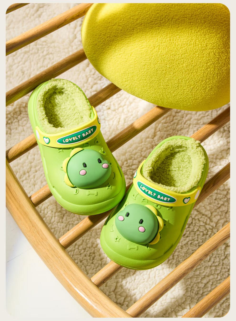 Cheerful Mario Bear Baby Winter Waterproof Warm Cotton Slippers for Infants and Children Autumn and Winter Indoor Home Furnishing Boys and Girls New Style Fruit Green Dinosaur 10.5 Inner Length 14cm (15) Suitable for Foot Length 14cm
