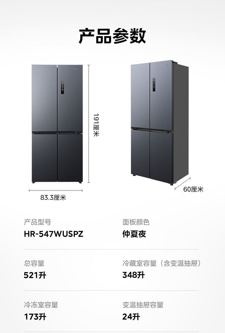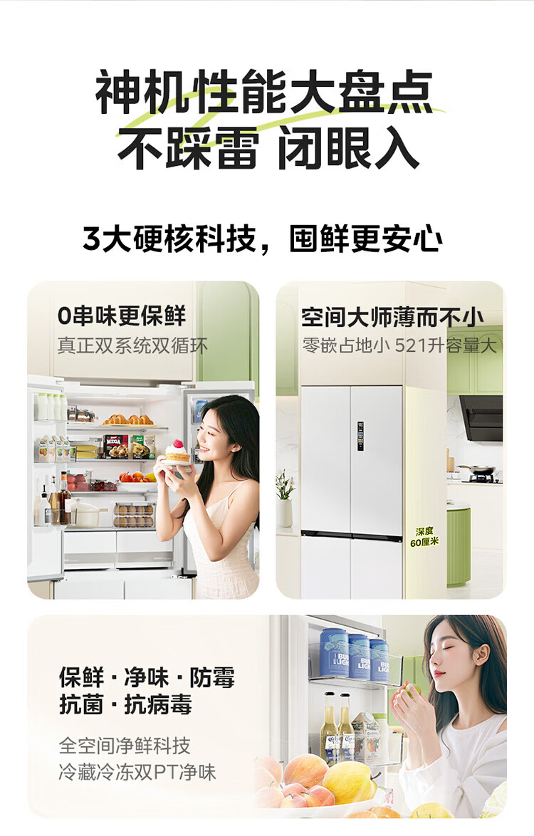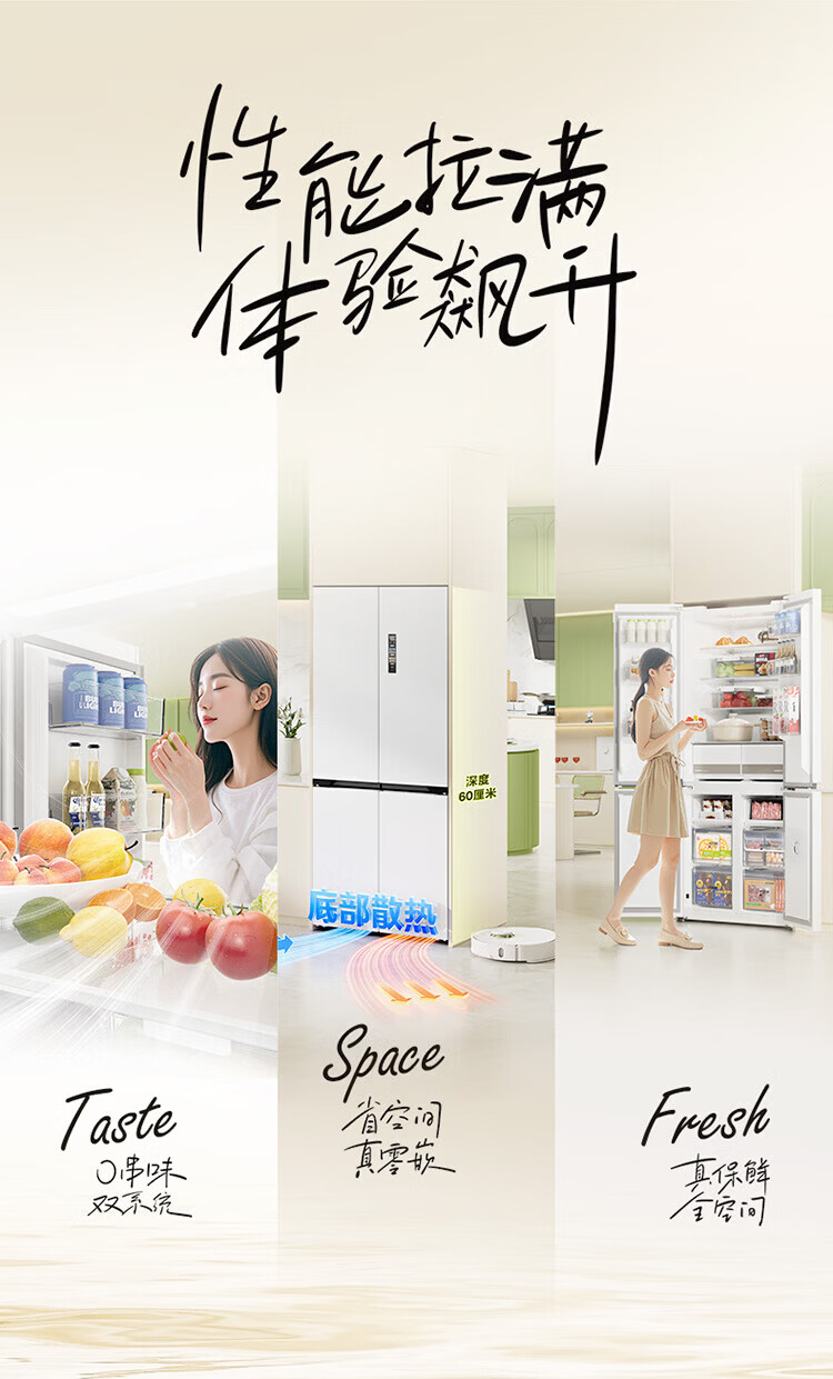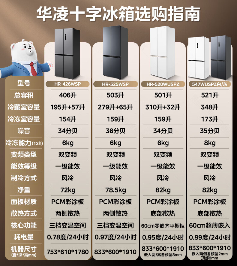 Midea produces Hualing refrigerator cross-door double-door multi-door first-class energy efficiency dual-frequency air-cooled frost-free household four-door refrigerator 426/525/520 Cross 426丨Hot-selling first-class dual-frequency ultra-thin