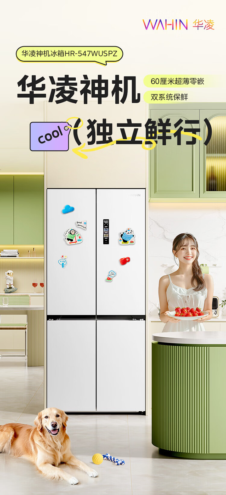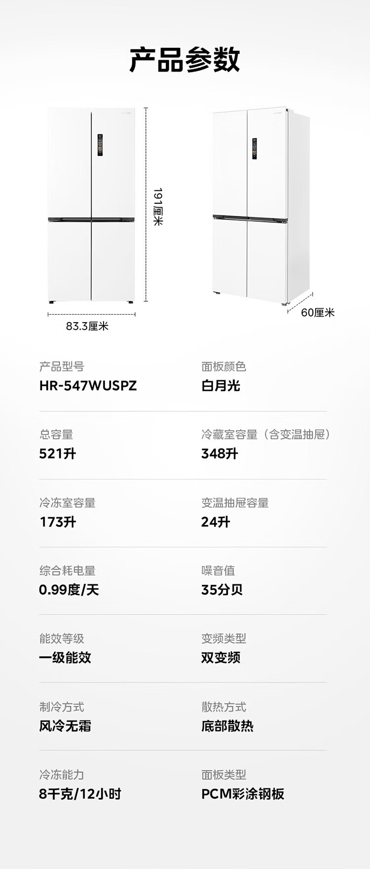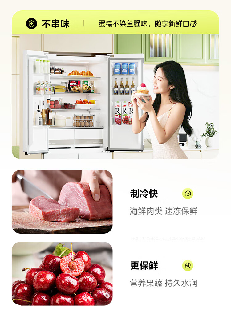 Midea produces Hualing refrigerator cross-door double-door multi-door first-class energy efficiency dual-frequency air-cooled frost-free household four-door refrigerator 426/525/520 Cross 426丨Hot-selling first-class dual-frequency ultra-thin
