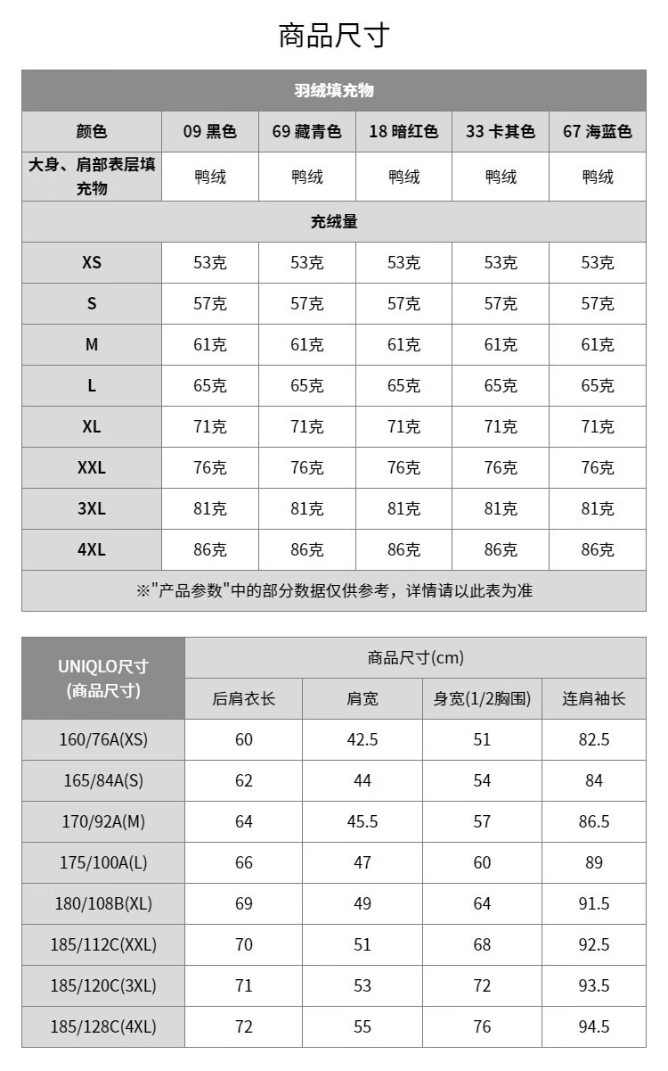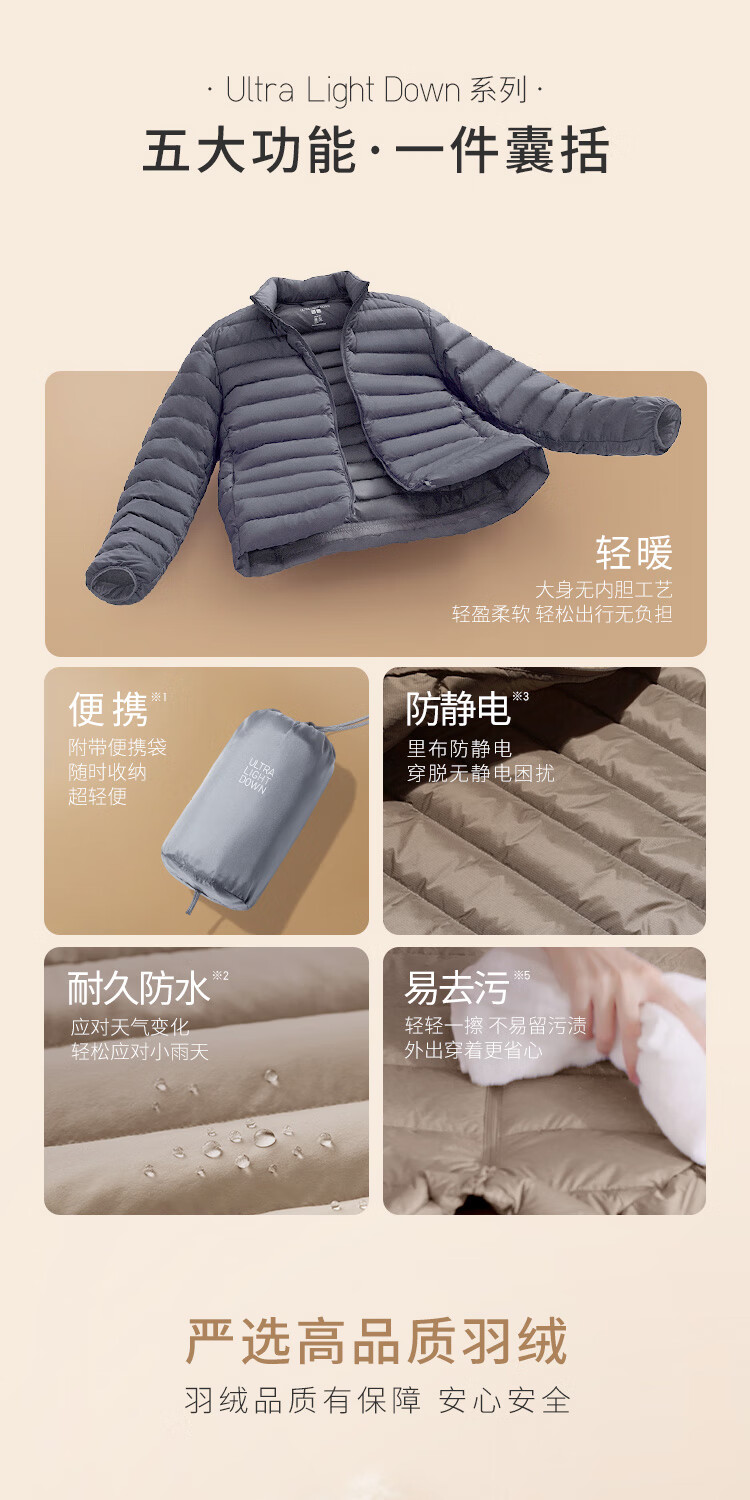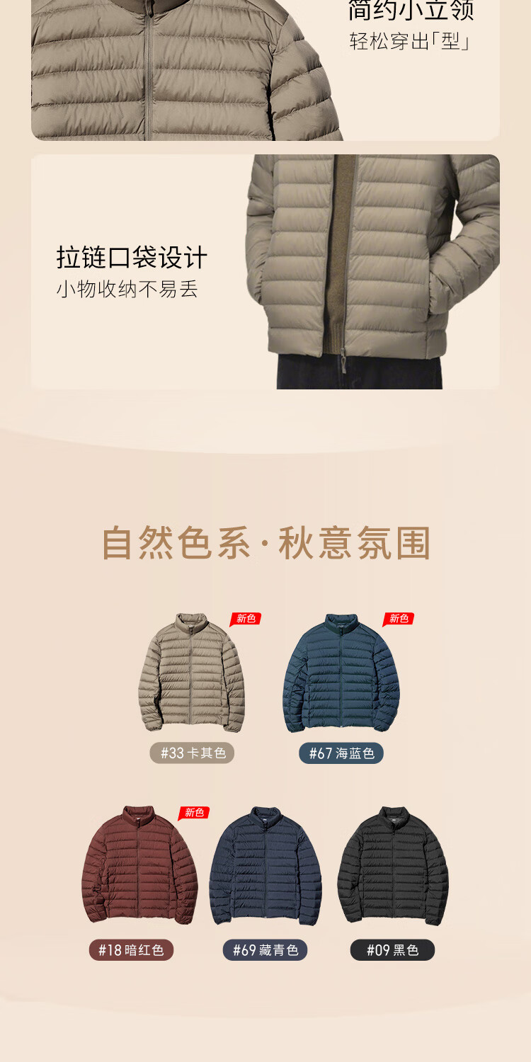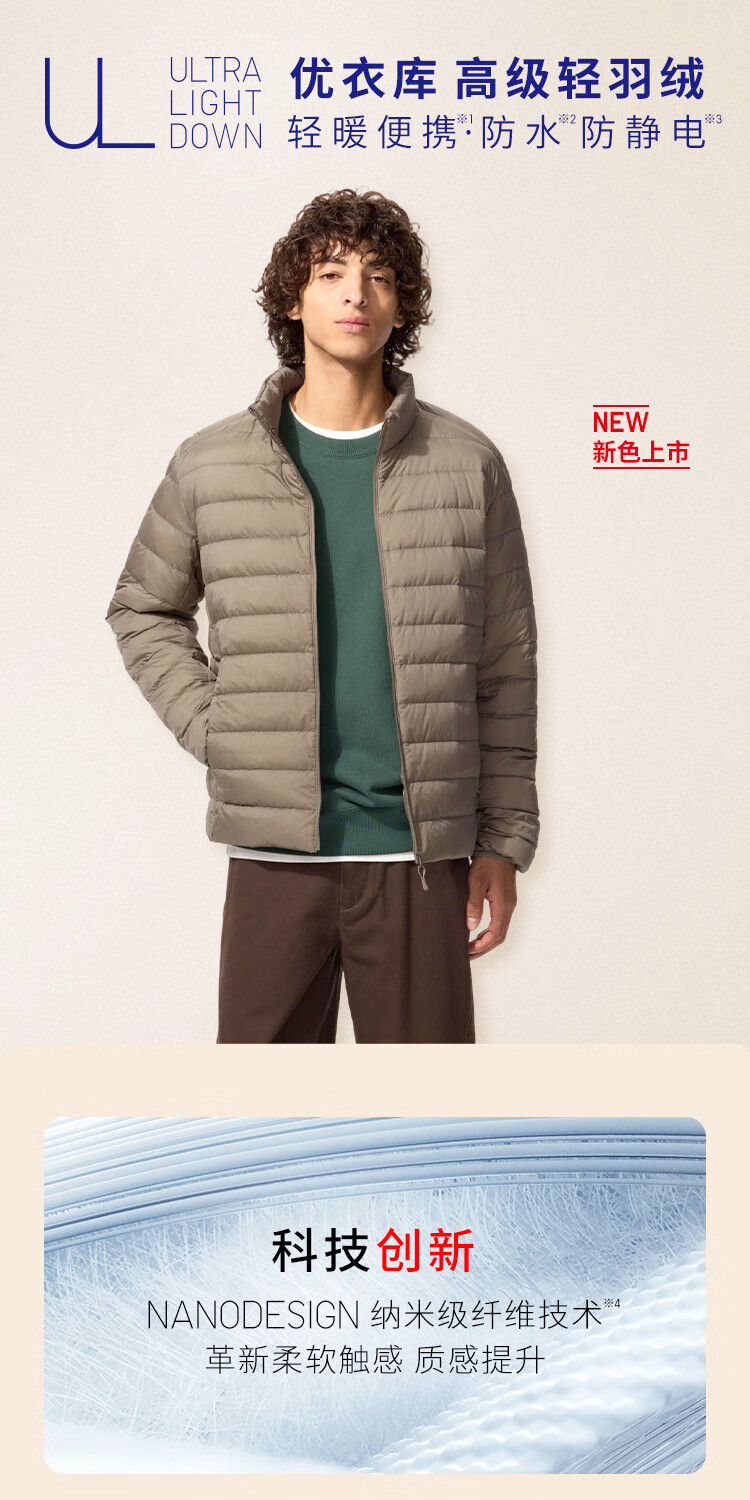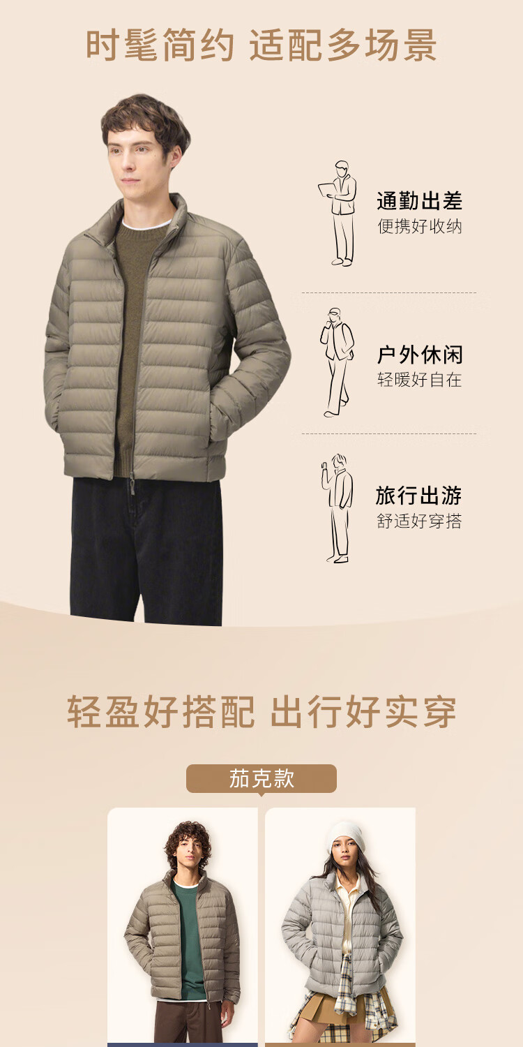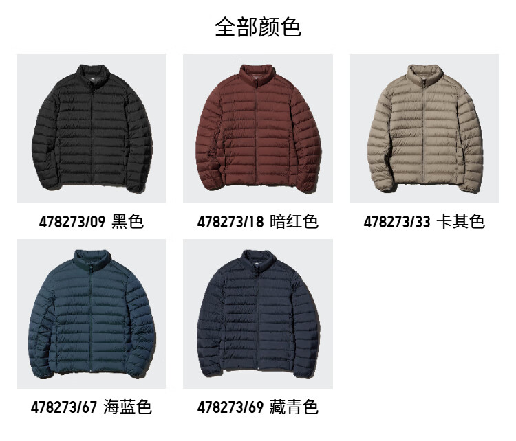 优衣库男装女装高级轻型羽绒茄克便携立领外套排骨夹克478273 478273/09黑色 XL