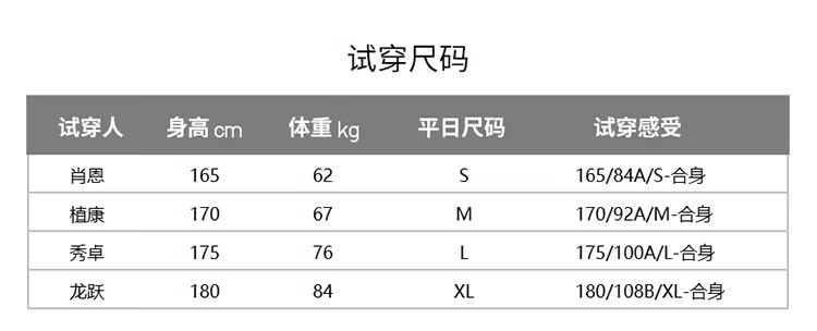 China (cm) 160-165/84-86 165-170 / 88-90 167-172 / 92-96 168-173 / 98-102 170-176 / 106-110