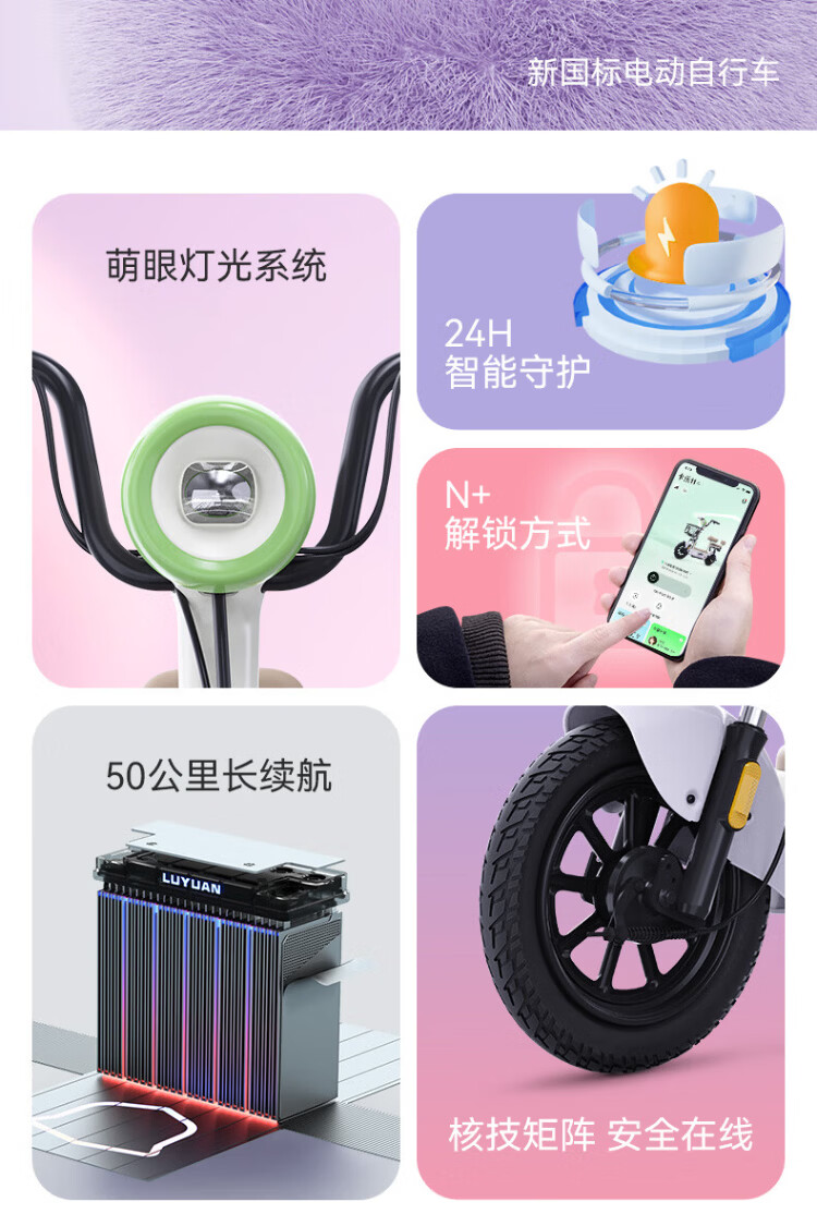 Luyuan Store Pickup Carle 11 New National Standard Electric Bicycle Intelligent Cost-Effective Anti-Flame Retardant Electric Bicycle Adult Commuting Small-sized Electric Bicycle Can Be Licensed Go to the store to choose the color - 48V20A lead-acid