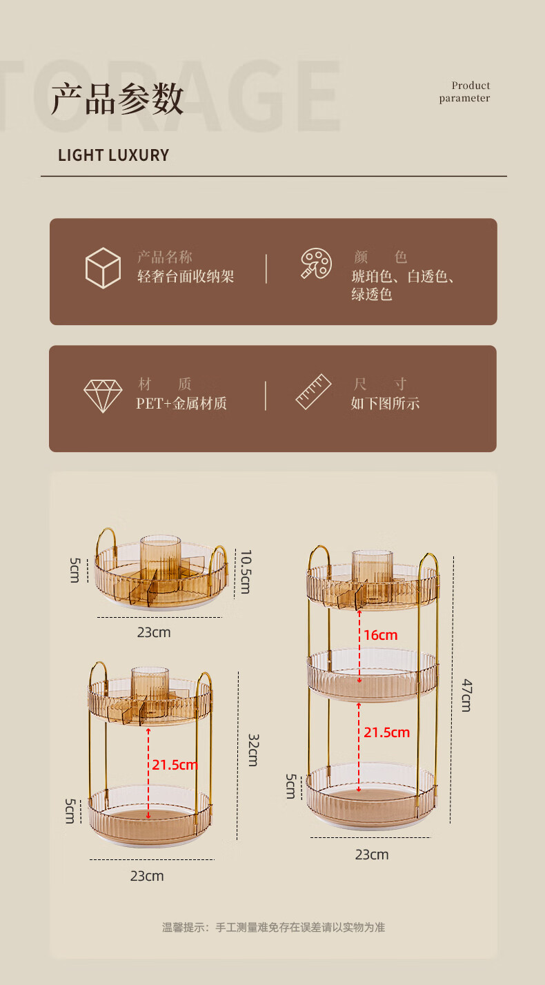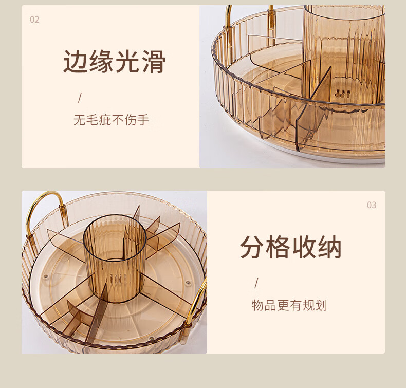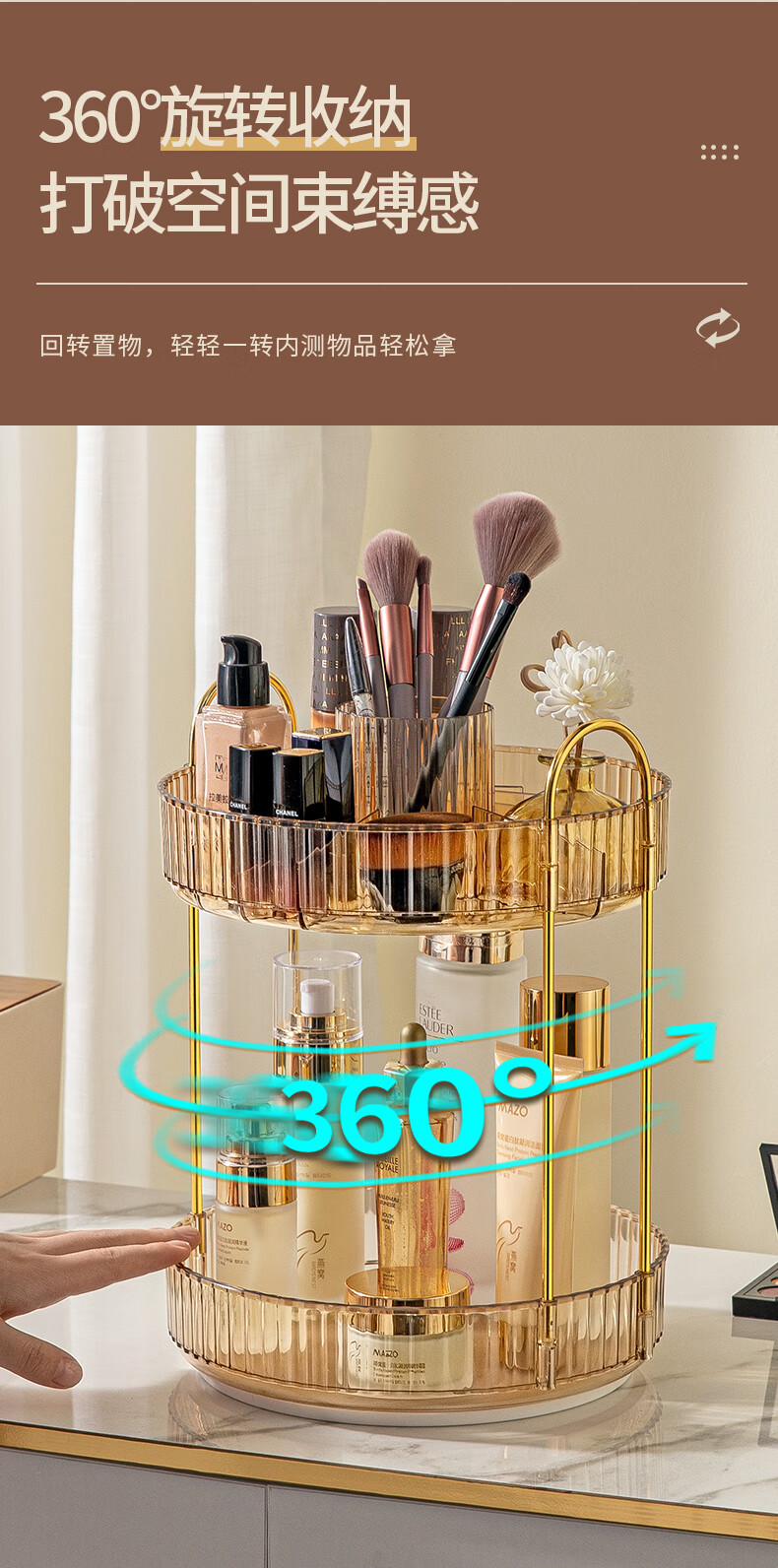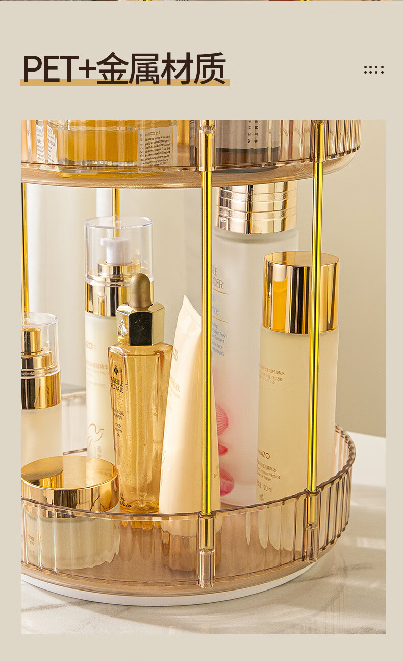 He Jiagong Light Luxury Cosmetics Storage Box Desktop Rotatable Dressing Table Skin Care Product Rack Lipstick Makeup Brush Eyebrow Pen Holder Three-layer Double-layer Storage Top Storage Recommended Model Amber Gold