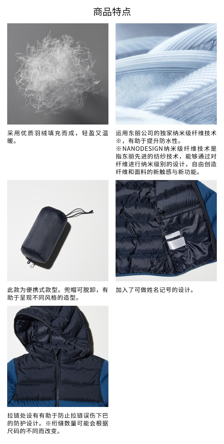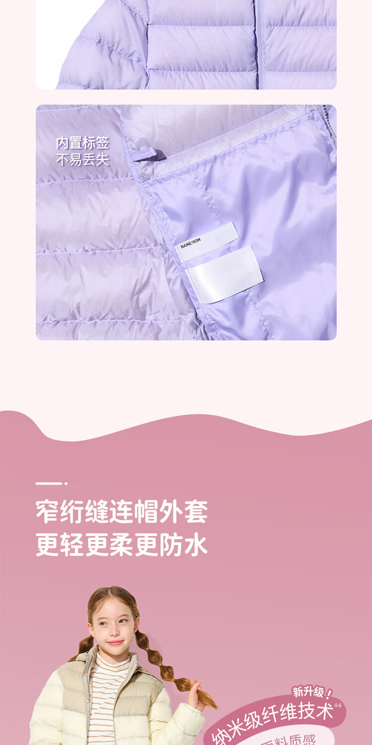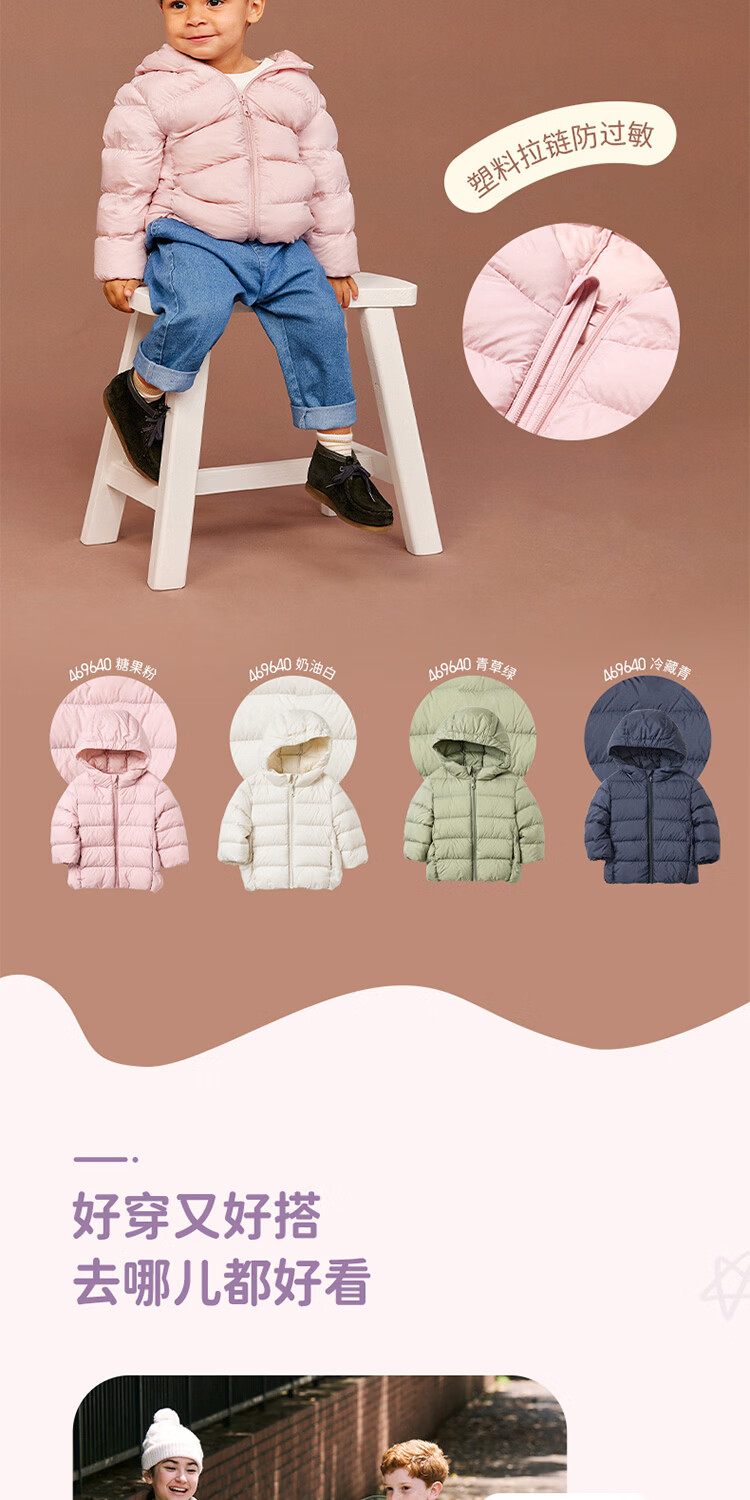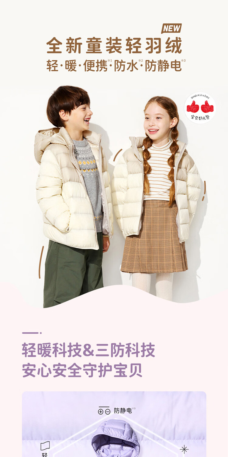 Uniqlo children's clothing for boys and girls, advanced lightweight down hooded jacket with removable hat 471378 01 milky white 110