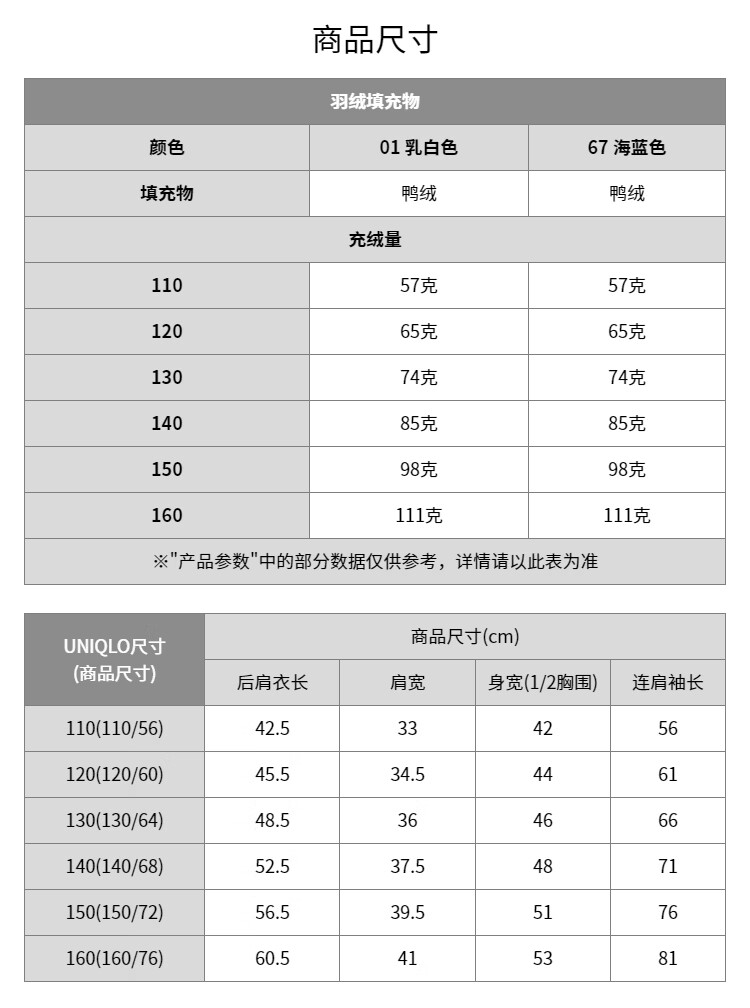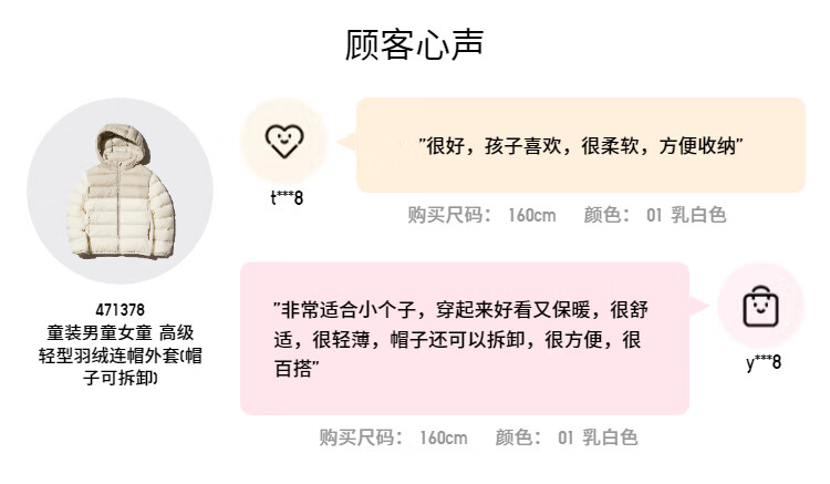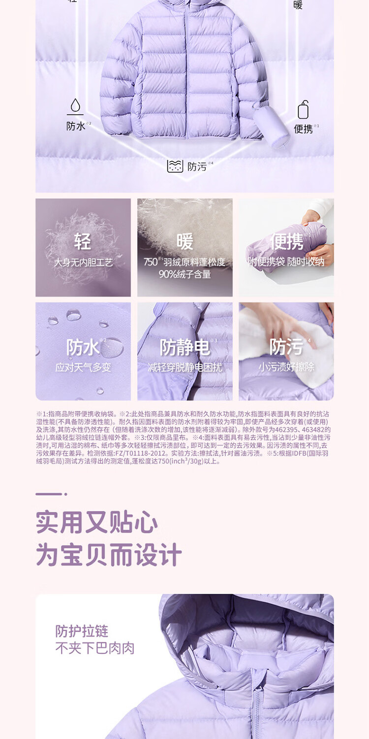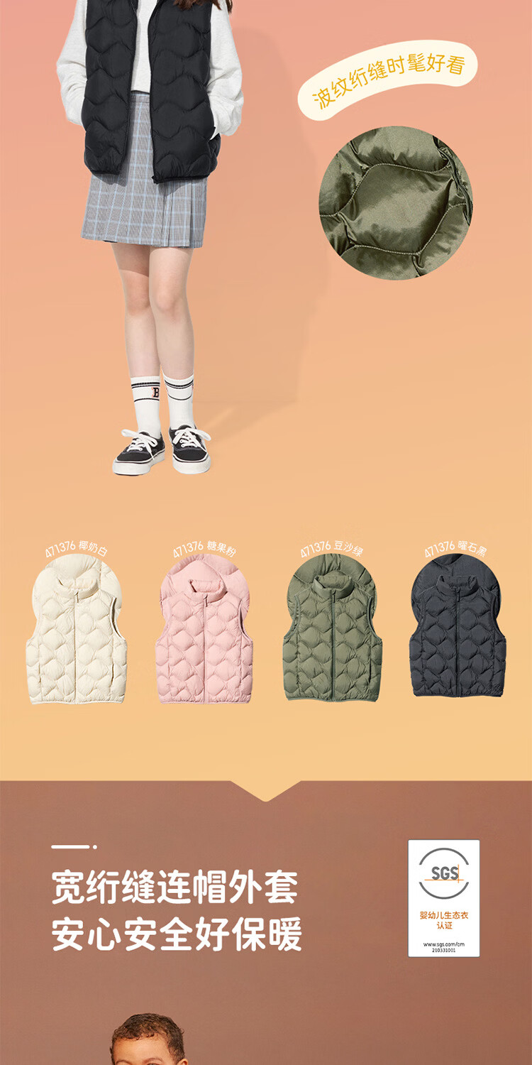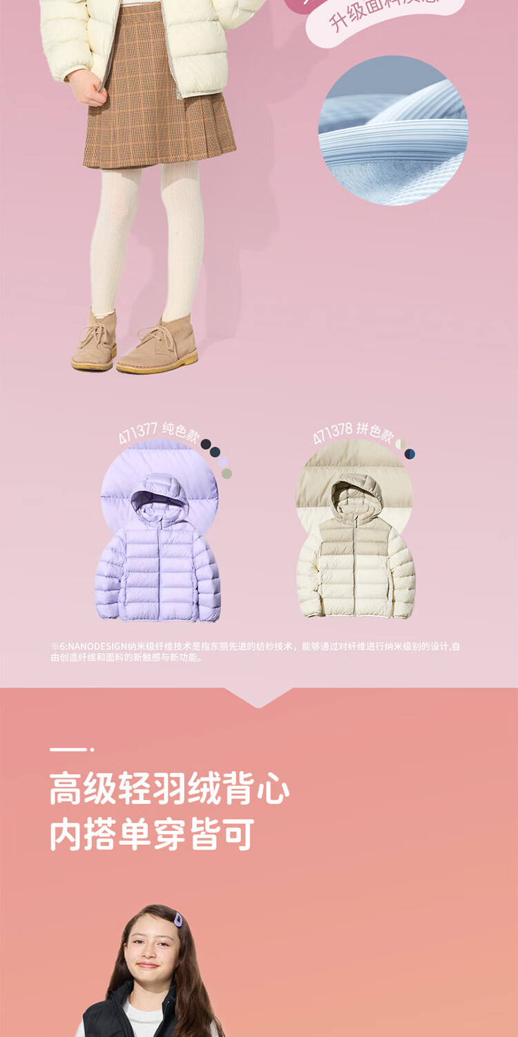 Uniqlo children's clothing for boys and girls, advanced lightweight down hooded jacket with removable hat 471378 01 milky white 110