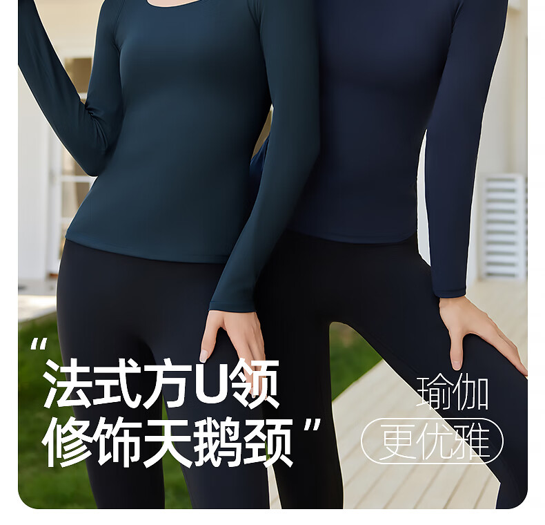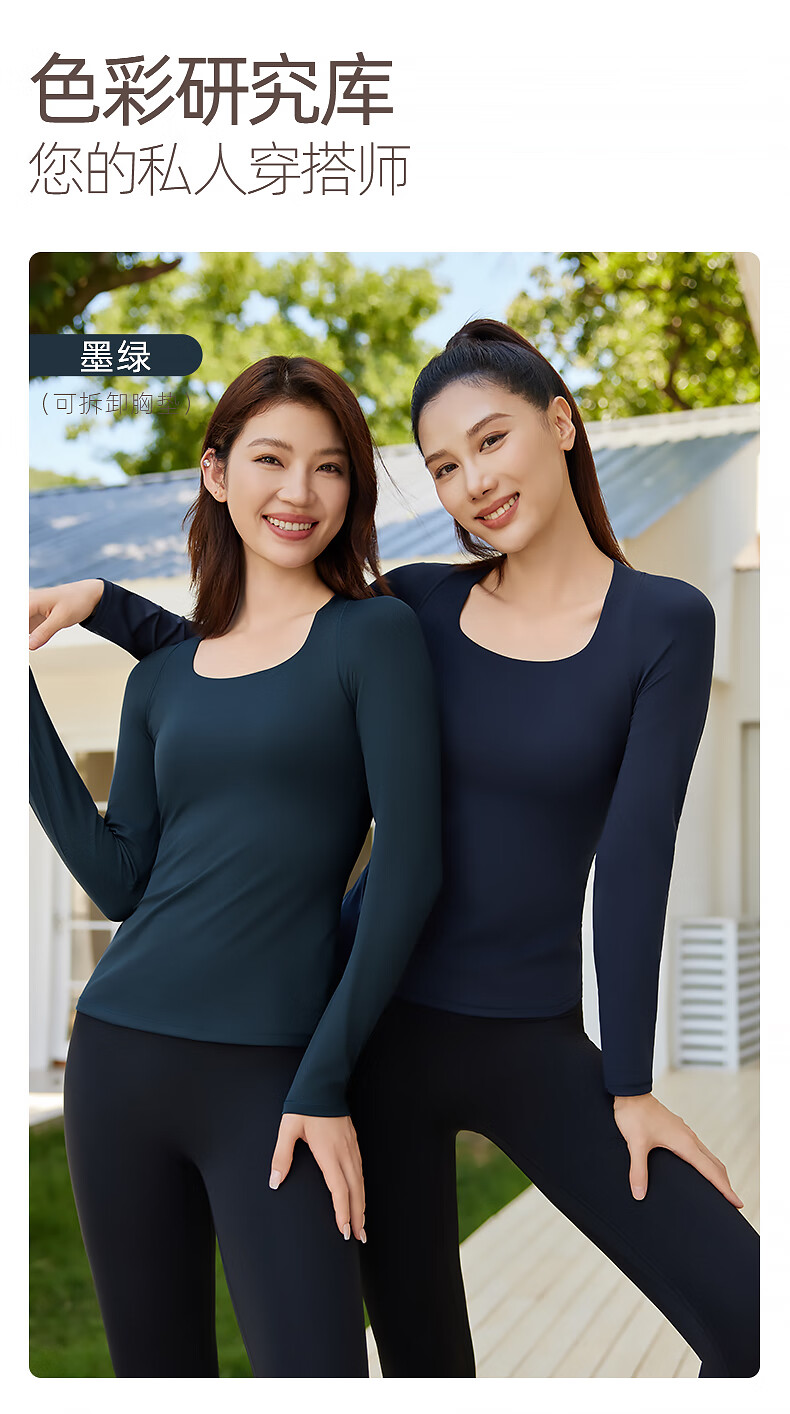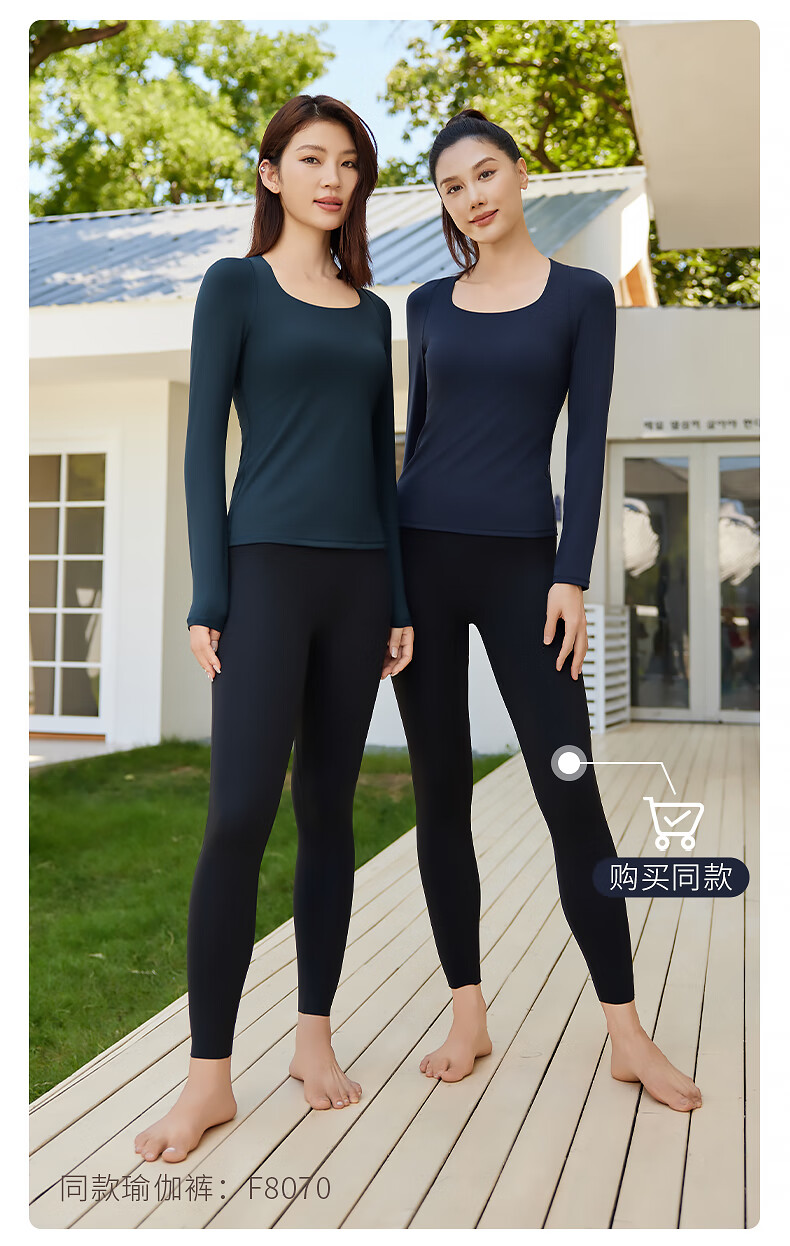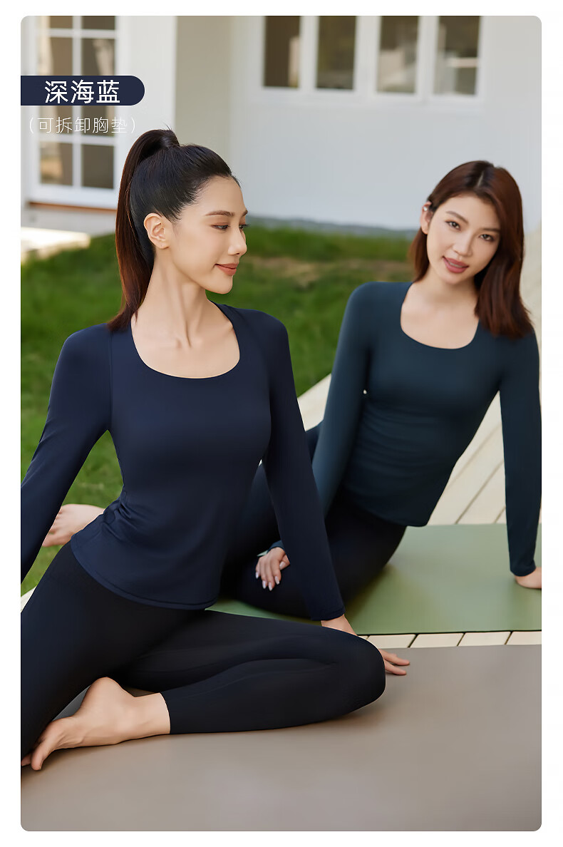 Fanmeiren Fanmeiren yoga top long-sleeved women's 2025 new autumn with chest pad Pilates can be worn outside, beautiful yoga clothes, deep sea blue suit L
