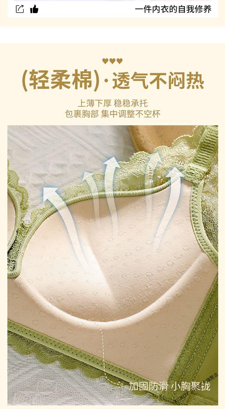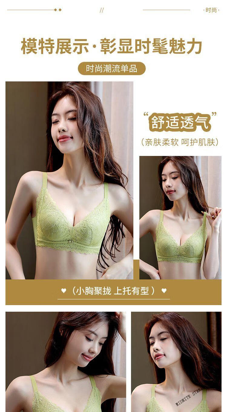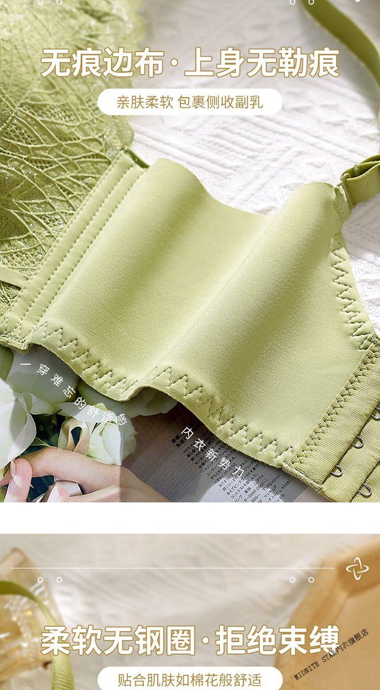 MIDNITE STAR underwear for women with small breasts gathered to look bigger, soft support, pull-up support, anti-sagging, auxiliary breast retraction, adjustable breathable bra, mustard green + pink skin color 70A 32B