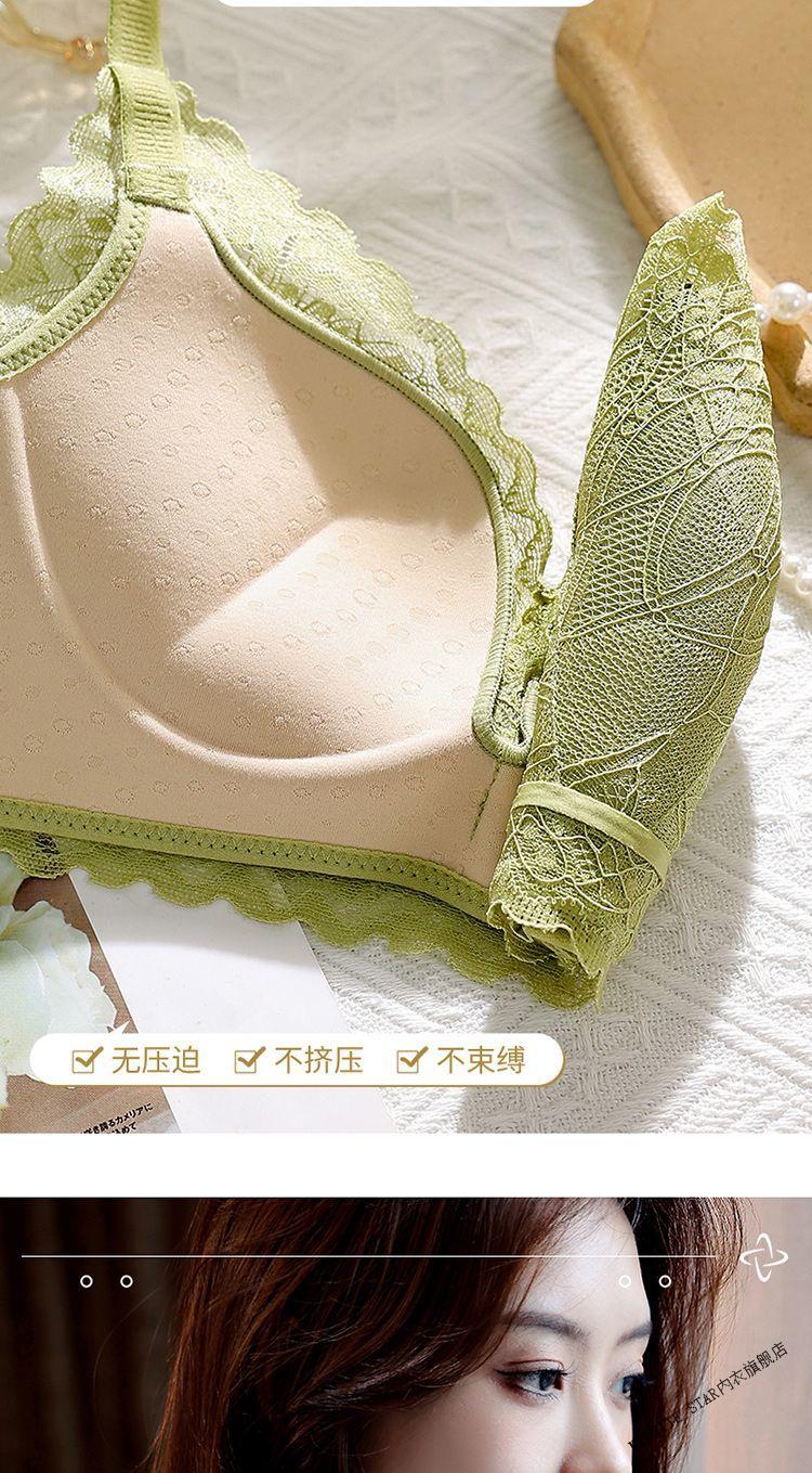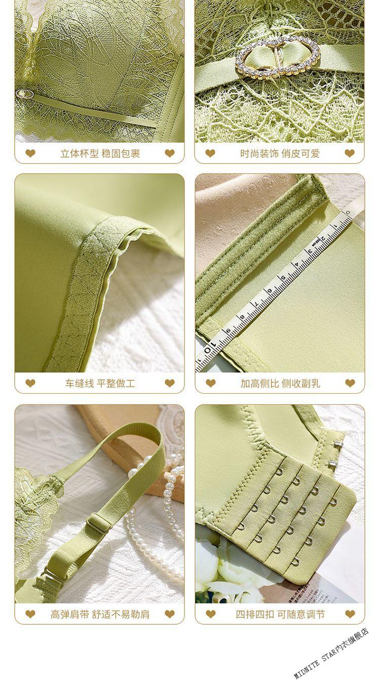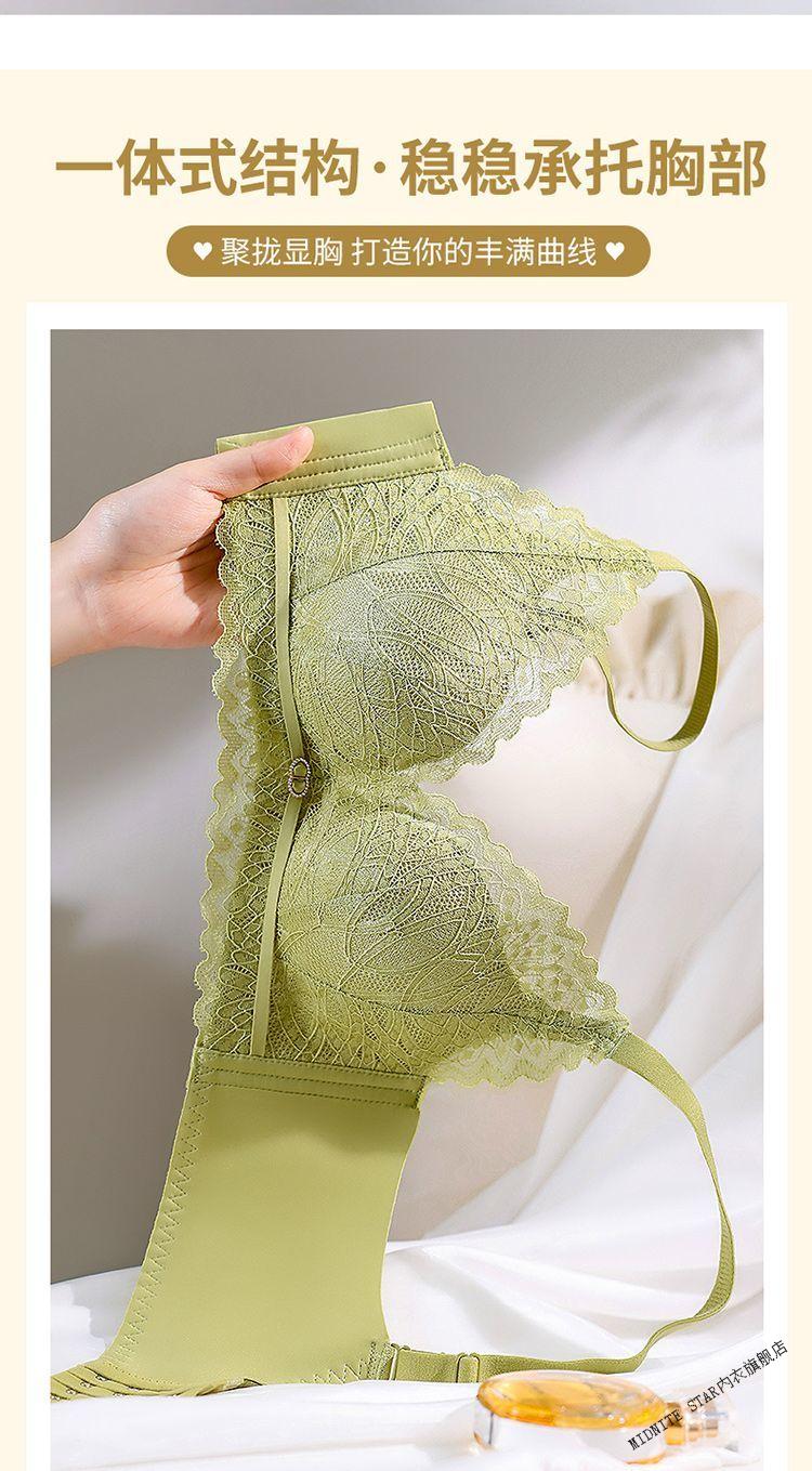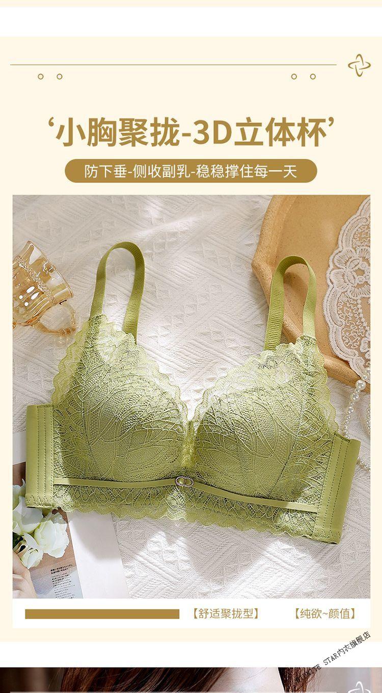 MIDNITE STAR underwear for women with small breasts gathered to look bigger, soft support, pull-up support, anti-sagging, auxiliary breast retraction, adjustable breathable bra, mustard green + pink skin color 70A 32B