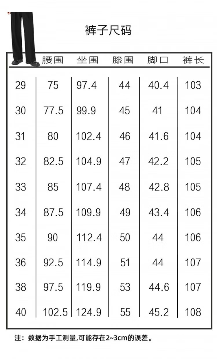 Outseam (cm) 99 cm 101.5 cm 104 cm 106.5 cm 109 cm