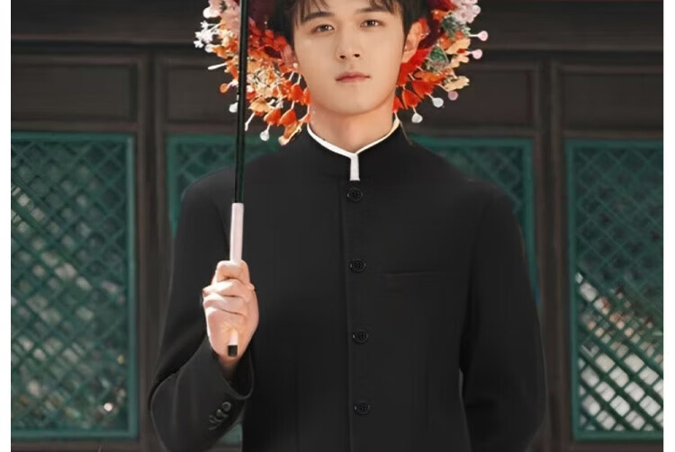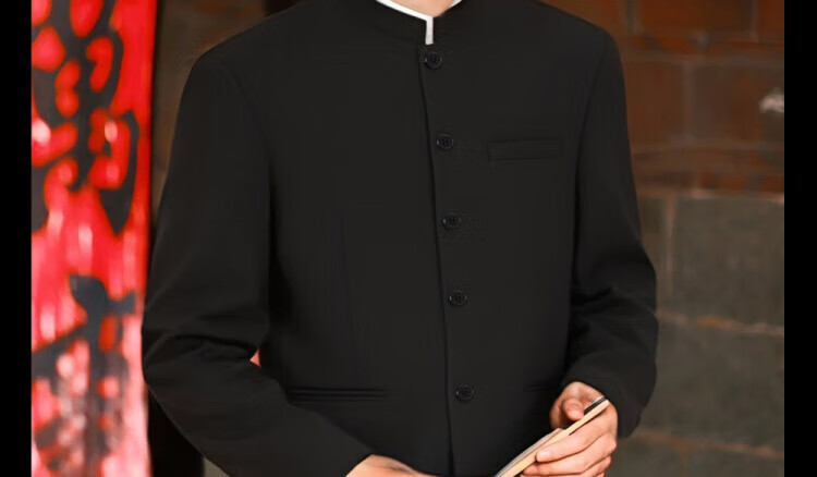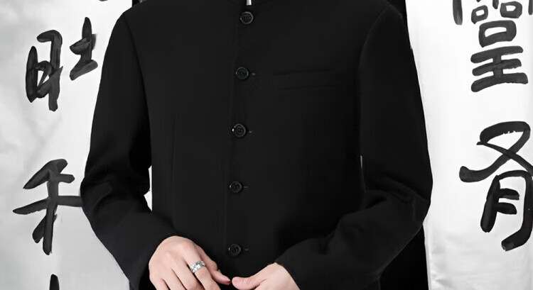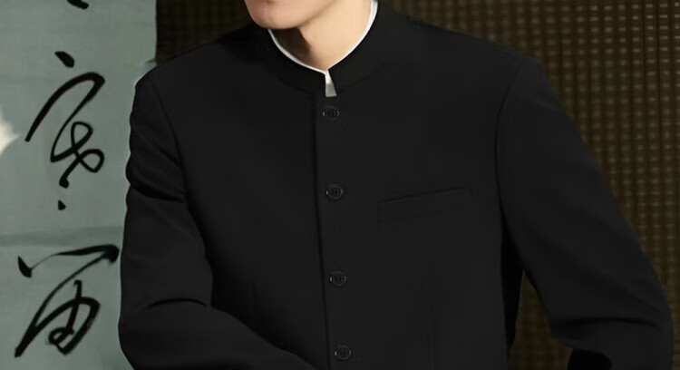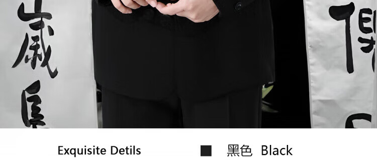 ROMON New Chinese Style Ming Button Chinese Stand Collar Suit Men's Groom Wedding Banquet Suit Chinese Style Art Exam Mao Suit Black Jacket + Pants 2XL (Recommended 171-195 Jin Jin equals 0.5 kg)
