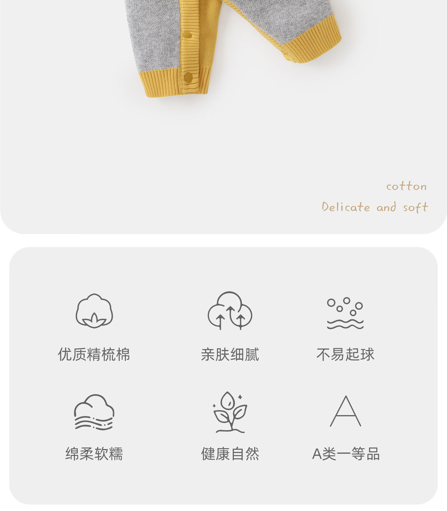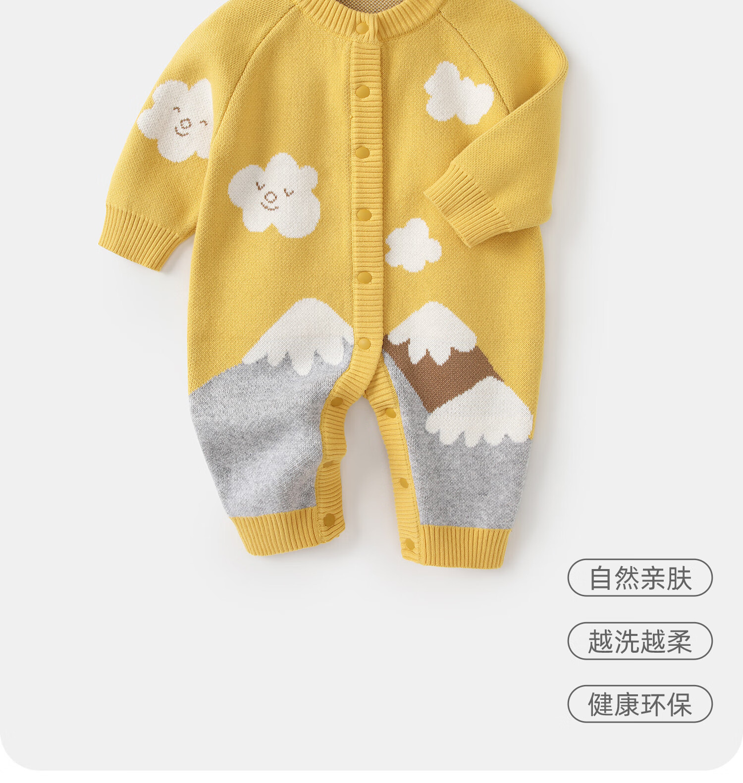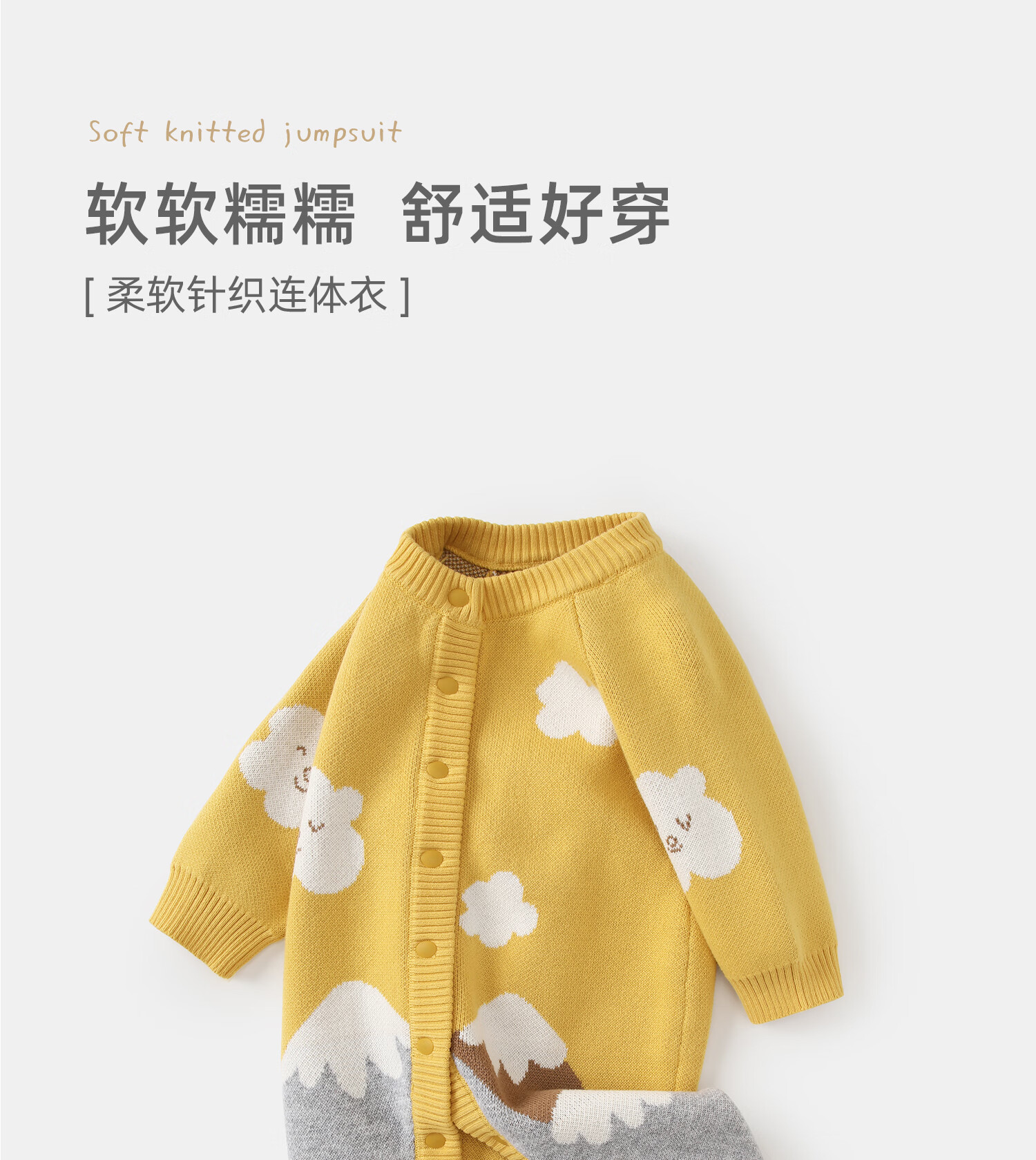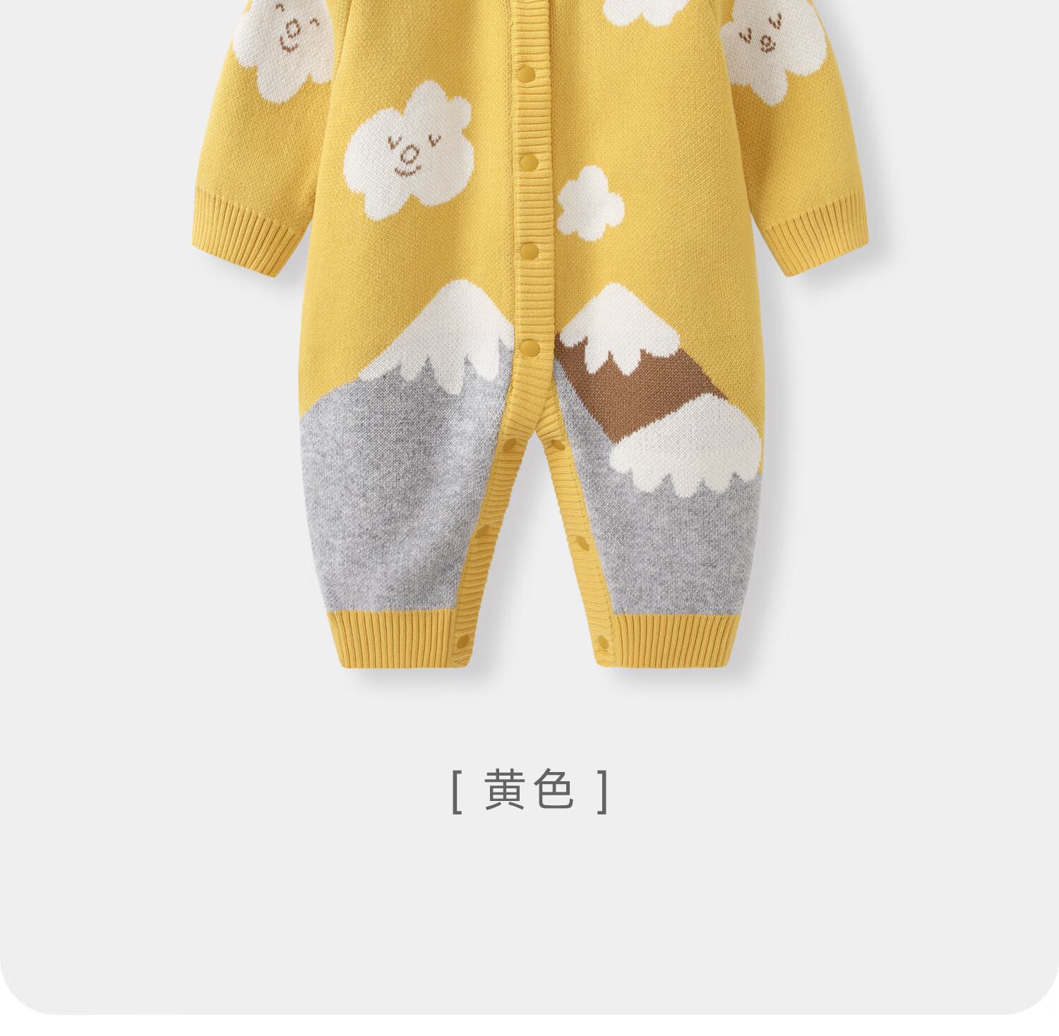 BORBOON B baby jumpsuit 2026 spring clothes baby boy full month knitted suit spring and autumn style toddler sweater yellow 7695 66cm