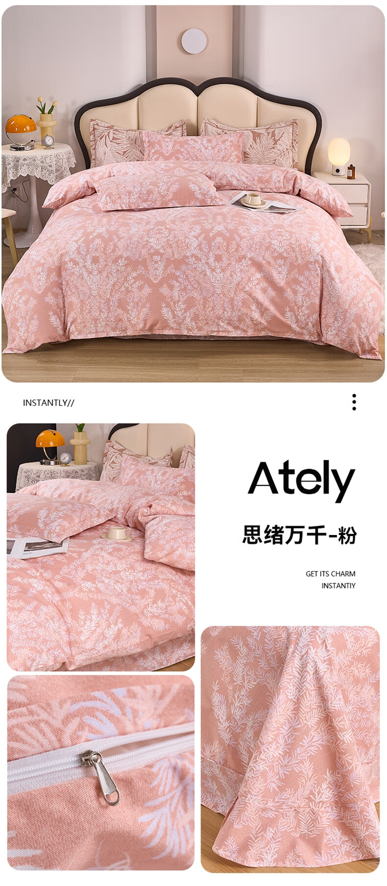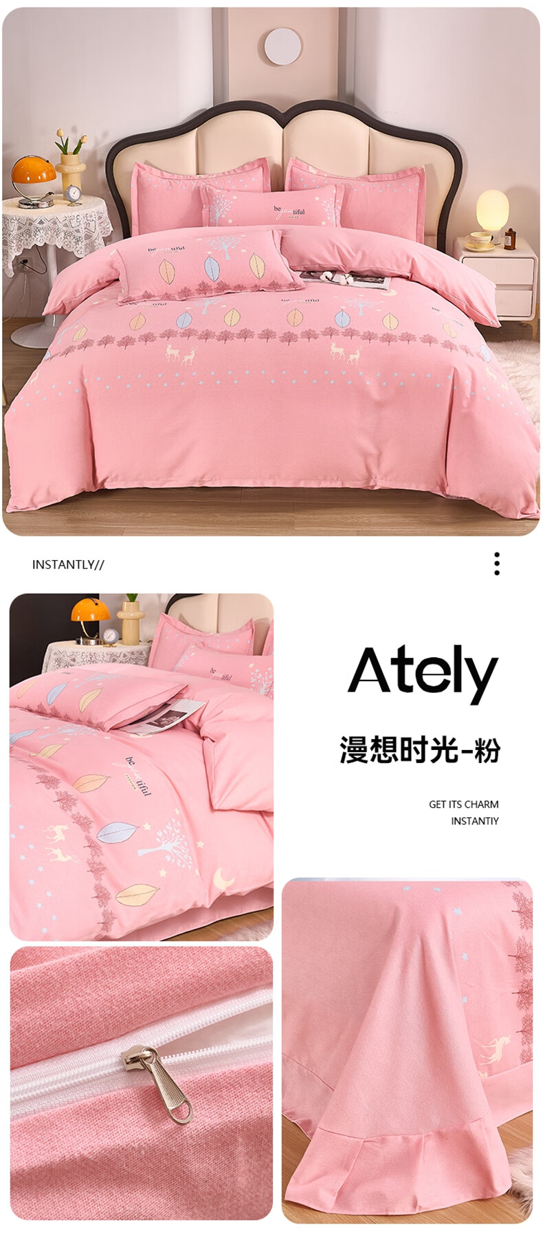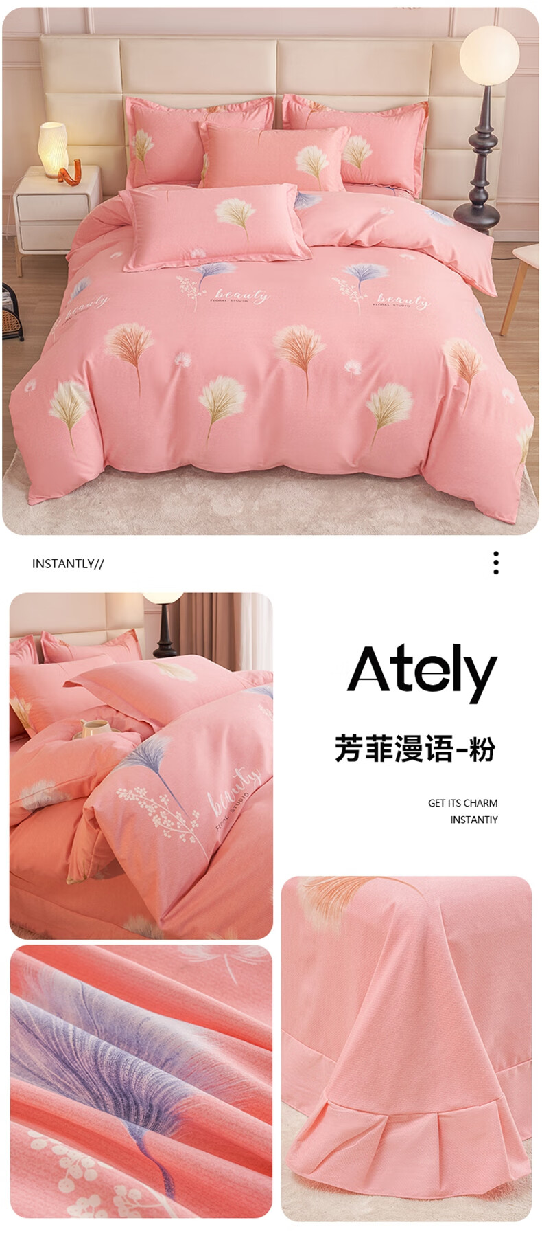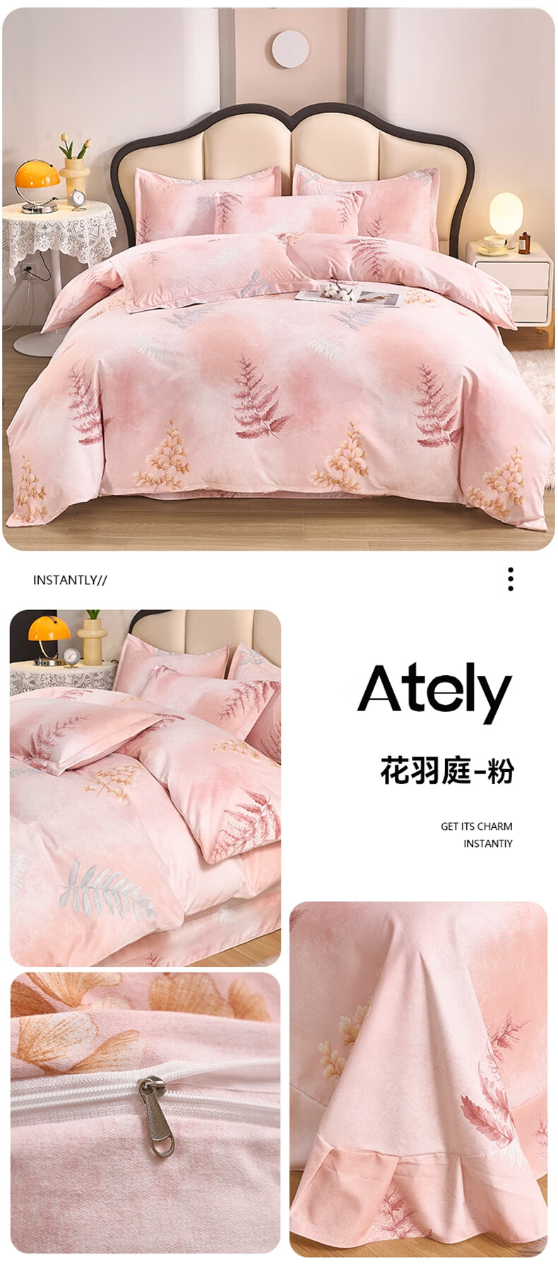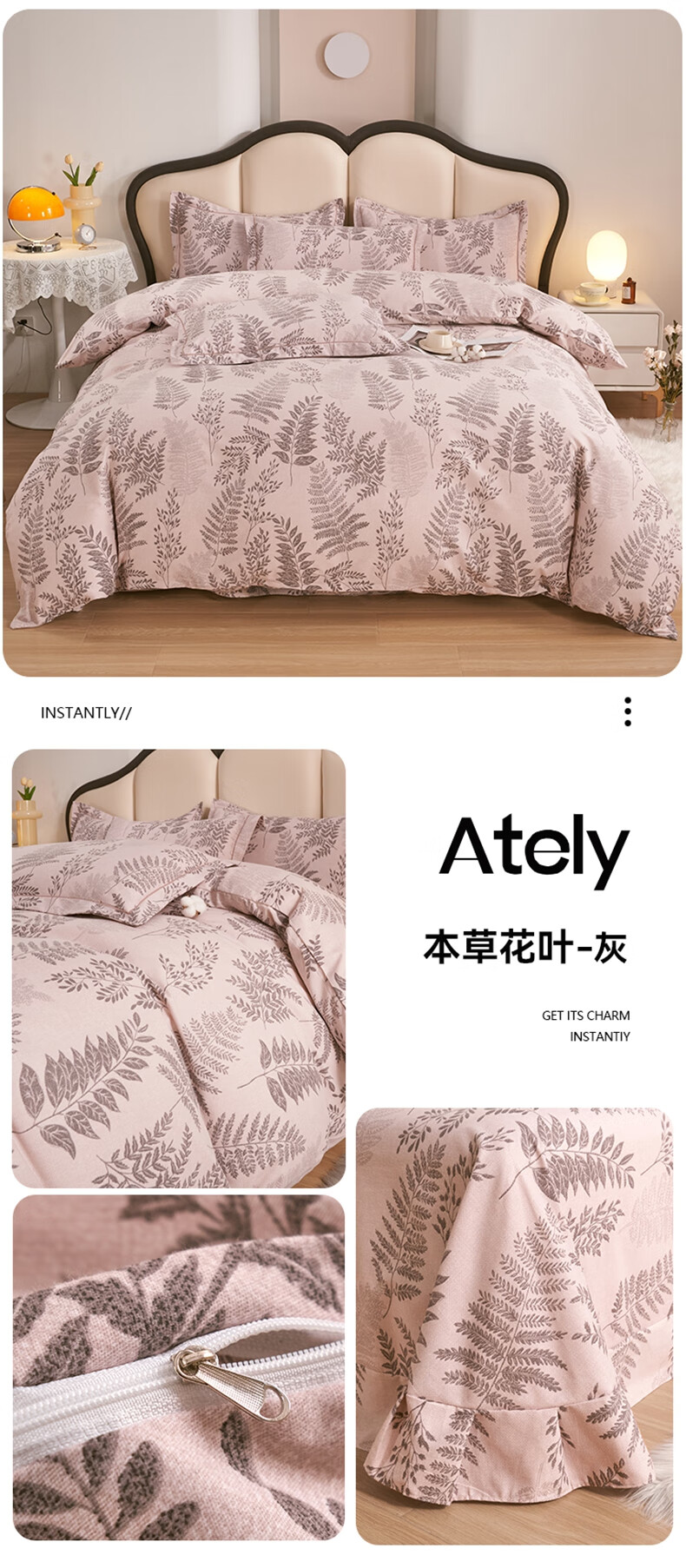 100 pure cotton four-piece set, pure cotton brushed four-piece set, thickened twill Xinjiang cotton four-piece set, skin-friendly and soft for all seasons Fangfei Manyu-Pink 1.5m bed sheet style four-piece set