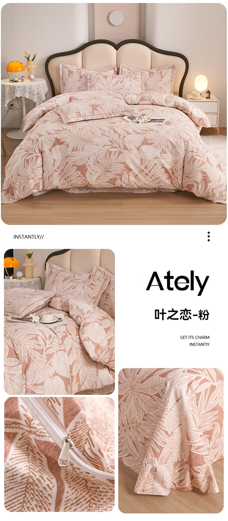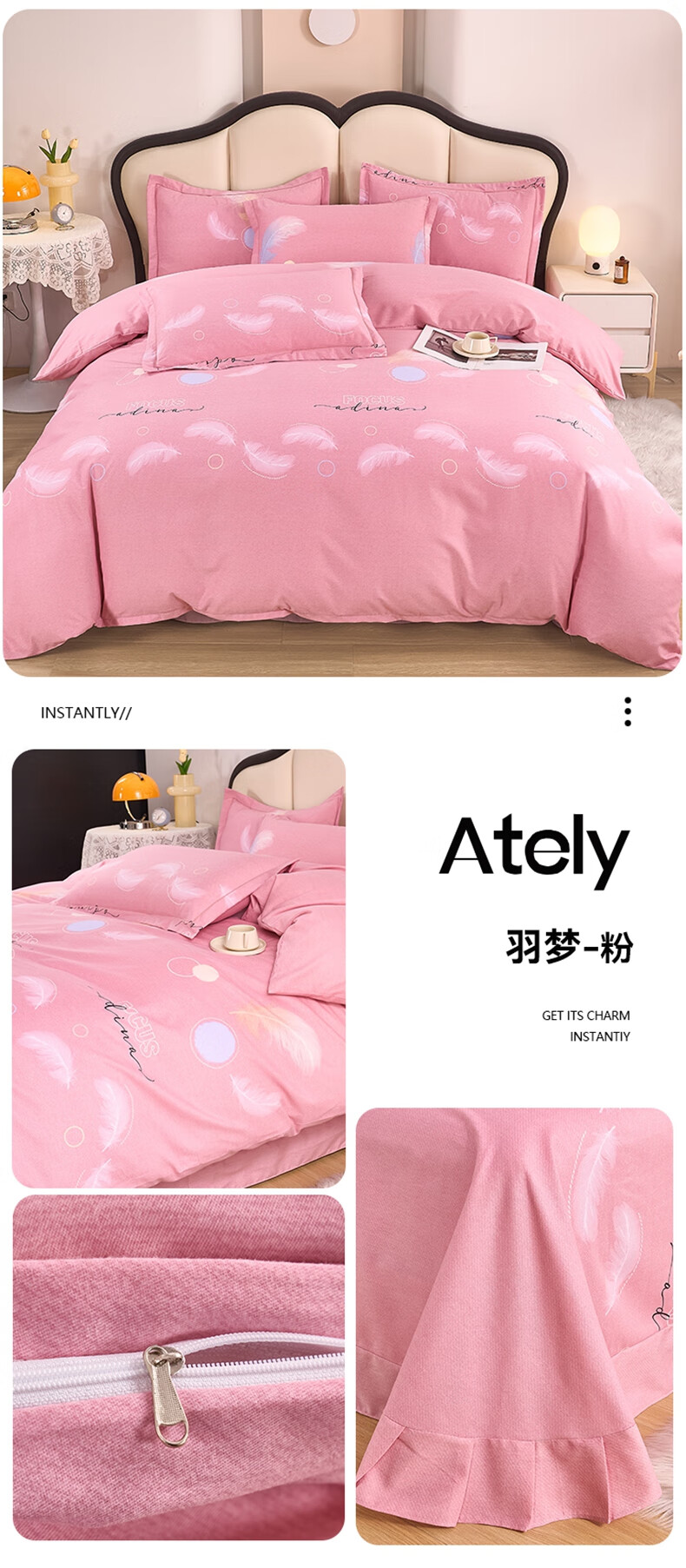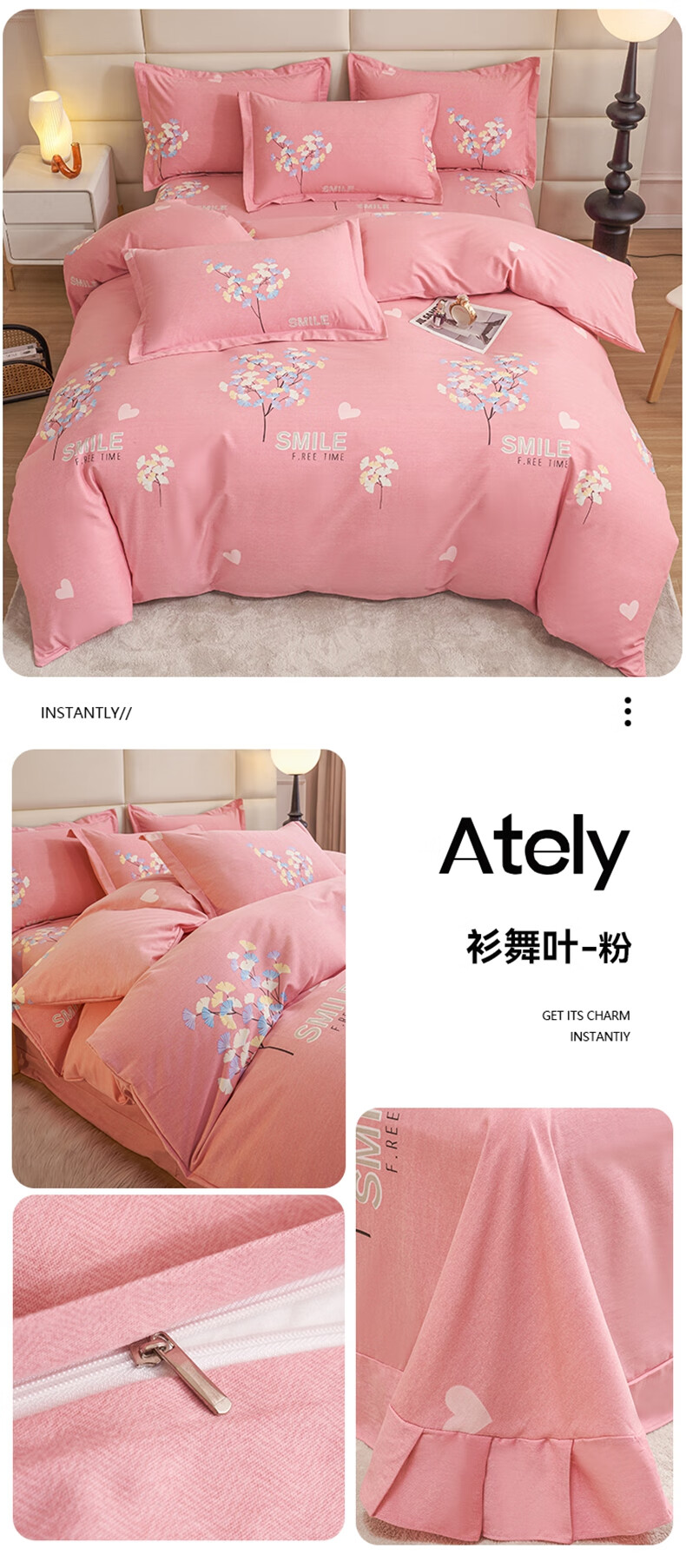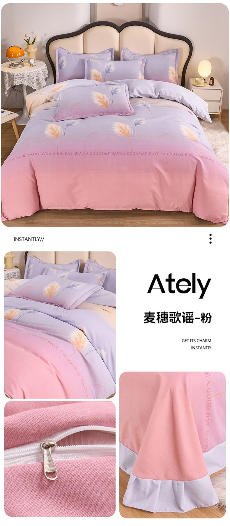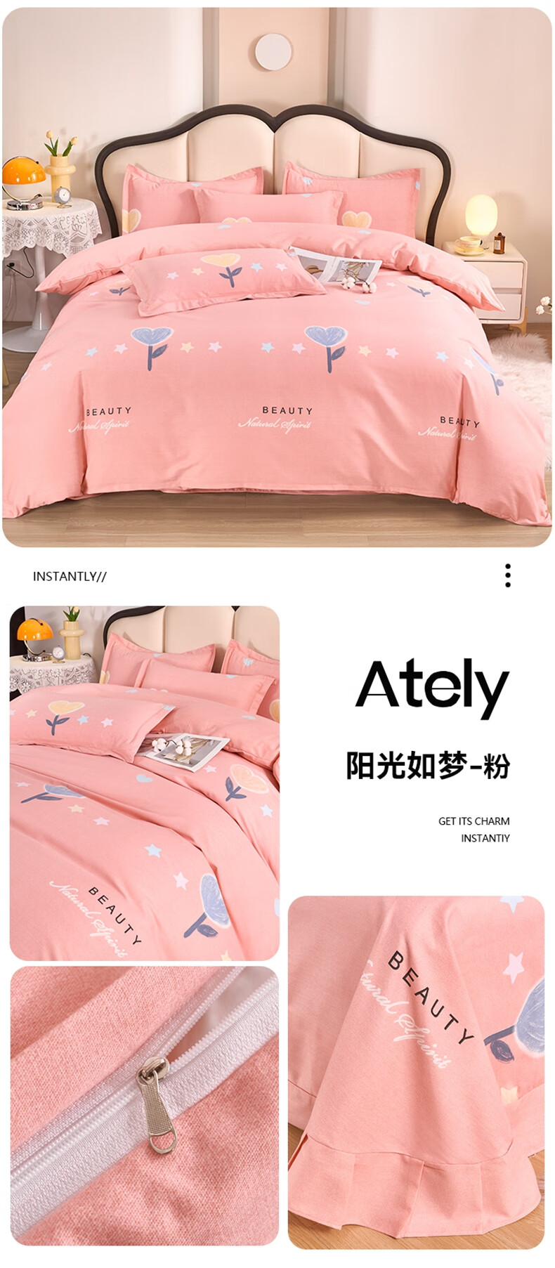 100 pure cotton four-piece set, pure cotton brushed four-piece set, thickened twill Xinjiang cotton four-piece set, skin-friendly and soft for all seasons Fangfei Manyu-Pink 1.5m bed sheet style four-piece set