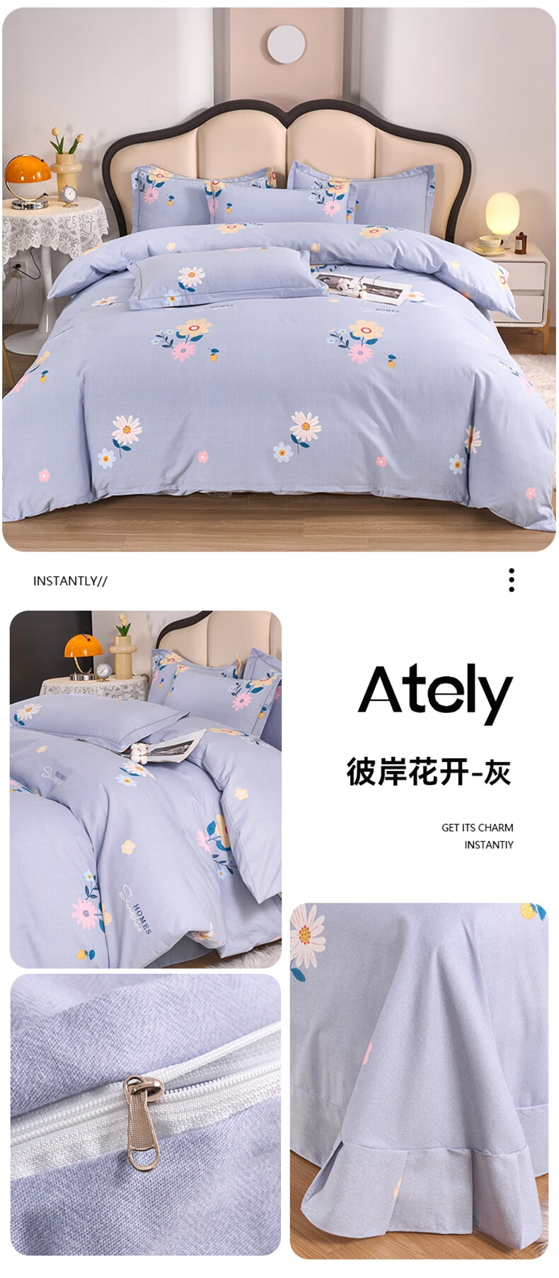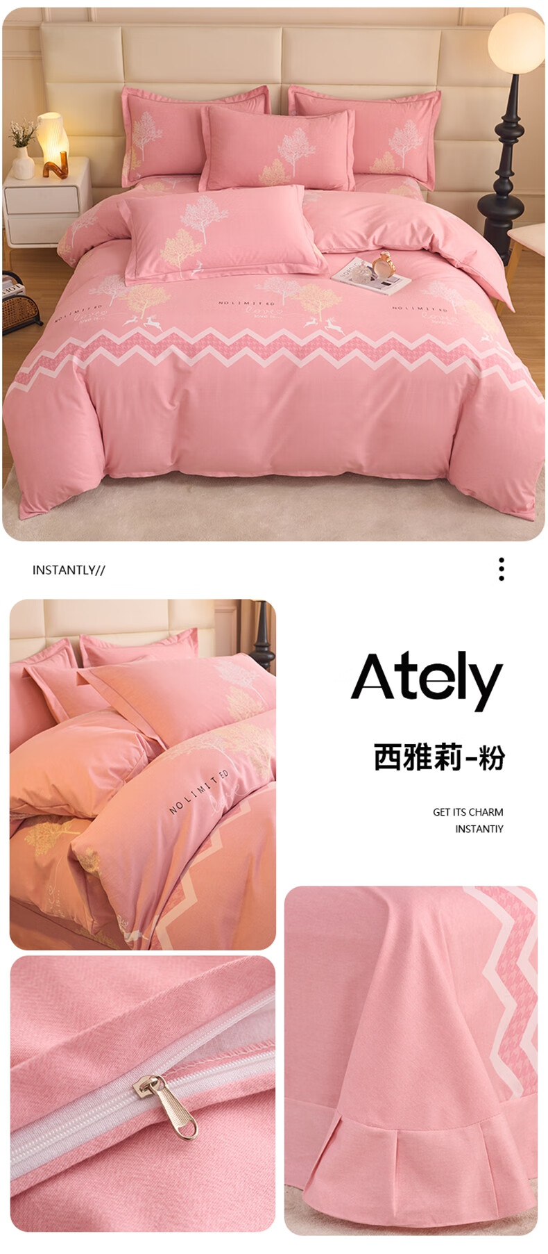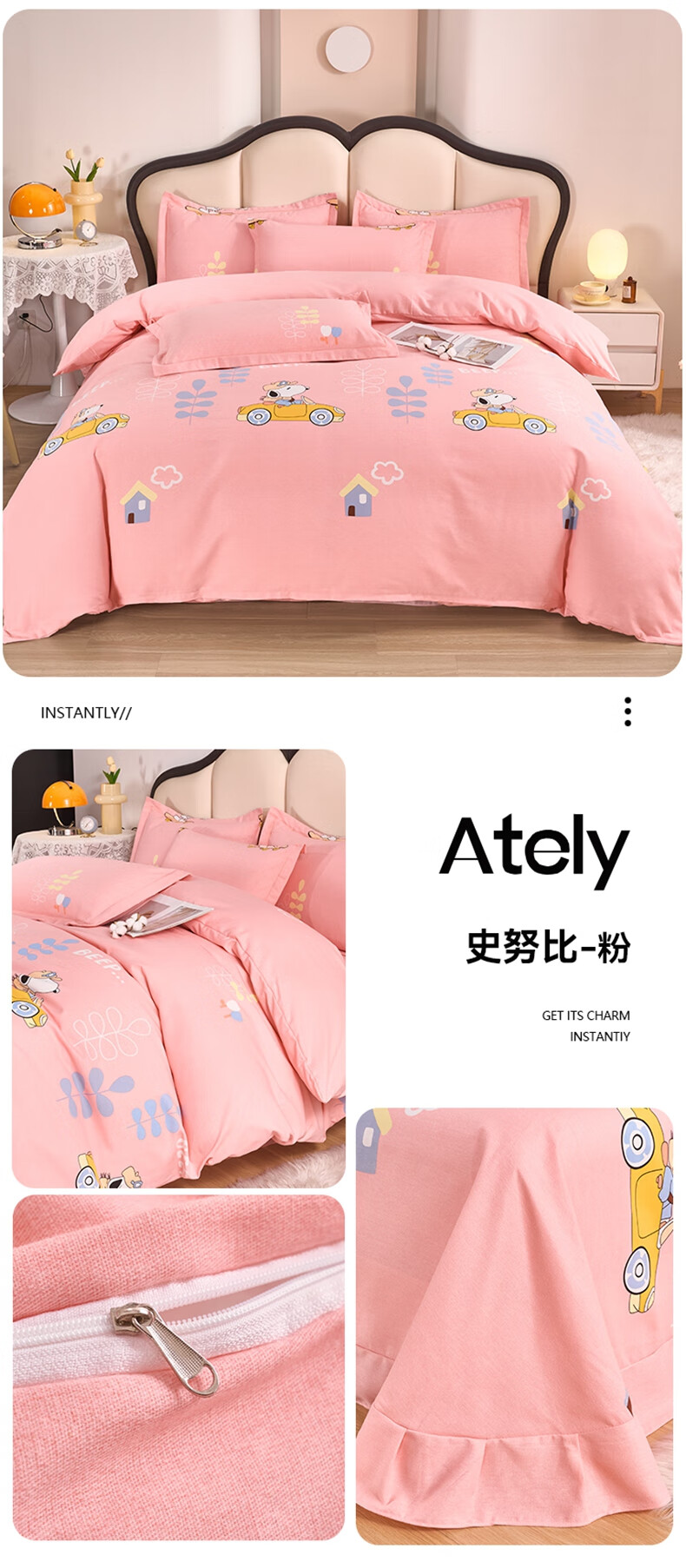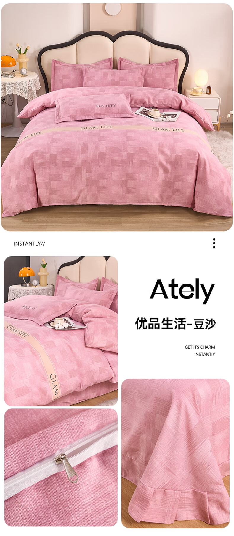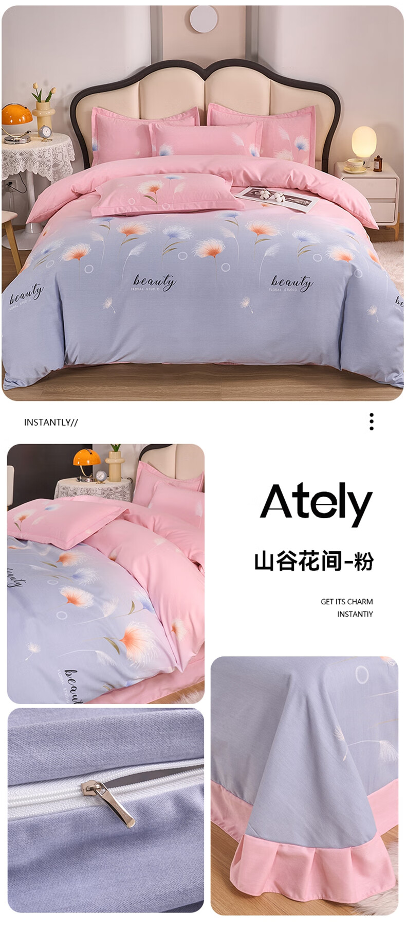 100 pure cotton four-piece set, pure cotton brushed four-piece set, thickened twill Xinjiang cotton four-piece set, skin-friendly and soft for all seasons Fangfei Manyu-Pink 1.5m bed sheet style four-piece set