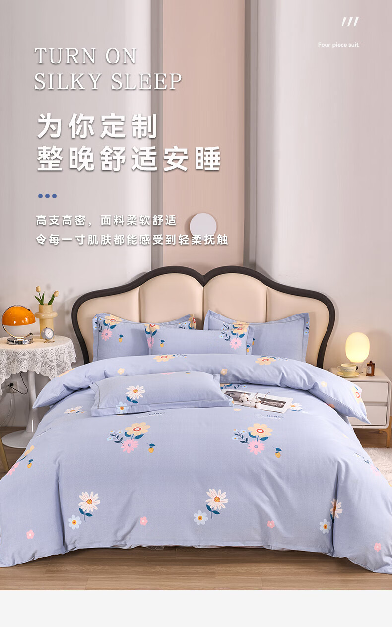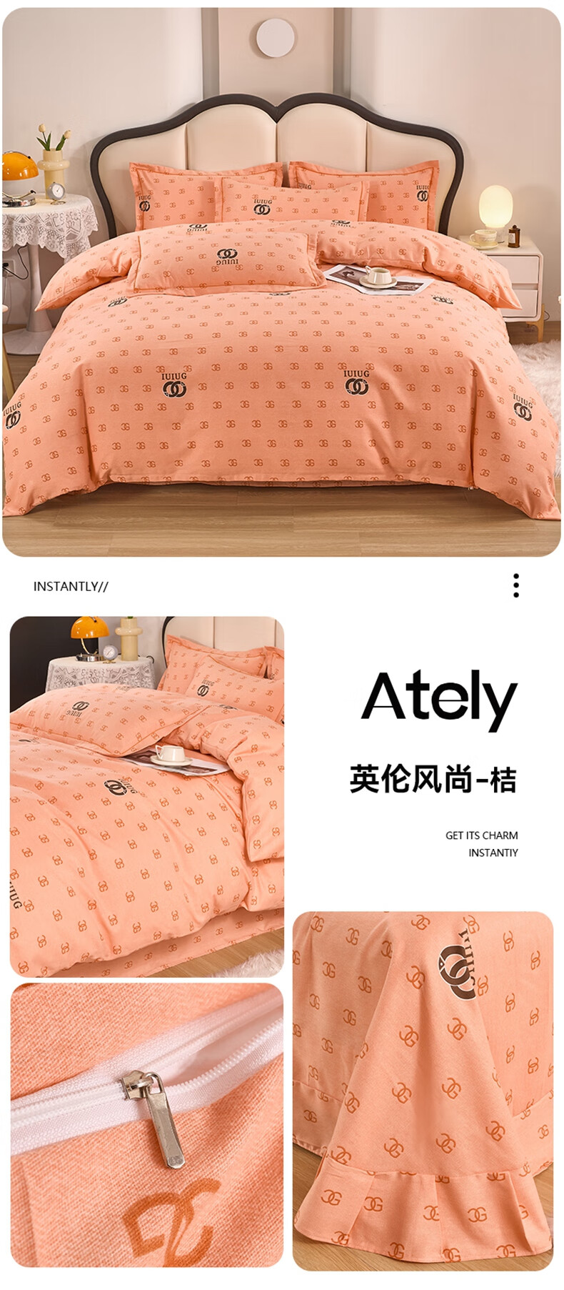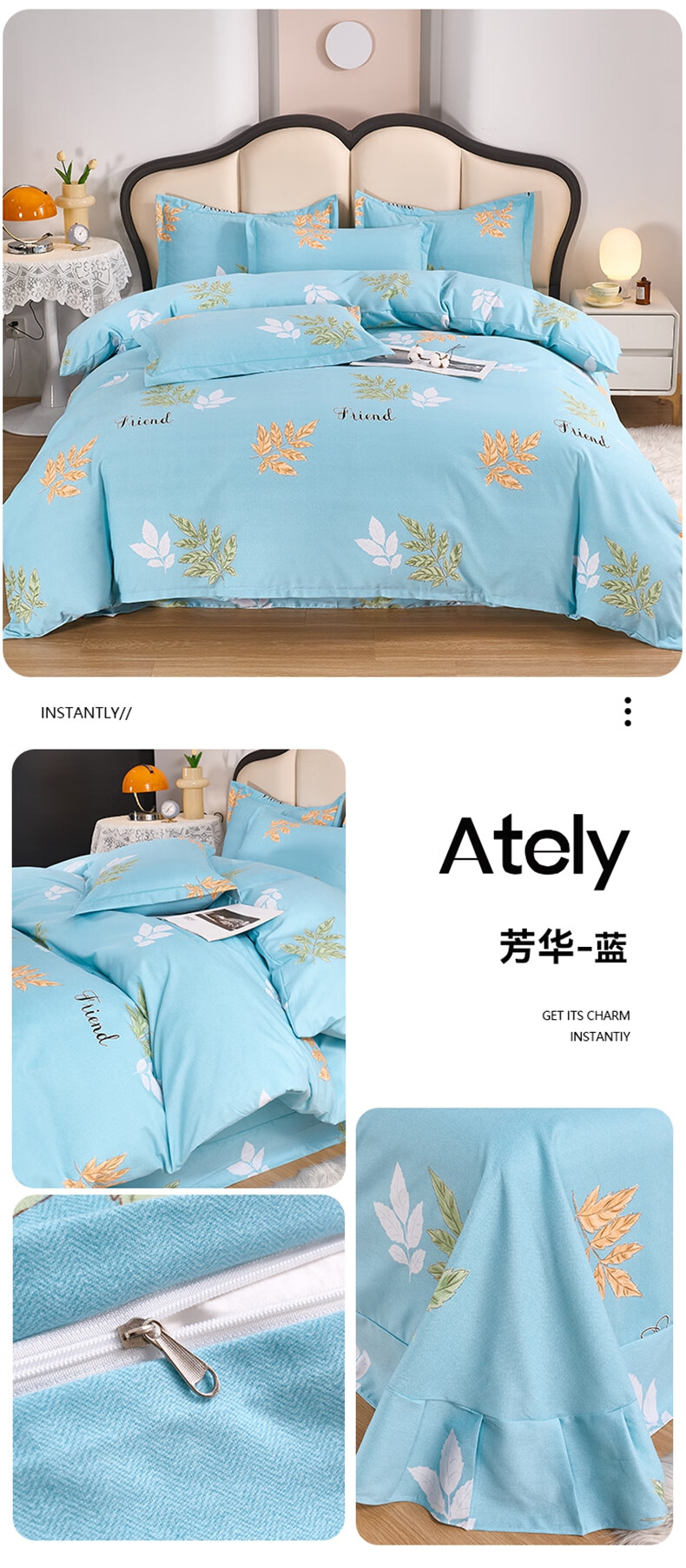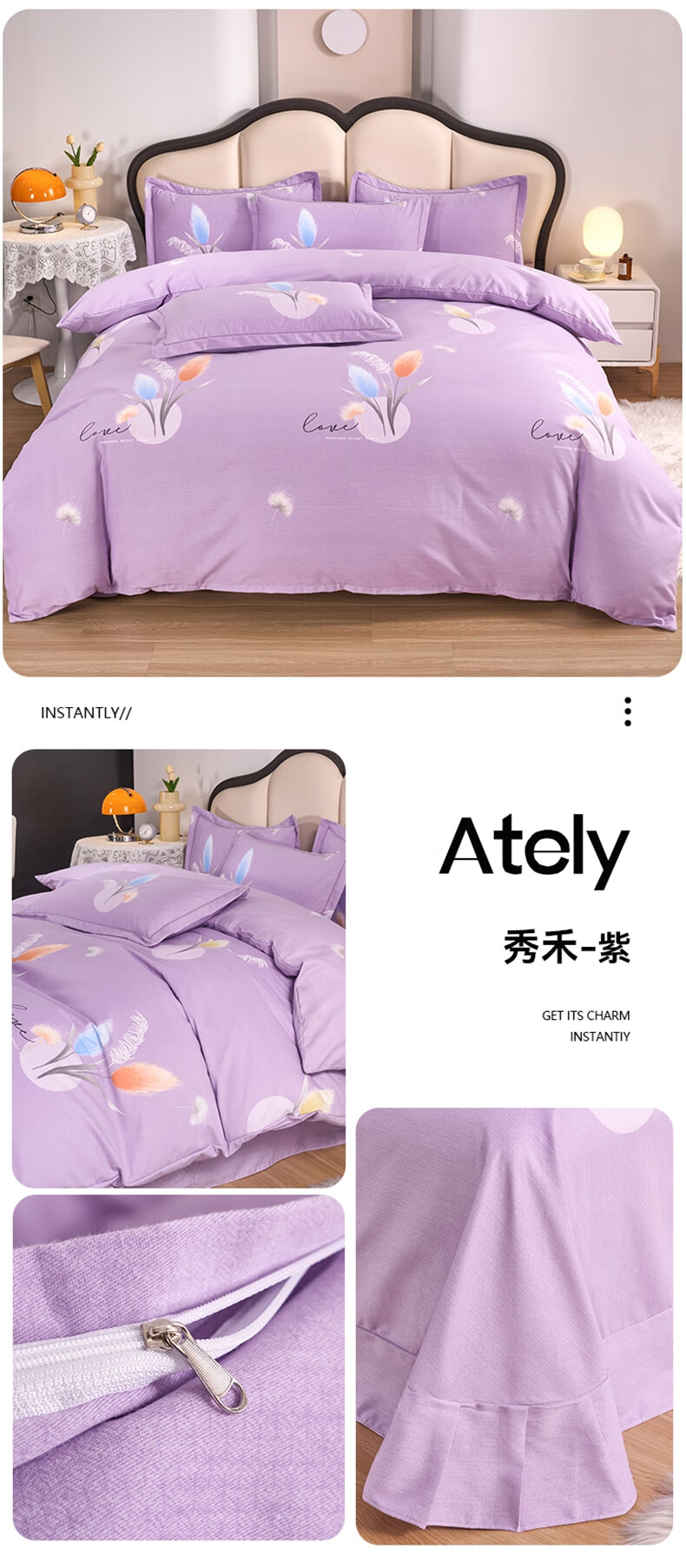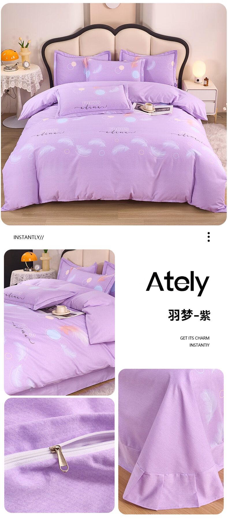 100 pure cotton four-piece set, pure cotton brushed four-piece set, thickened twill Xinjiang cotton four-piece set, skin-friendly and soft for all seasons Fangfei Manyu-Pink 1.5m bed sheet style four-piece set