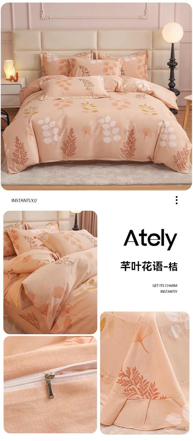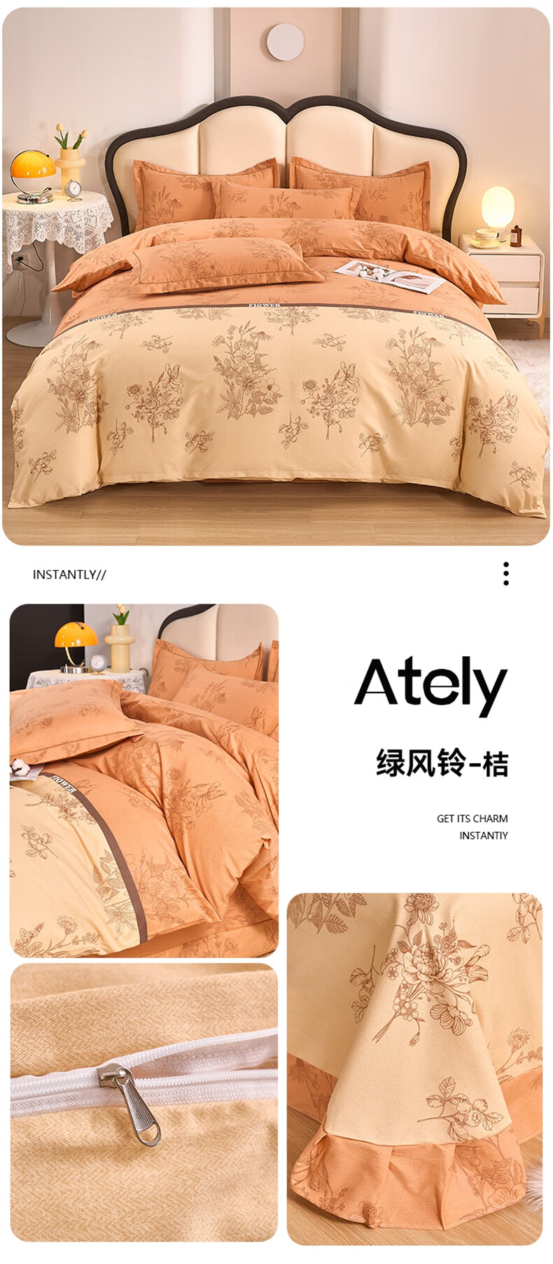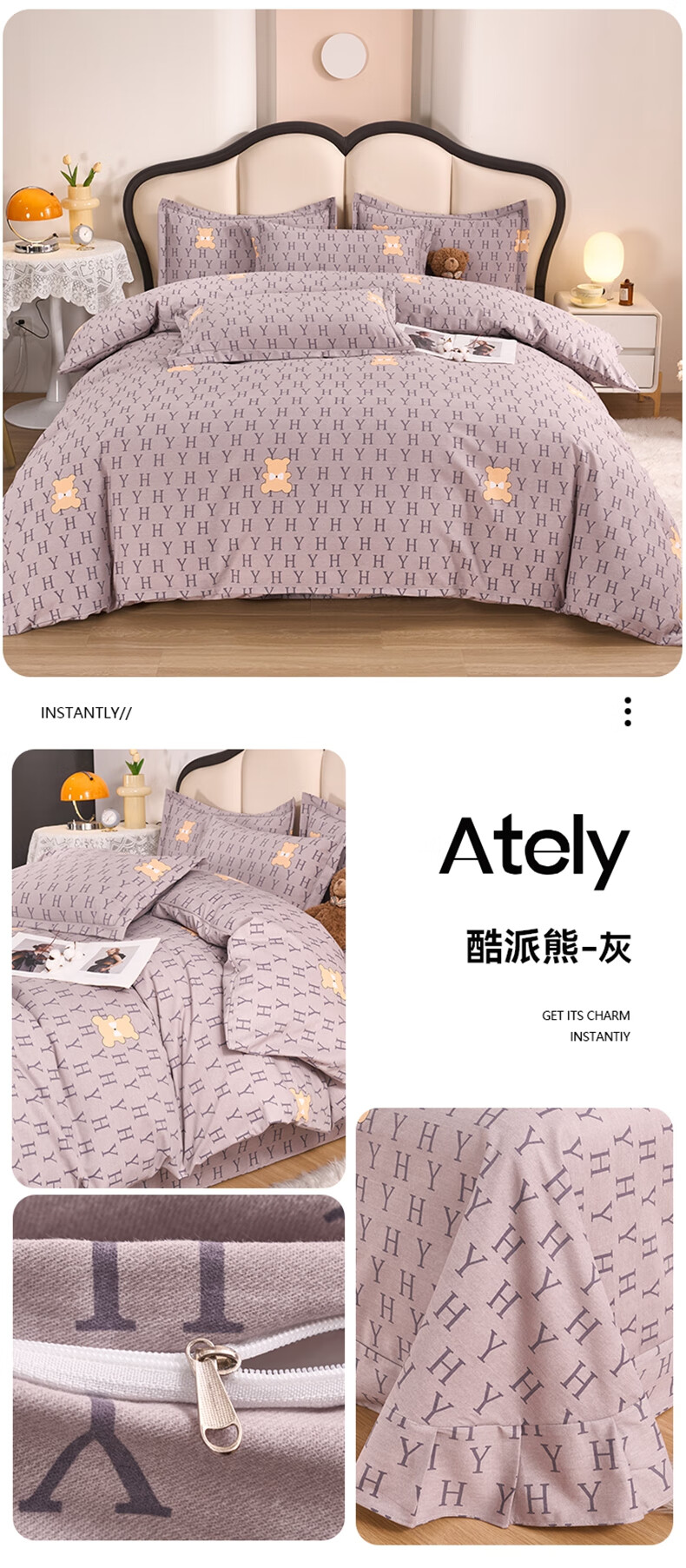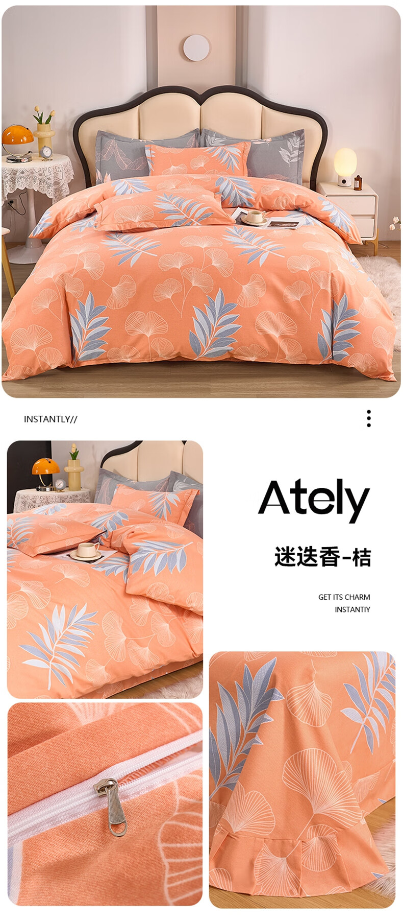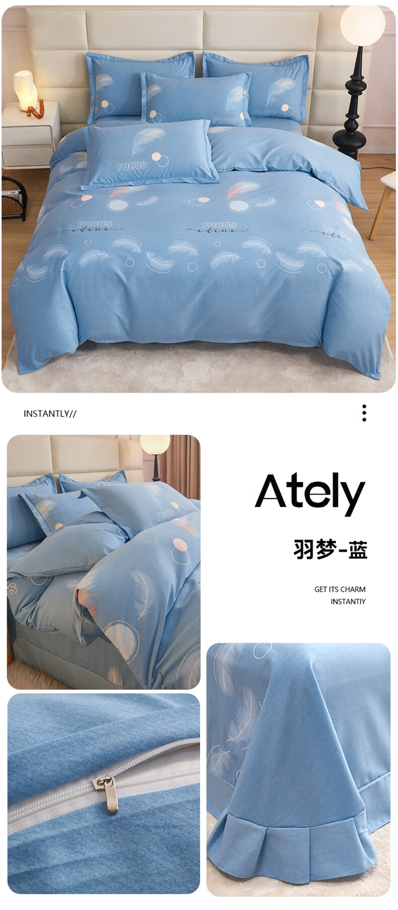 100 pure cotton four-piece set, pure cotton brushed four-piece set, thickened twill Xinjiang cotton four-piece set, skin-friendly and soft for all seasons Fangfei Manyu-Pink 1.5m bed sheet style four-piece set