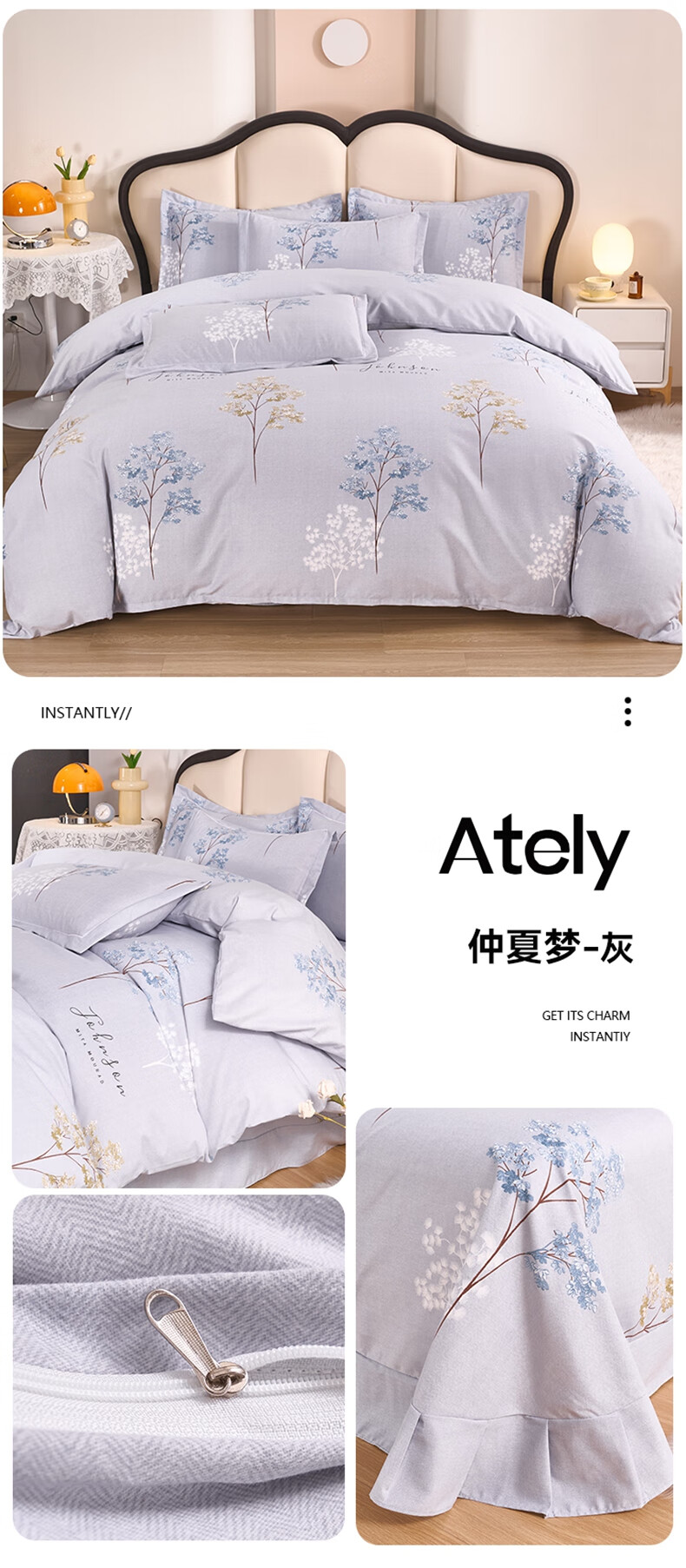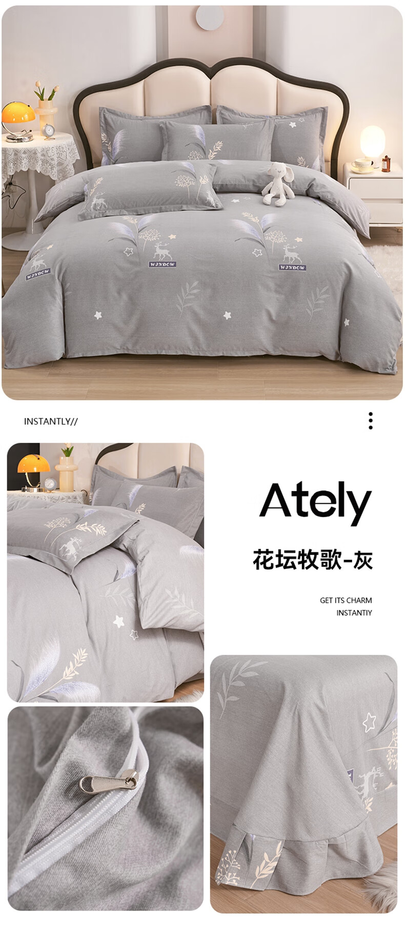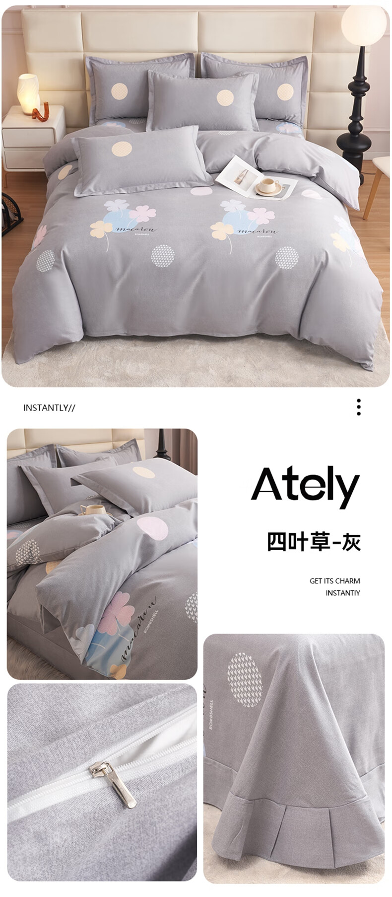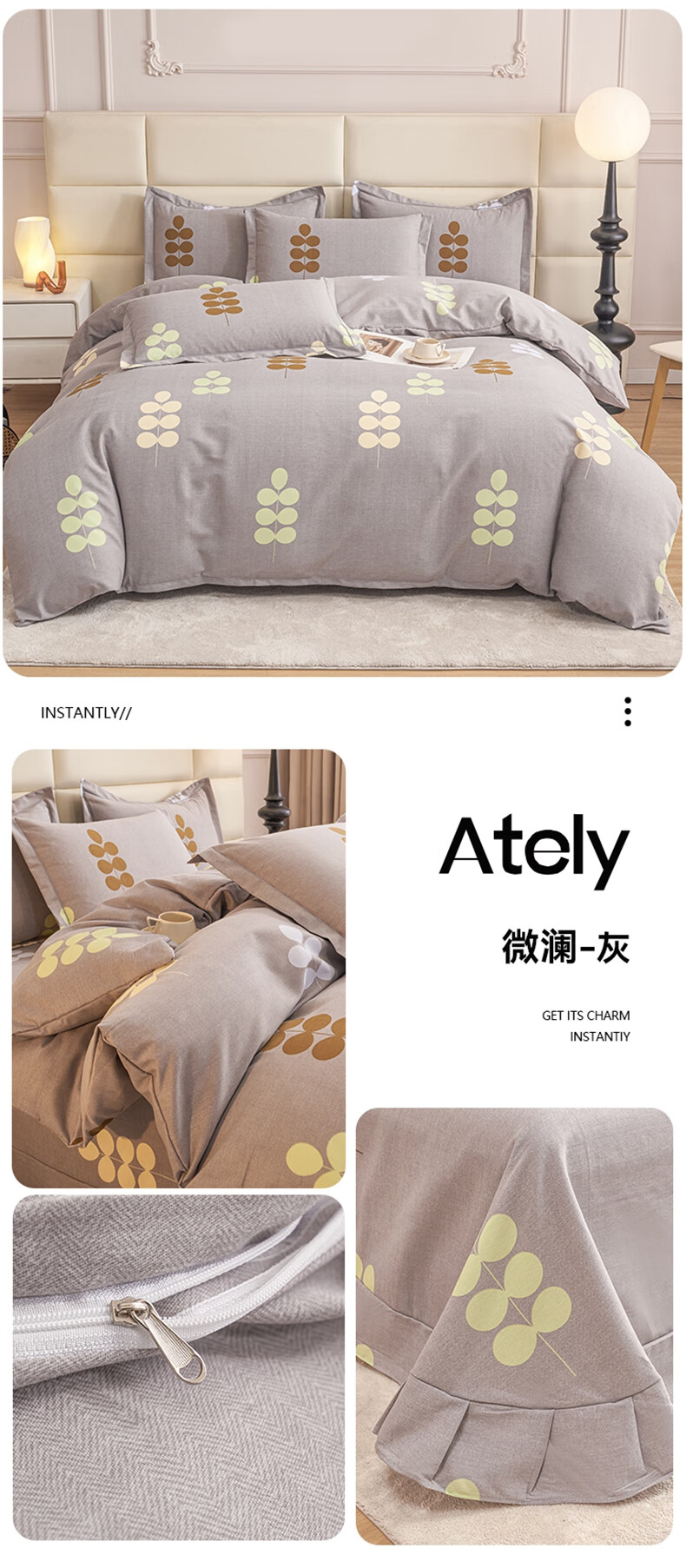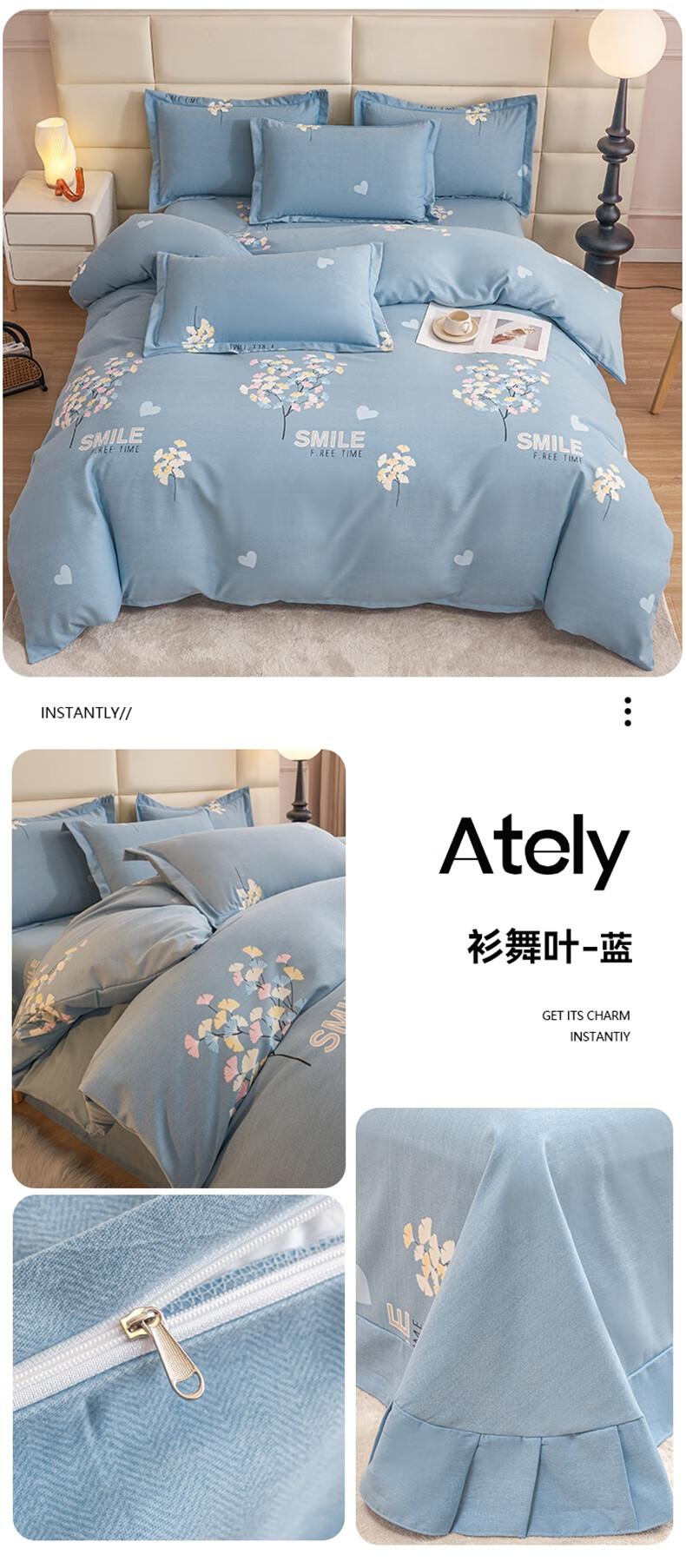 100 pure cotton four-piece set, pure cotton brushed four-piece set, thickened twill Xinjiang cotton four-piece set, skin-friendly and soft for all seasons Fangfei Manyu-Pink 1.5m bed sheet style four-piece set