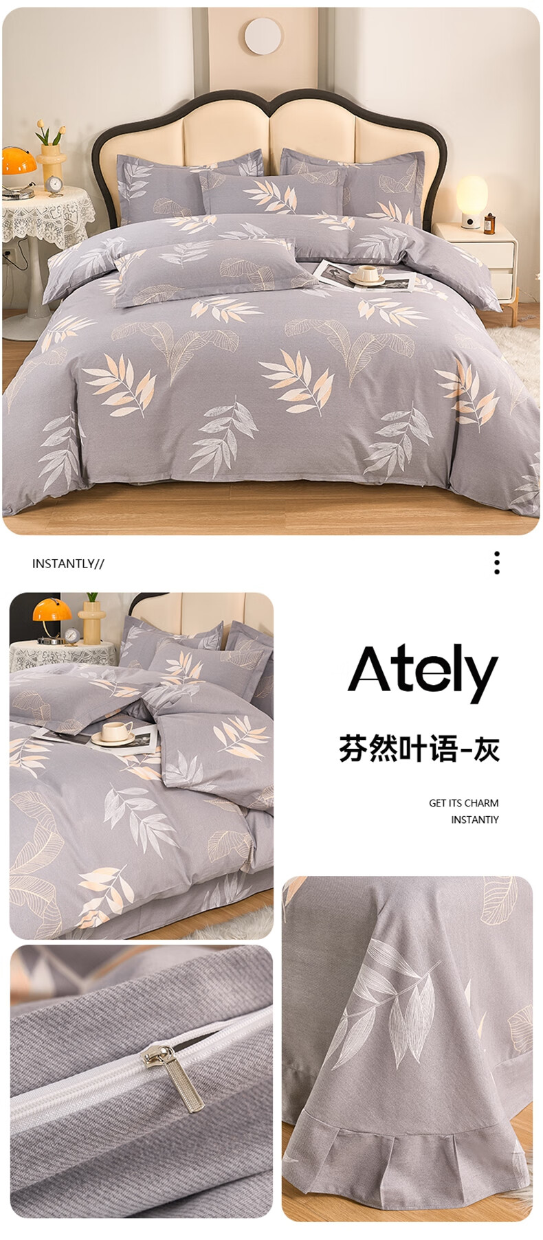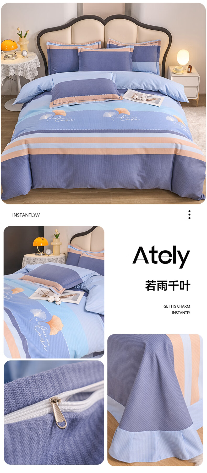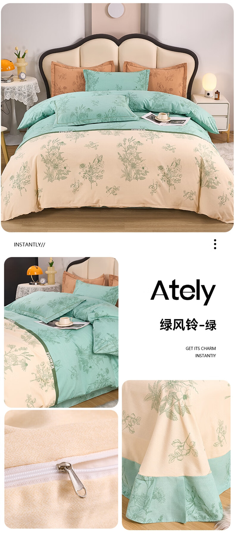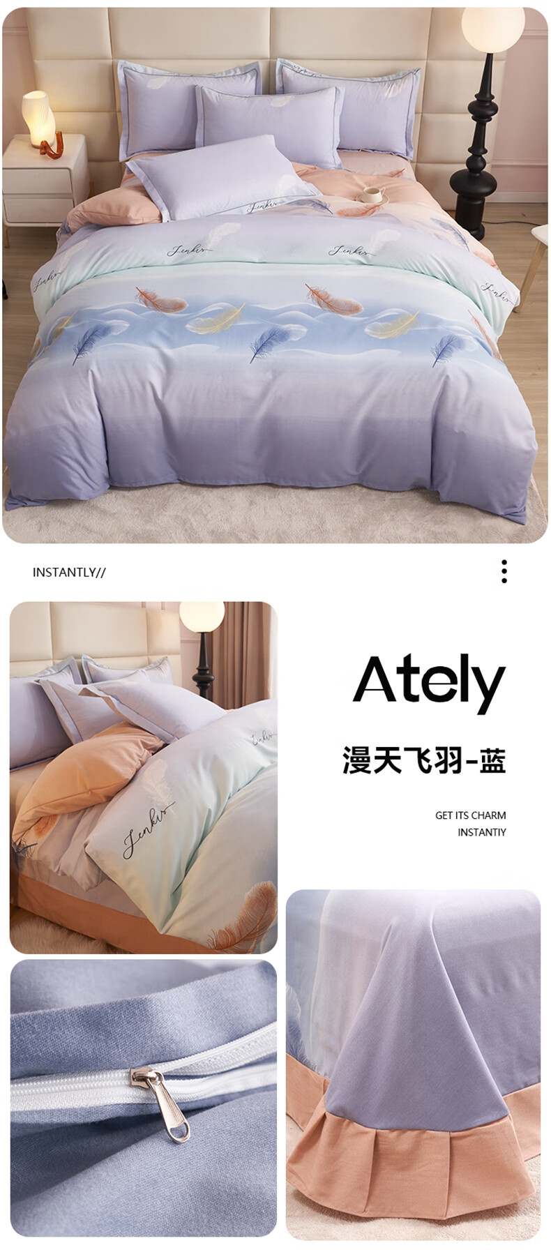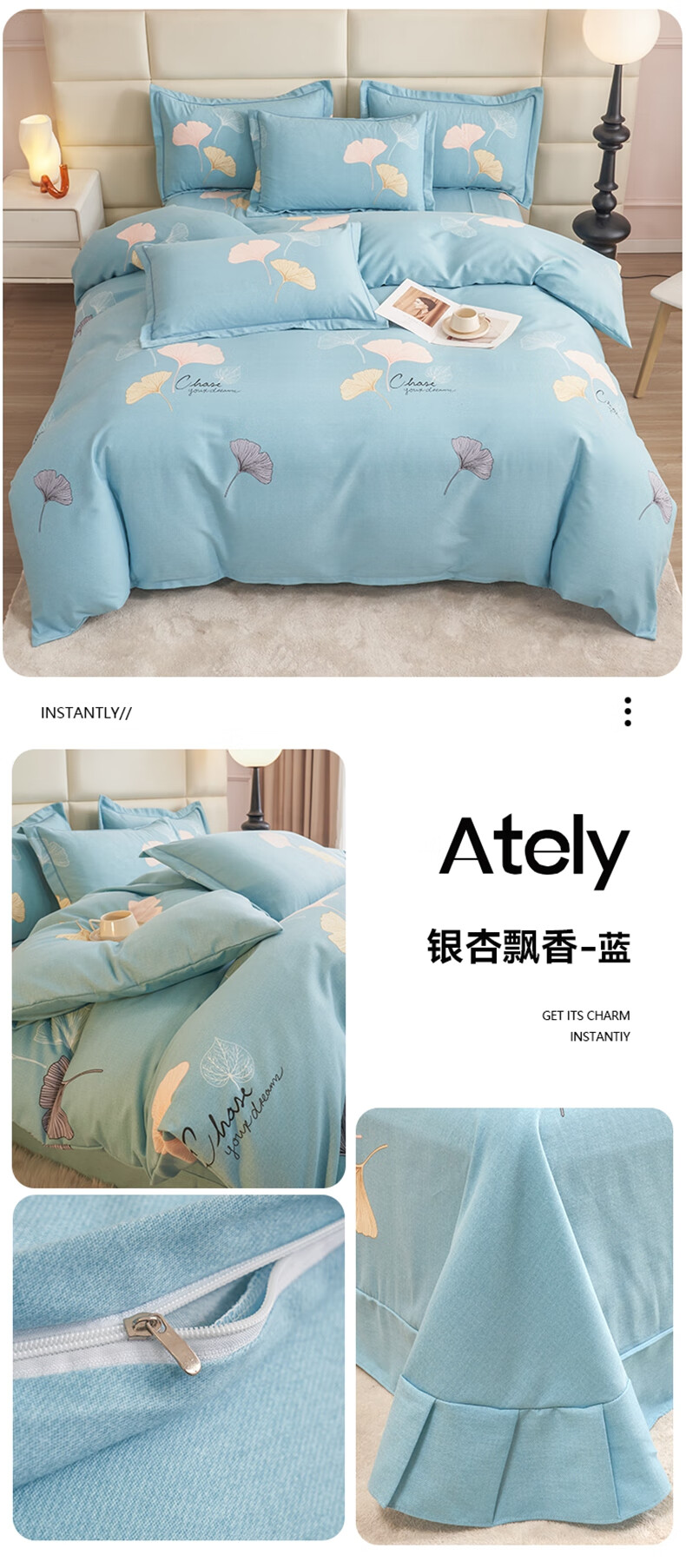 100 pure cotton four-piece set, pure cotton brushed four-piece set, thickened twill Xinjiang cotton four-piece set, skin-friendly and soft for all seasons Fangfei Manyu-Pink 1.5m bed sheet style four-piece set