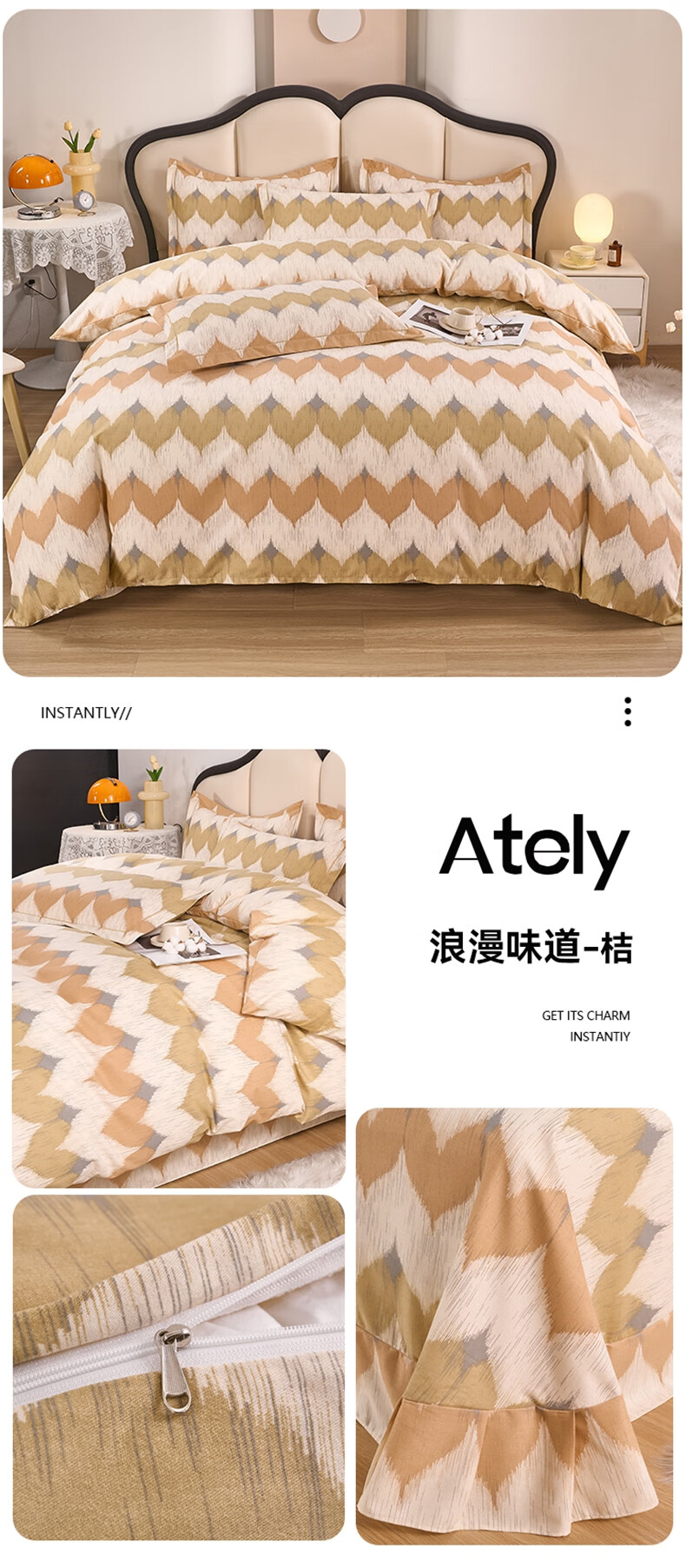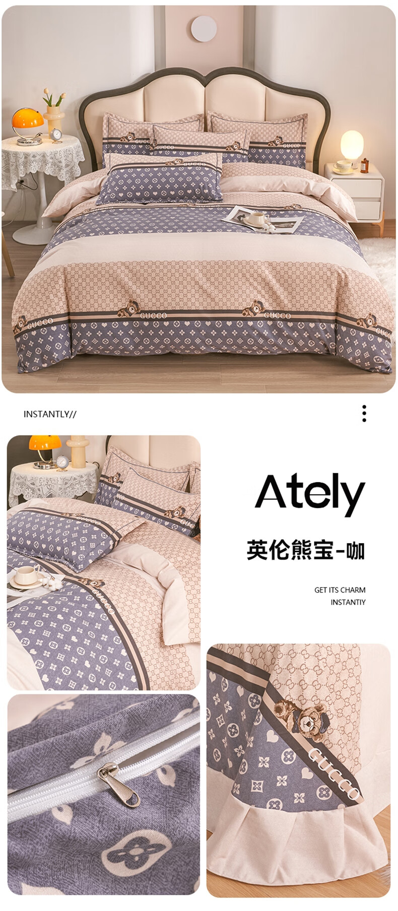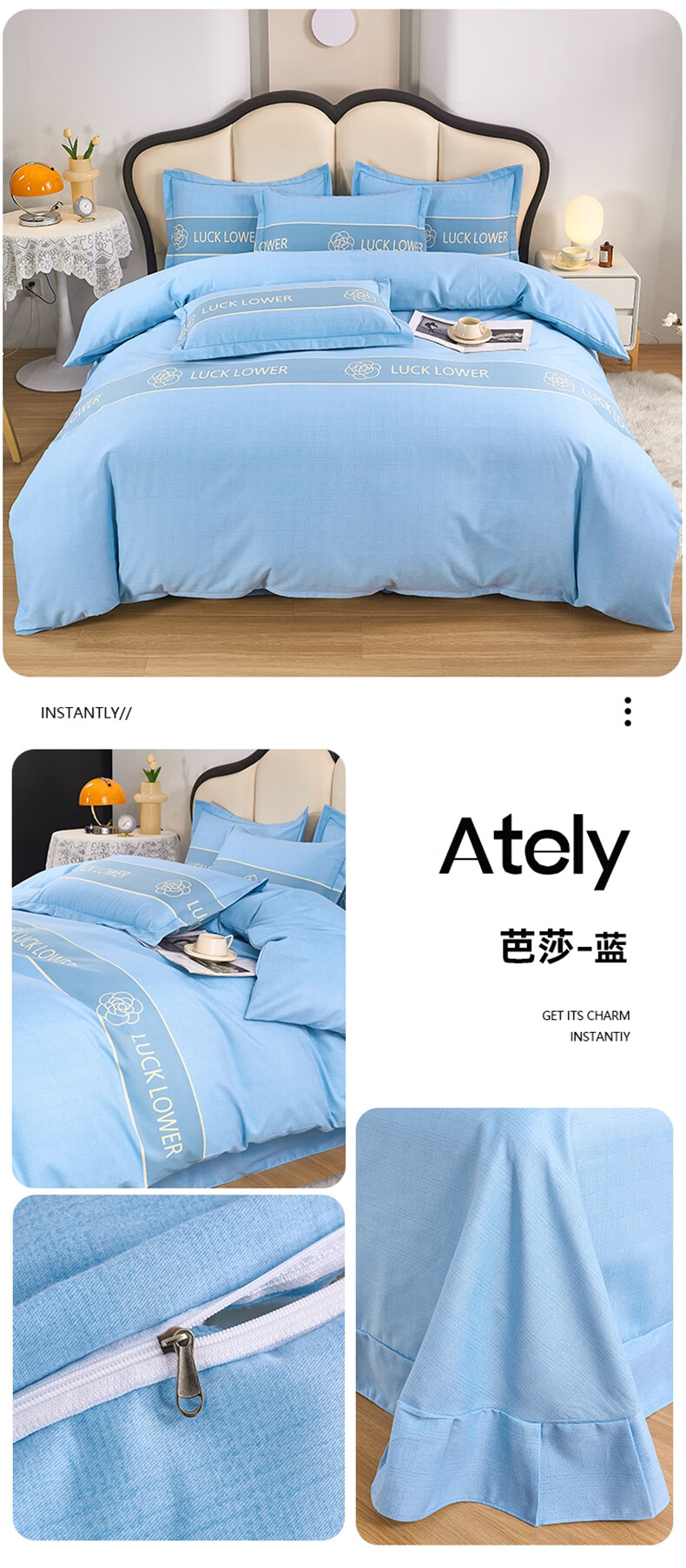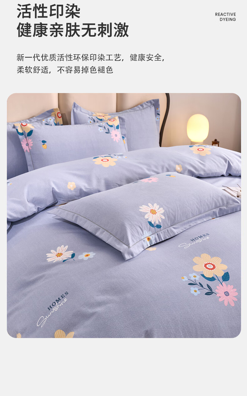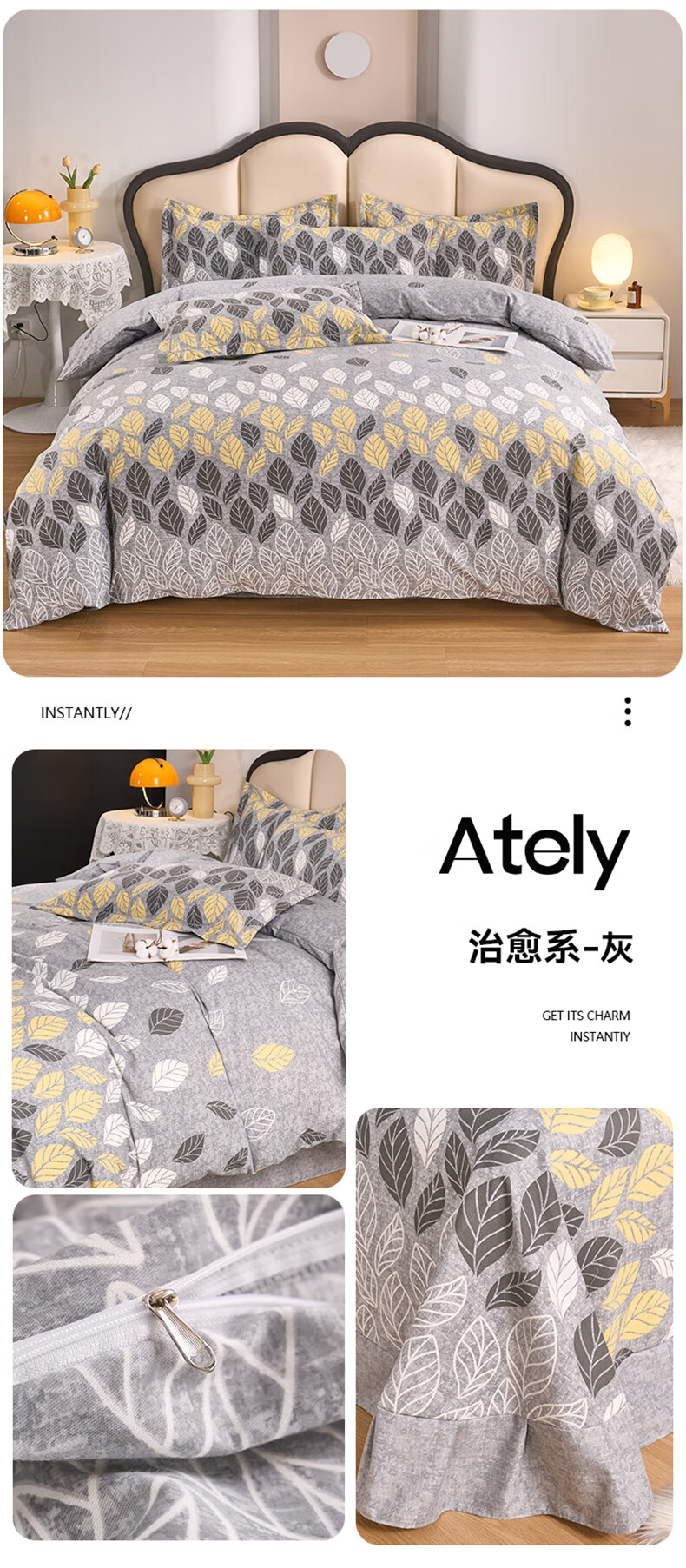 100 pure cotton four-piece set, pure cotton brushed four-piece set, thickened twill Xinjiang cotton four-piece set, skin-friendly and soft for all seasons Fangfei Manyu-Pink 1.5m bed sheet style four-piece set