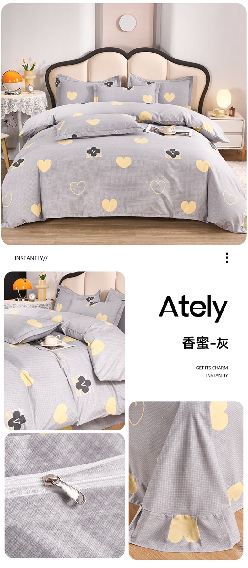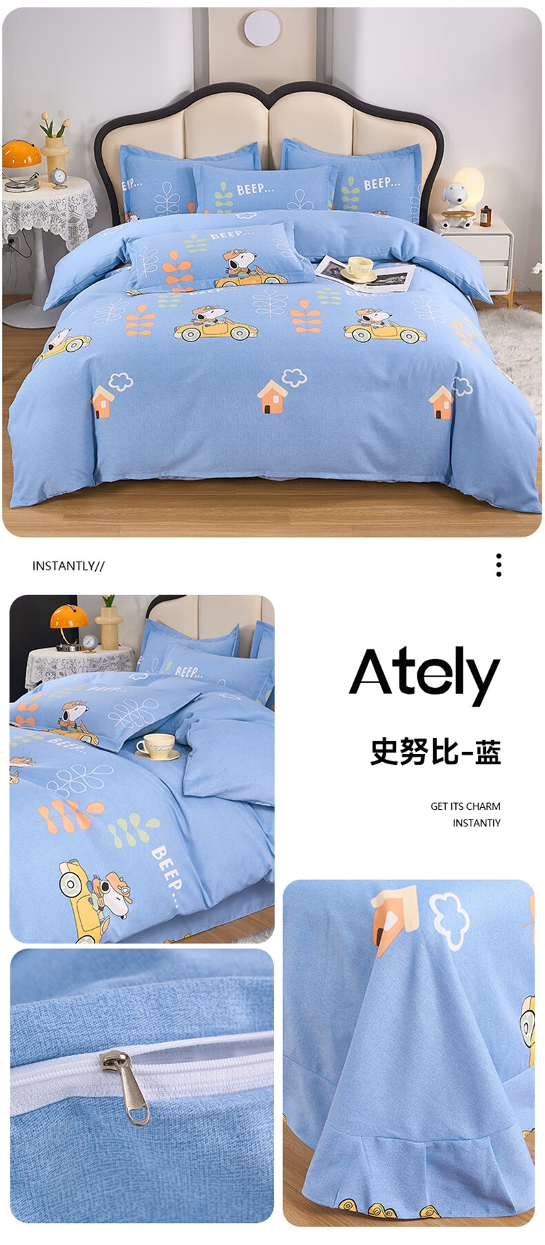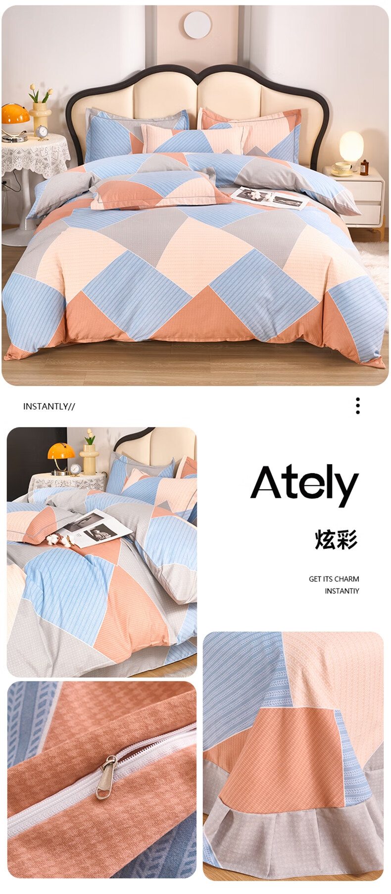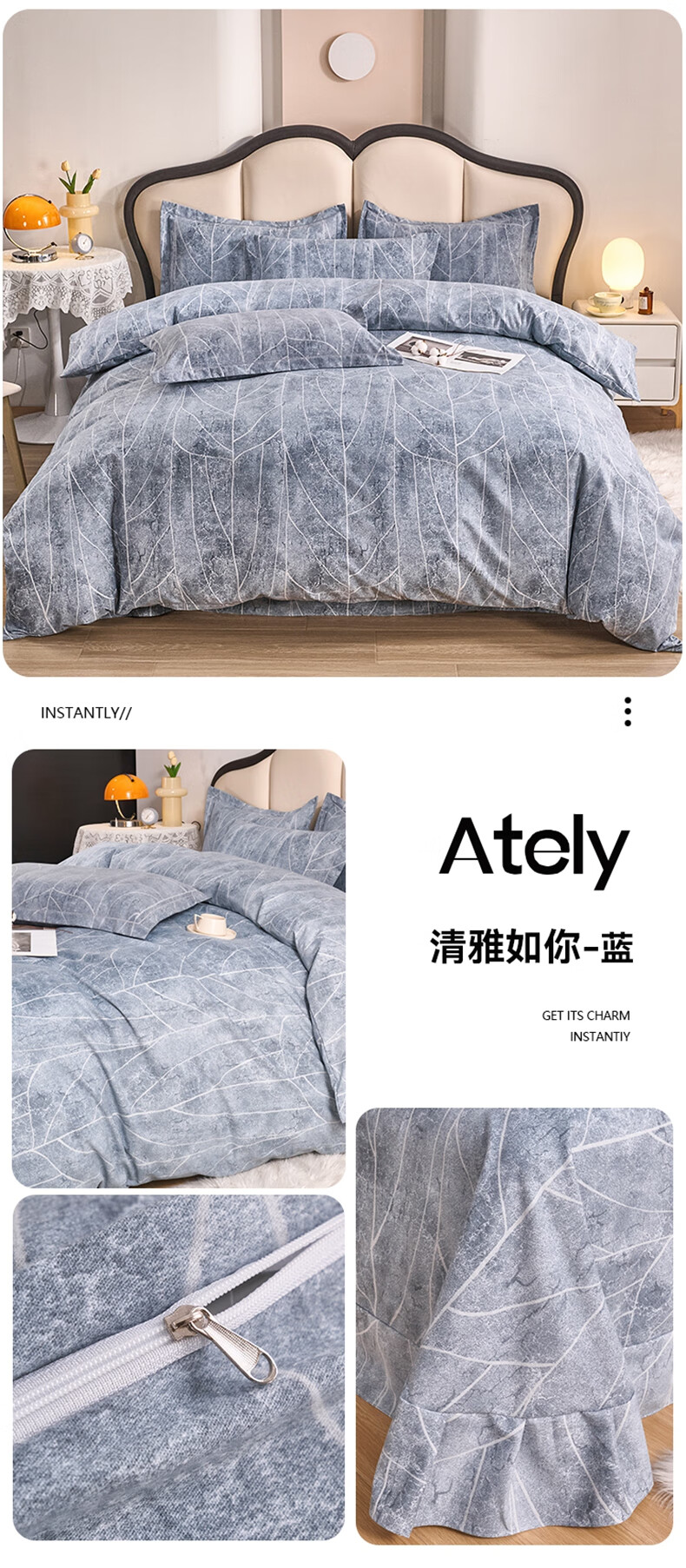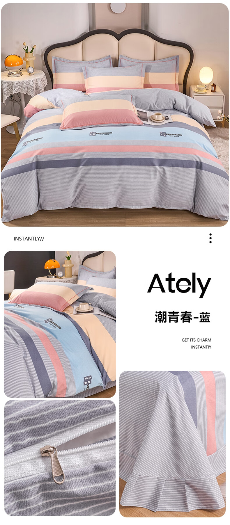 100 pure cotton four-piece set, pure cotton brushed four-piece set, thickened twill Xinjiang cotton four-piece set, skin-friendly and soft for all seasons Fangfei Manyu-Pink 1.5m bed sheet style four-piece set