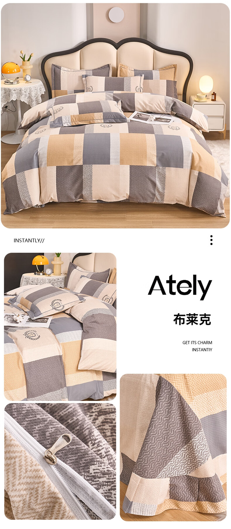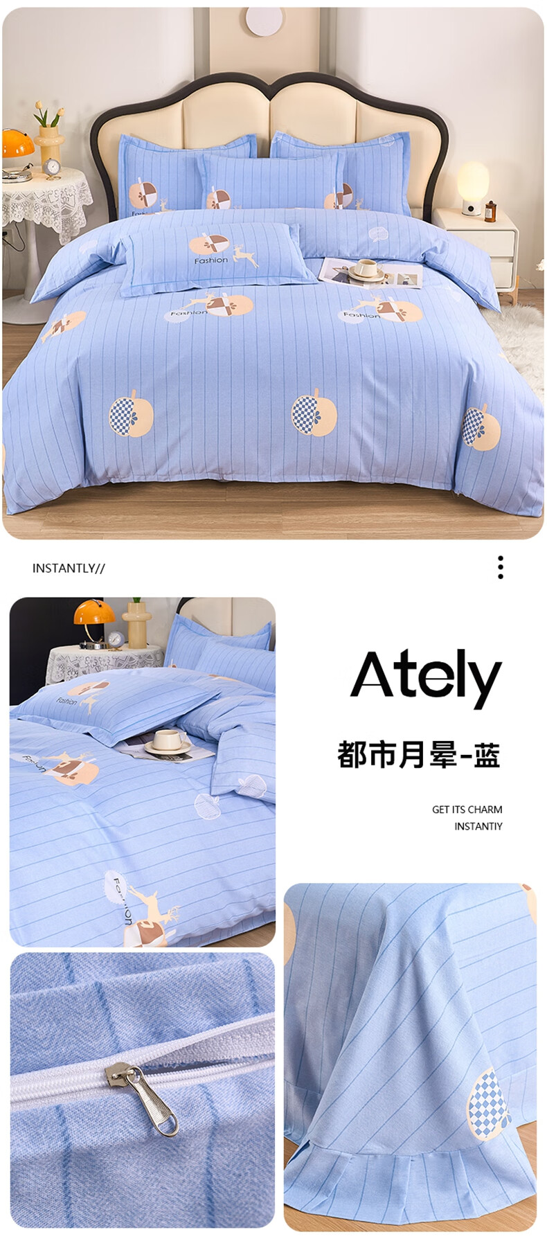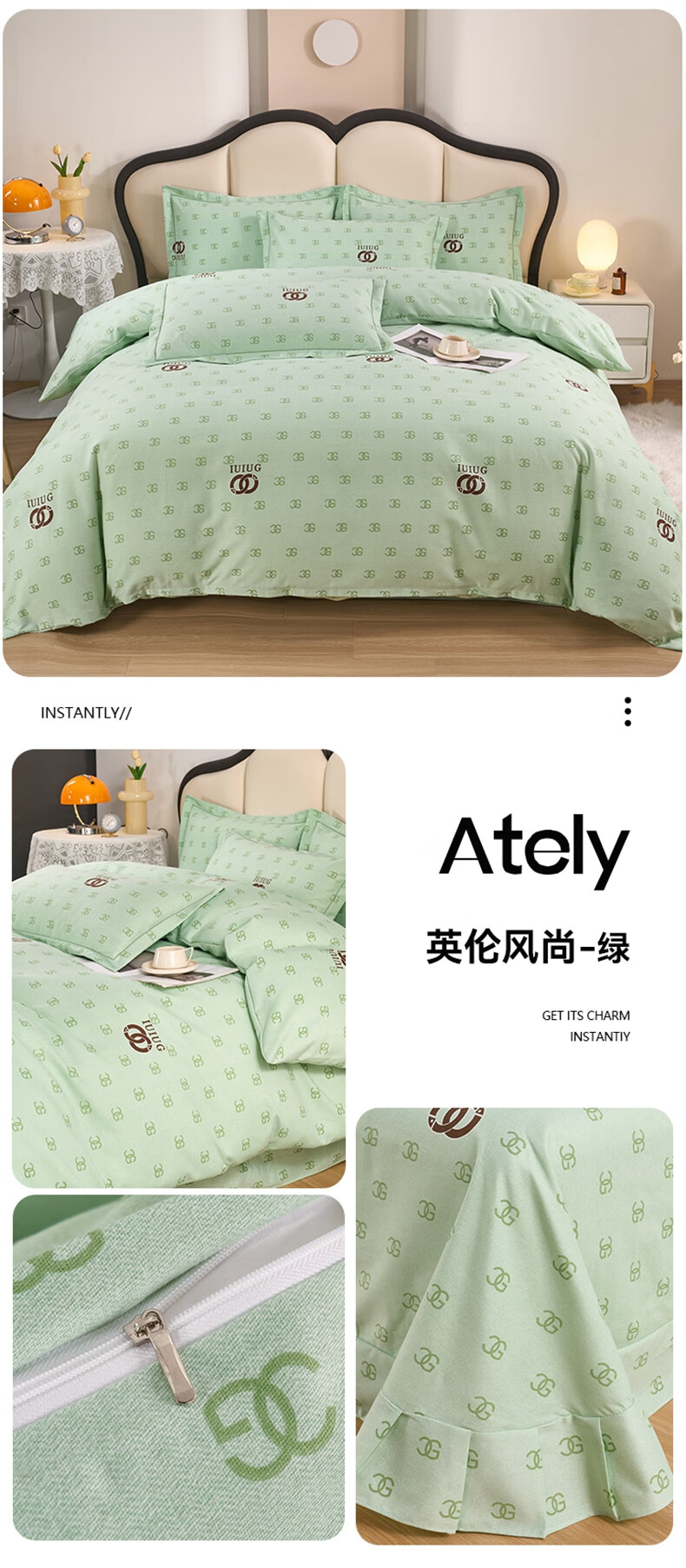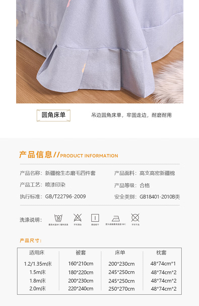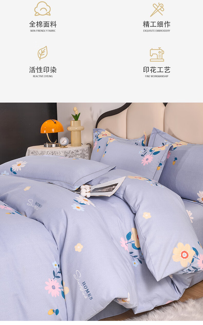 100 pure cotton four-piece set, pure cotton brushed four-piece set, thickened twill Xinjiang cotton four-piece set, skin-friendly and soft for all seasons Fangfei Manyu-Pink 1.5m bed sheet style four-piece set
