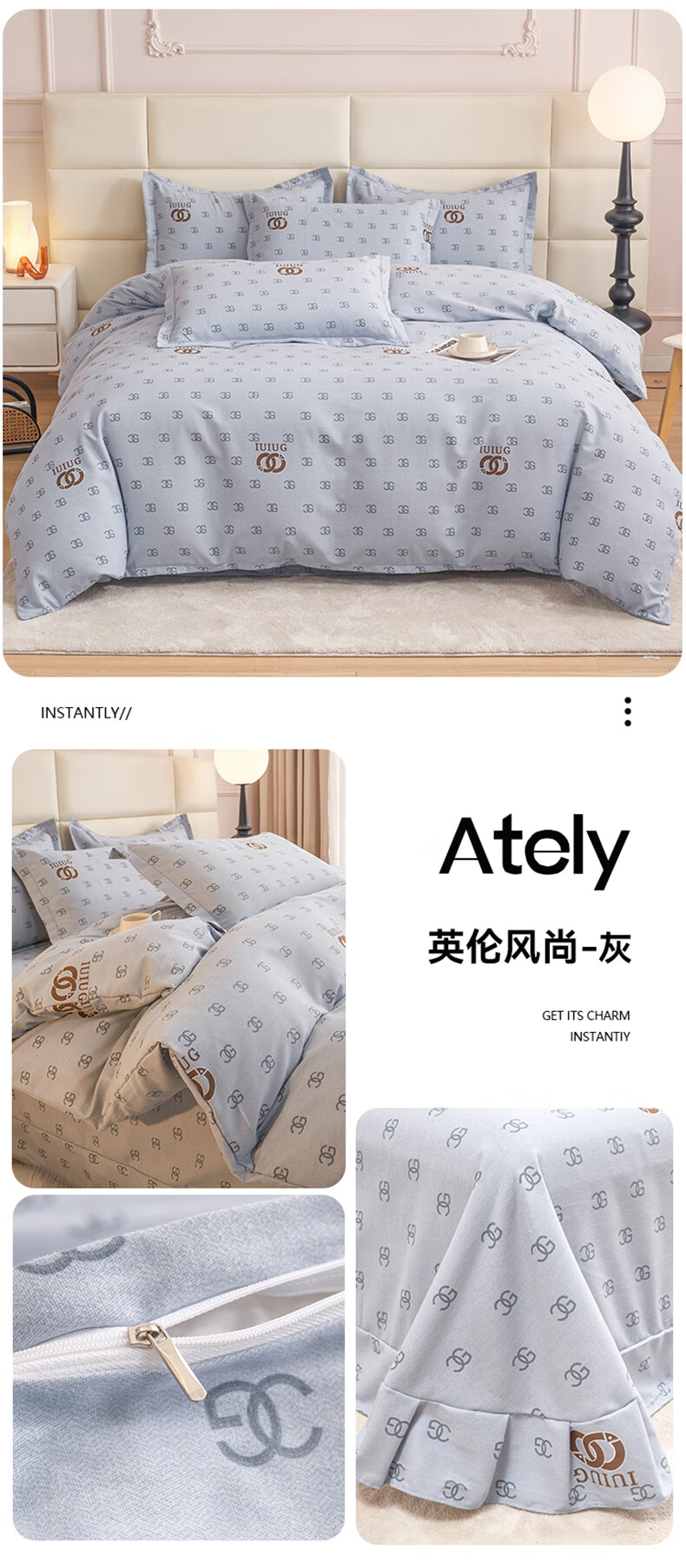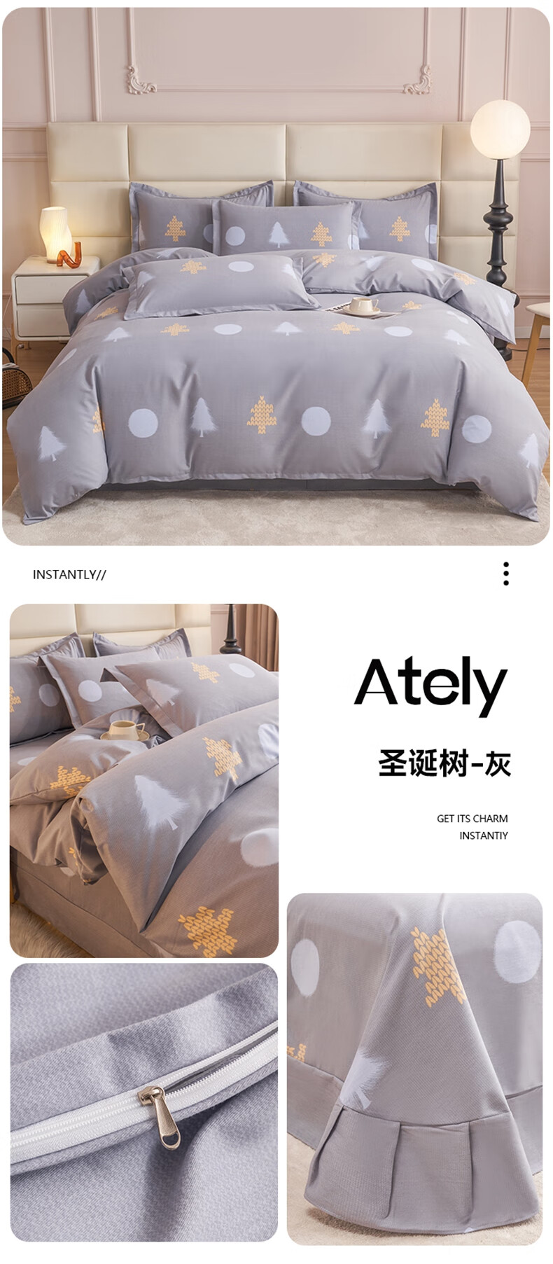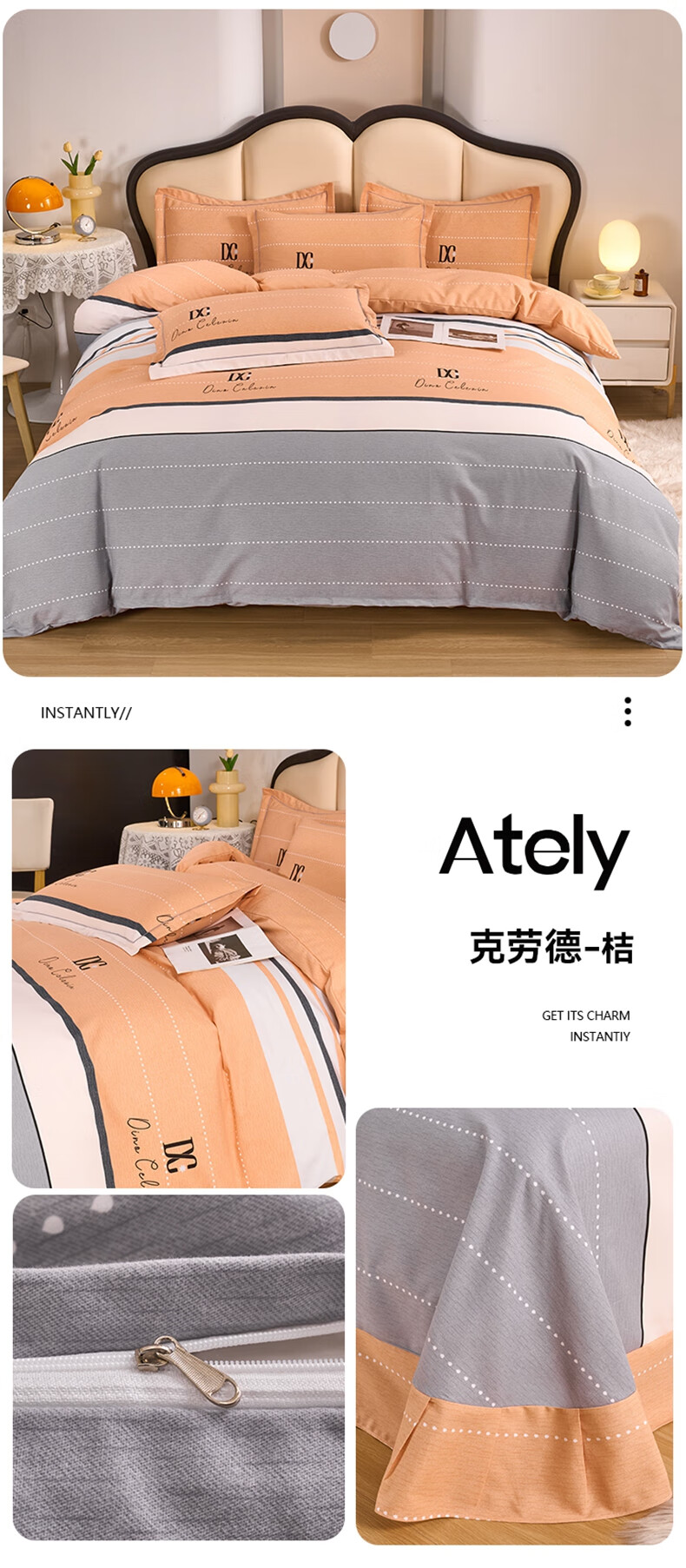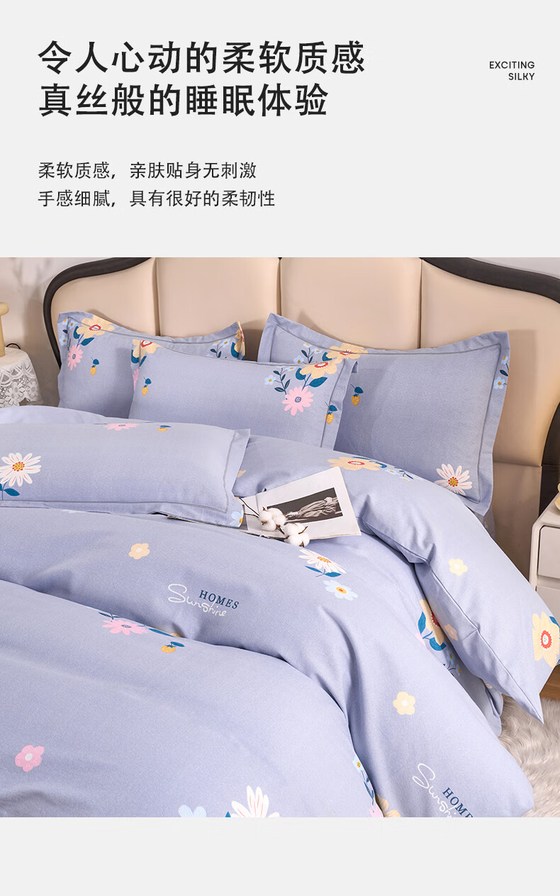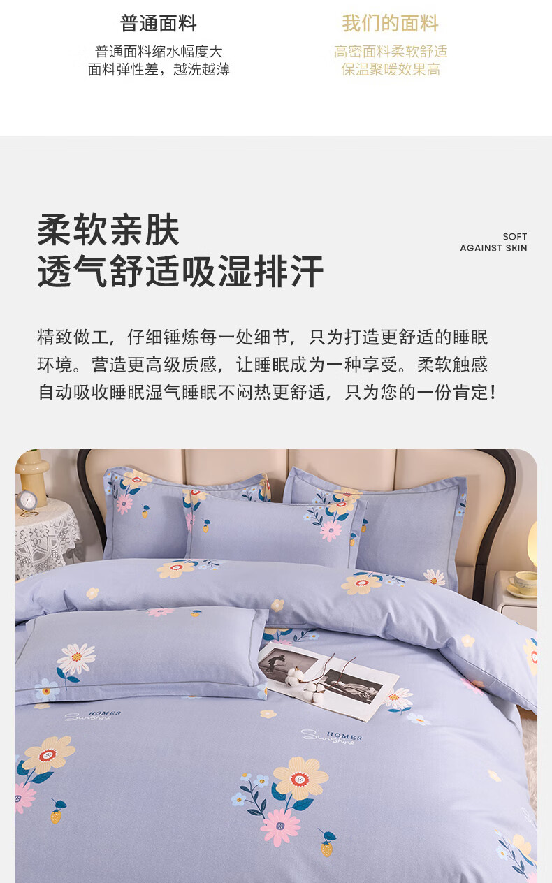 100 pure cotton four-piece set, pure cotton brushed four-piece set, thickened twill Xinjiang cotton four-piece set, skin-friendly and soft for all seasons Fangfei Manyu-Pink 1.5m bed sheet style four-piece set