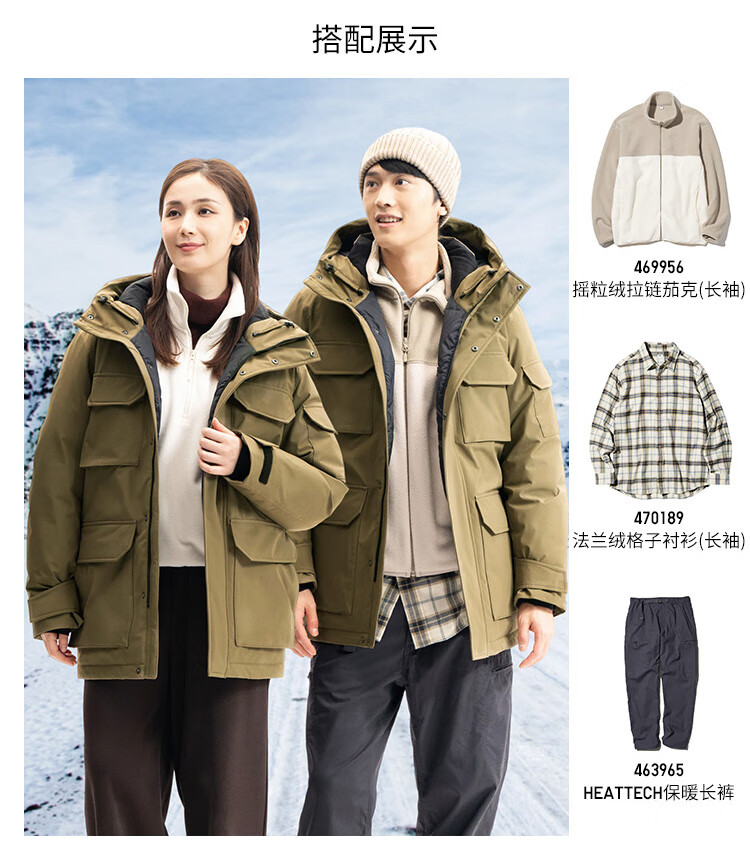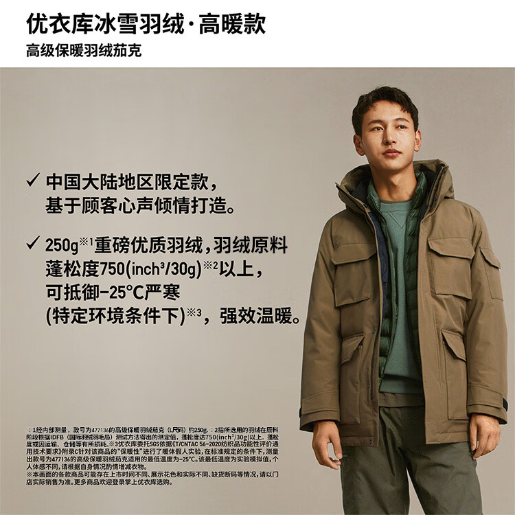Uniqlo Men's and Women's Premium Warm Down Jacket Ice and Snow Down Outdoor Hooded Jacket 477136 56 Olive L/175/100A