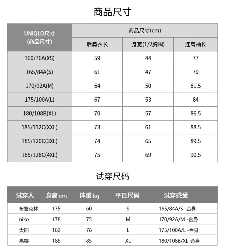 China (cm) 160-165/84-86 165-170 / 88-90 167-172 / 92-96 168-173 / 98-102 170-176 / 106-110
