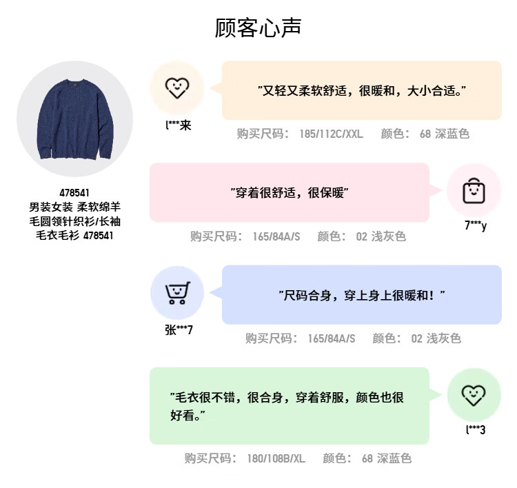 UNIQLO Men's and Women's Soft Sheep Wool Crew Neck Sweater/Long Sleeve Sweater Sweater 478541 68 Dark Blue L/175/100A