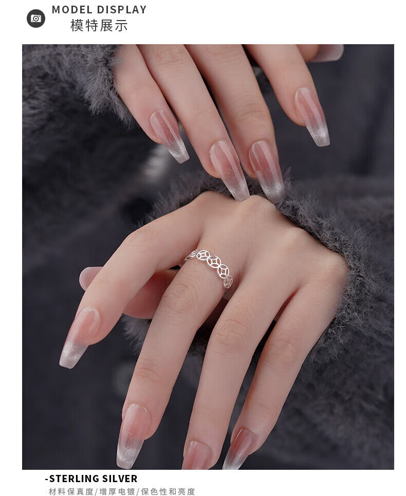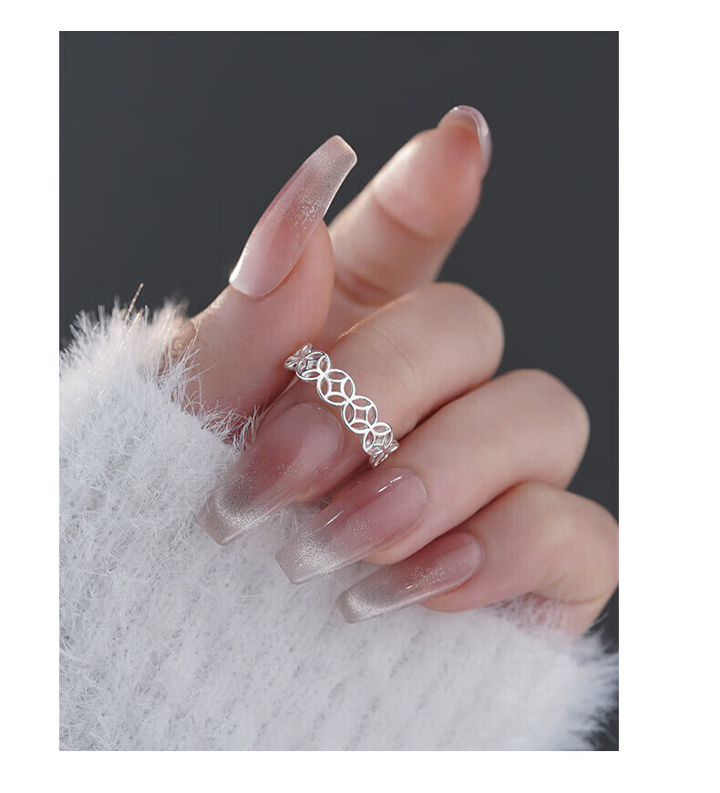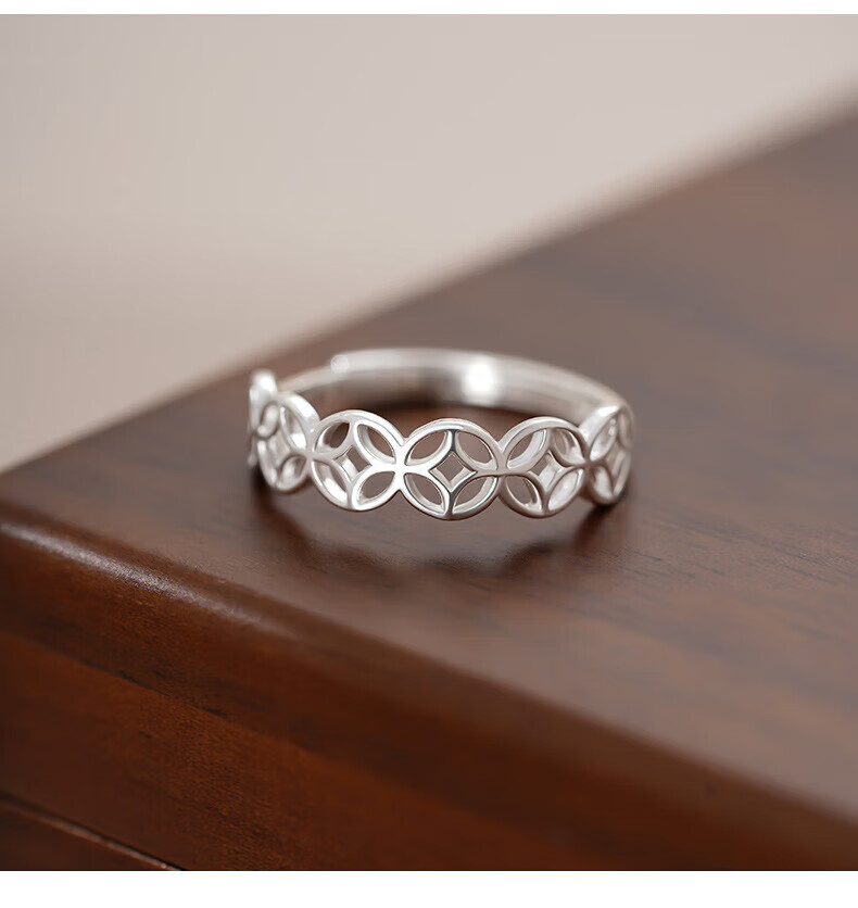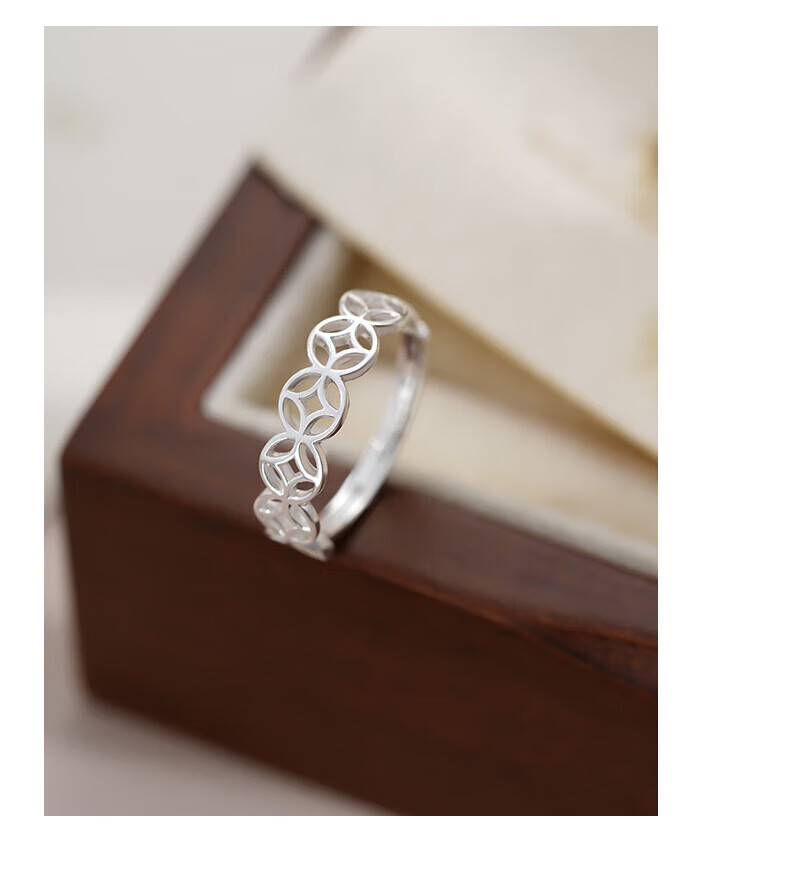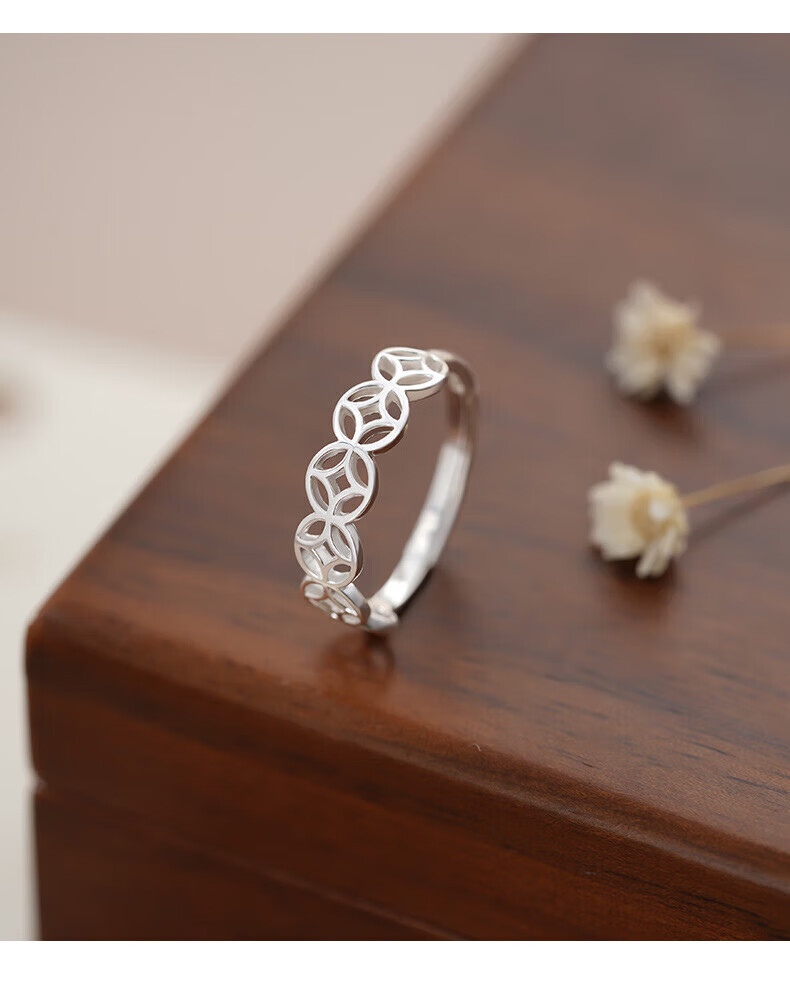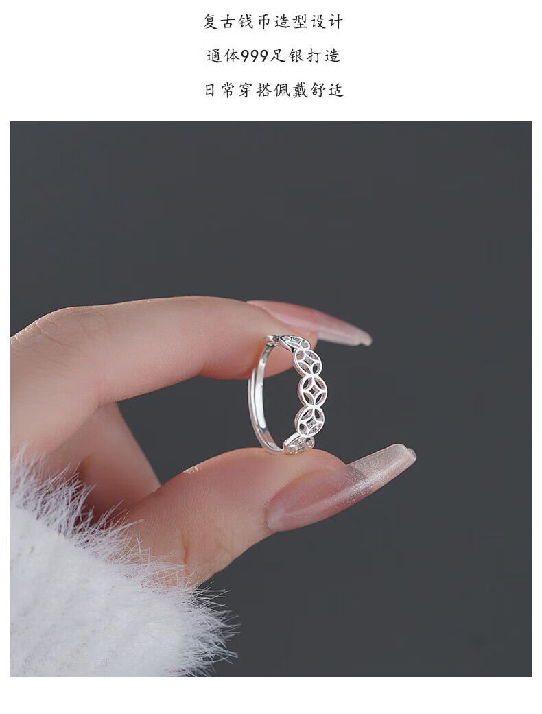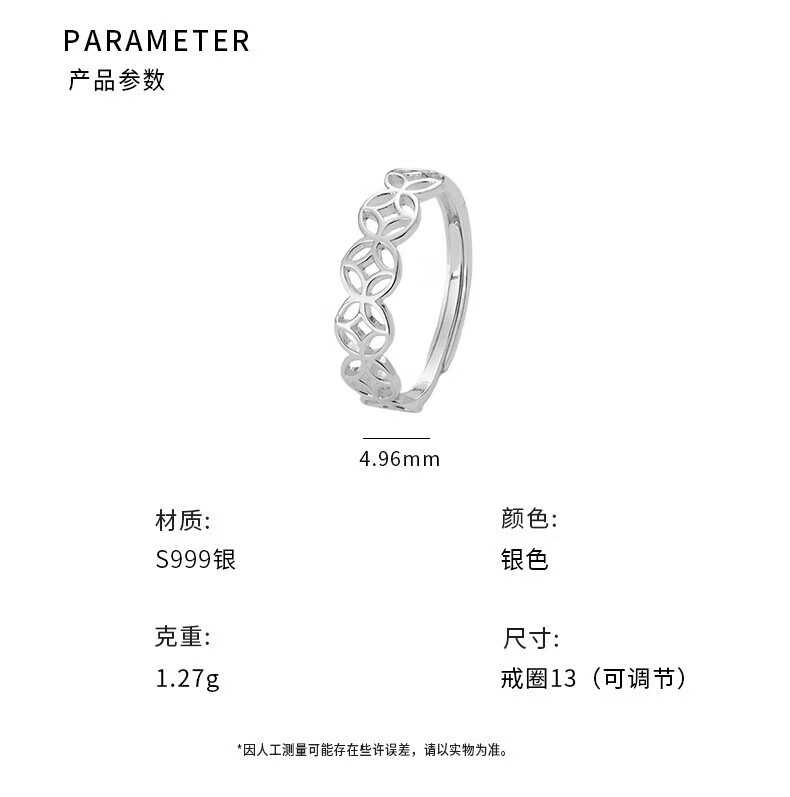 Baoqing Yinlou S999 Pure Silver Coin Ring for Women New Chinese Style Personalized Niche Design Literary Style Gift for Girlfriend and Wife Pure Silver Personalized Coin Ring About 1.31g