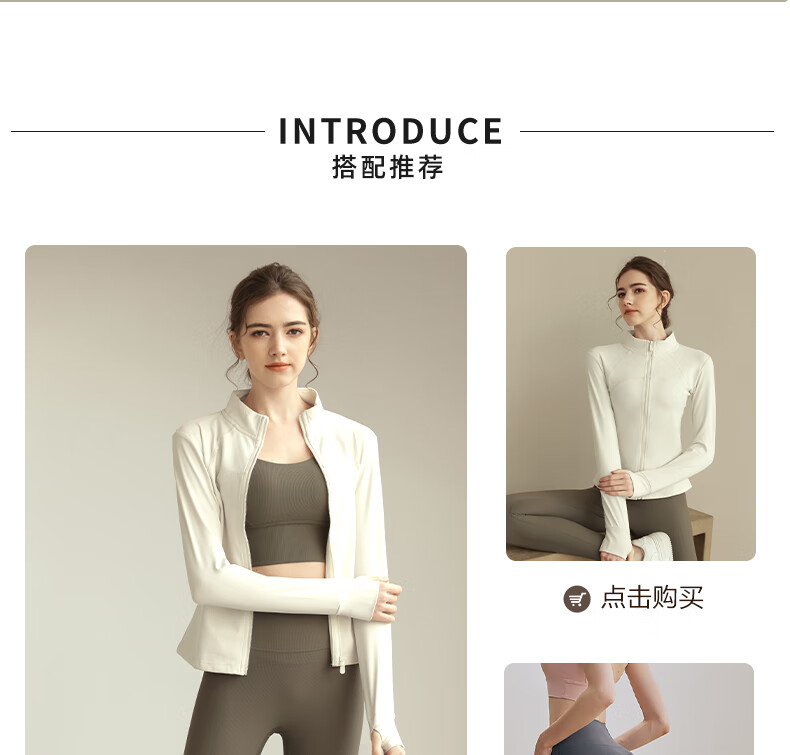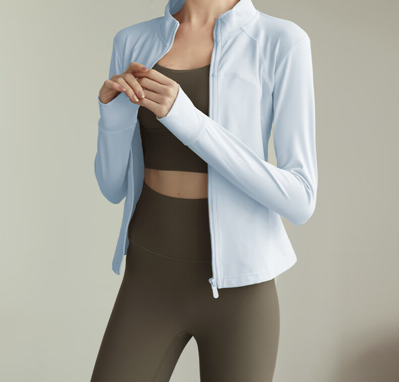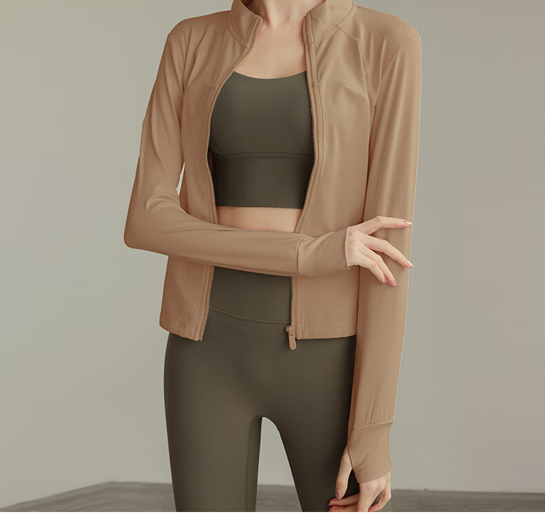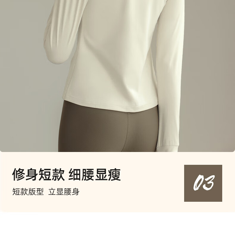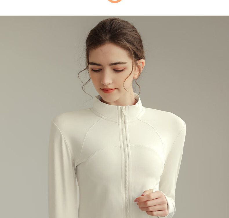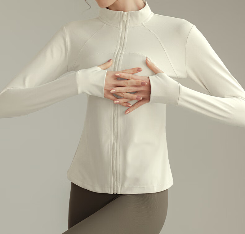 Yuebu Stand Collar Slim Sports Jacket Women's Running Training Pilates Fitness Wear Stretch Long Sleeve Yoga Wear Top Autumn Light Ivory Cashmere Free L Recommended Weight 110-125Jin Jin is equal to 0.5 kg