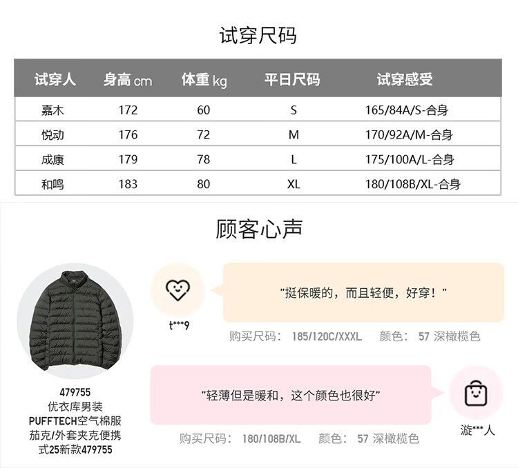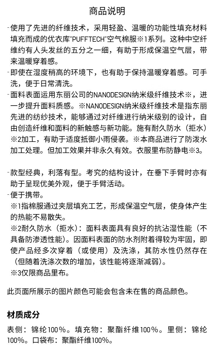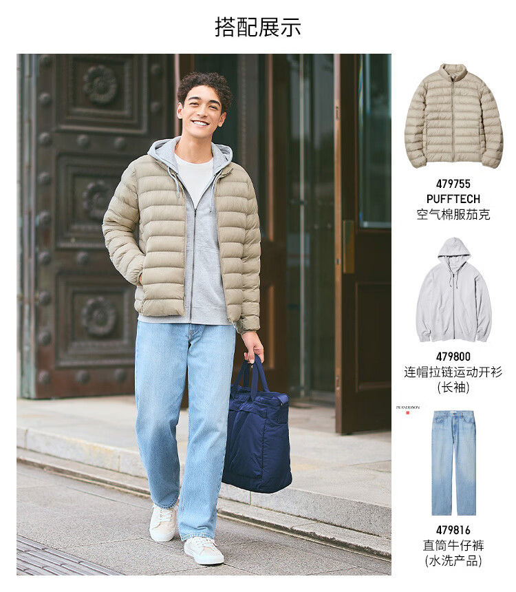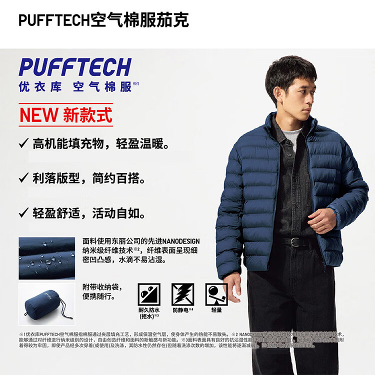 Uniqlo Men's PUFFTECH Air Cotton Jacket/Rib Jacket Portable 479755 09 Black XS/160/76A