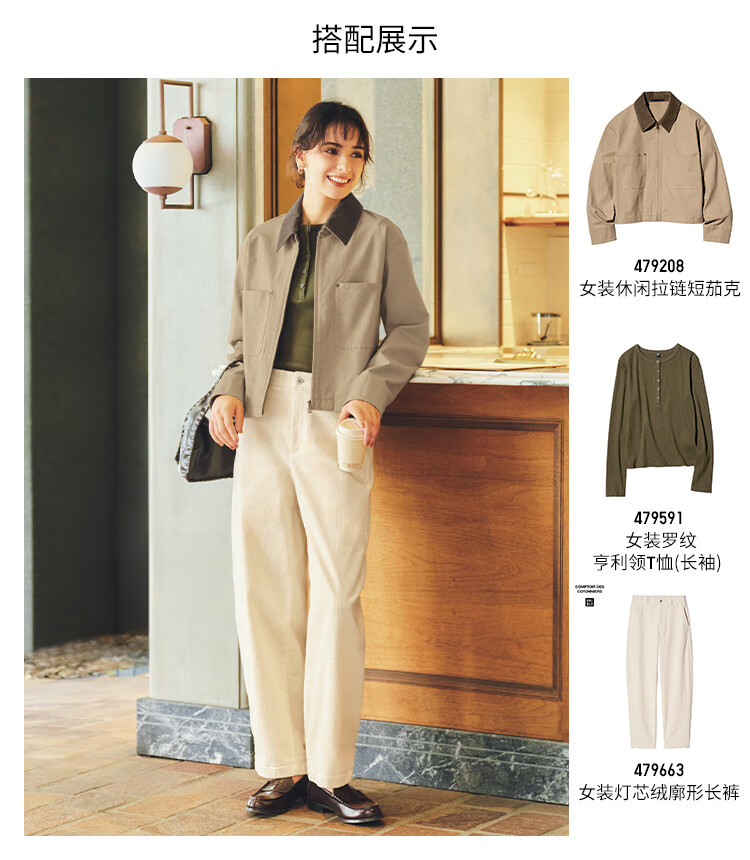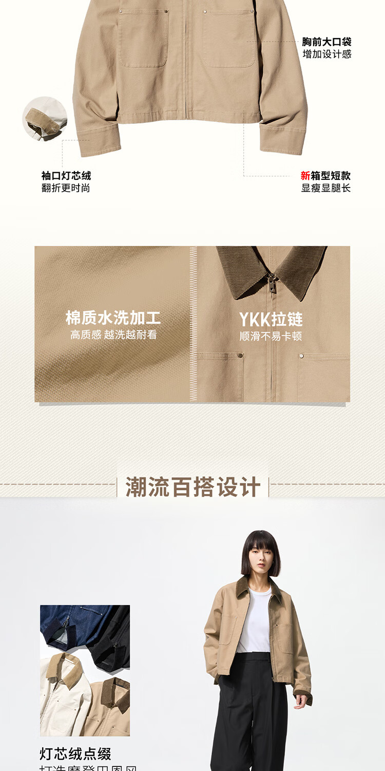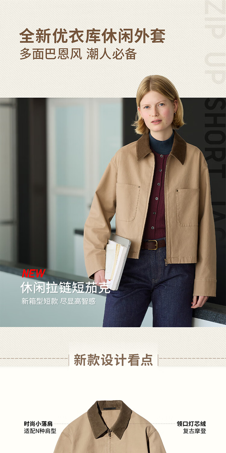Uniqlo Women's Casual Zip Short Jacket/Coat Bath Style Lapel Fashion Jacket New Style 479208 32 Dark Beige M /160/84A