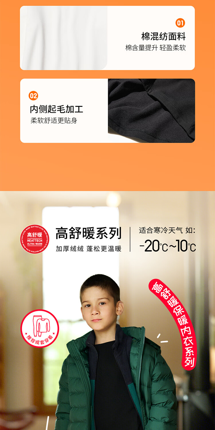 Uniqlo children's clothing boys and girls HEATTECH EXTRA WARM cotton blended tights/autumn clothes 472987 478637/09 black 160