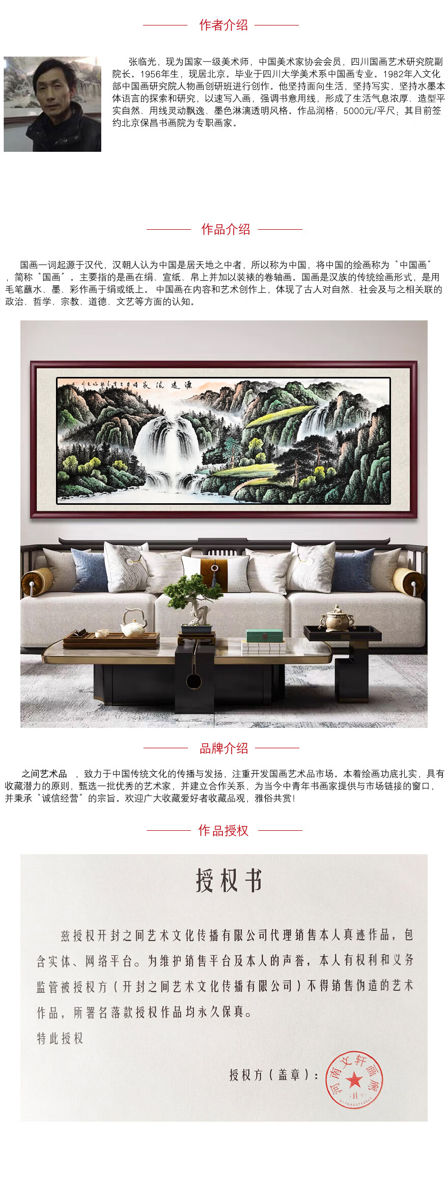 Jinliang Jade Pavilion Sino-American Association Zhang Linguang has a long history Authentic hand-painted celebrity calligraphy and painting Ink painting landscape painting Fengshui painting Zhang Linguang has a long history 175*68 CM