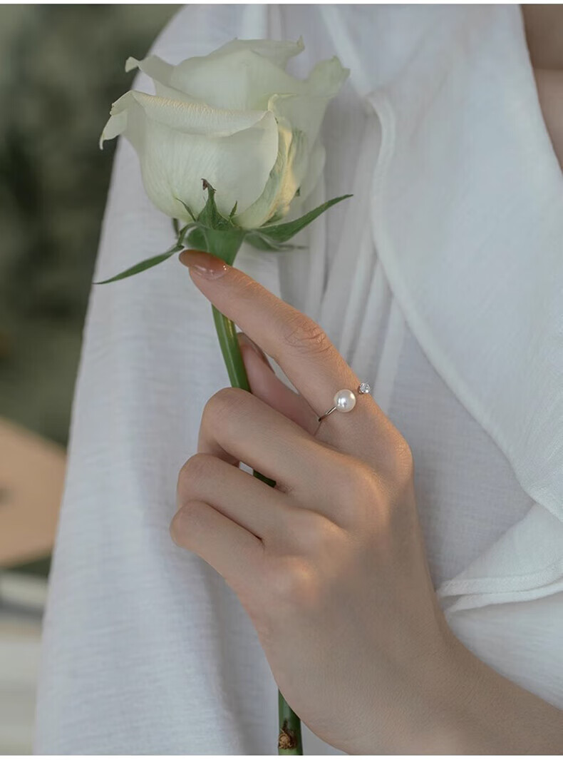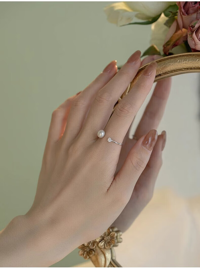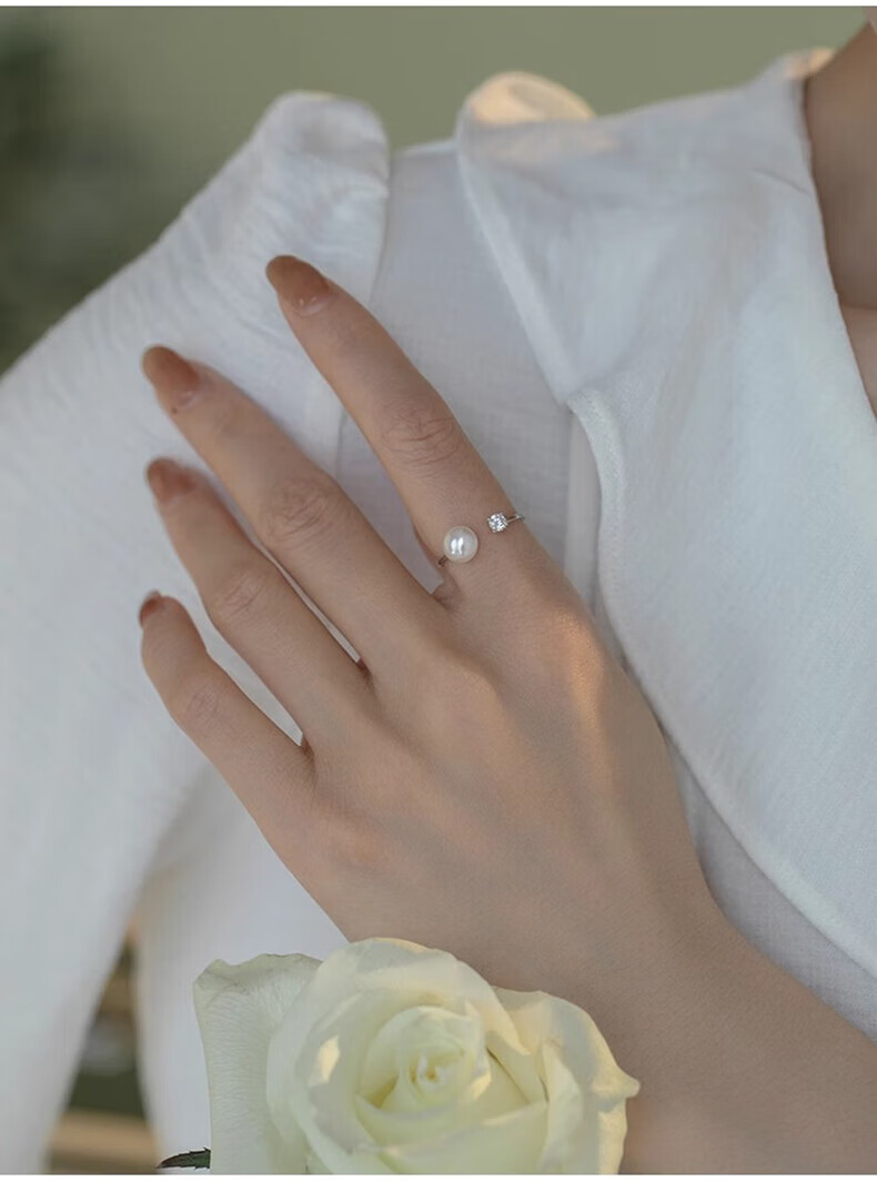 Laomiao Valentine's Day Gift Couple Ring Women's Ring Proposal Birthday Gift Girl Anniversary Gift for Girlfriend A Flash Zirconium Pearl Ring Platinum No Specifications