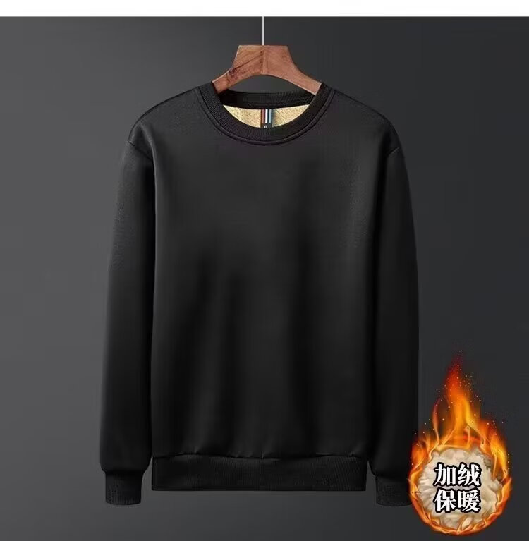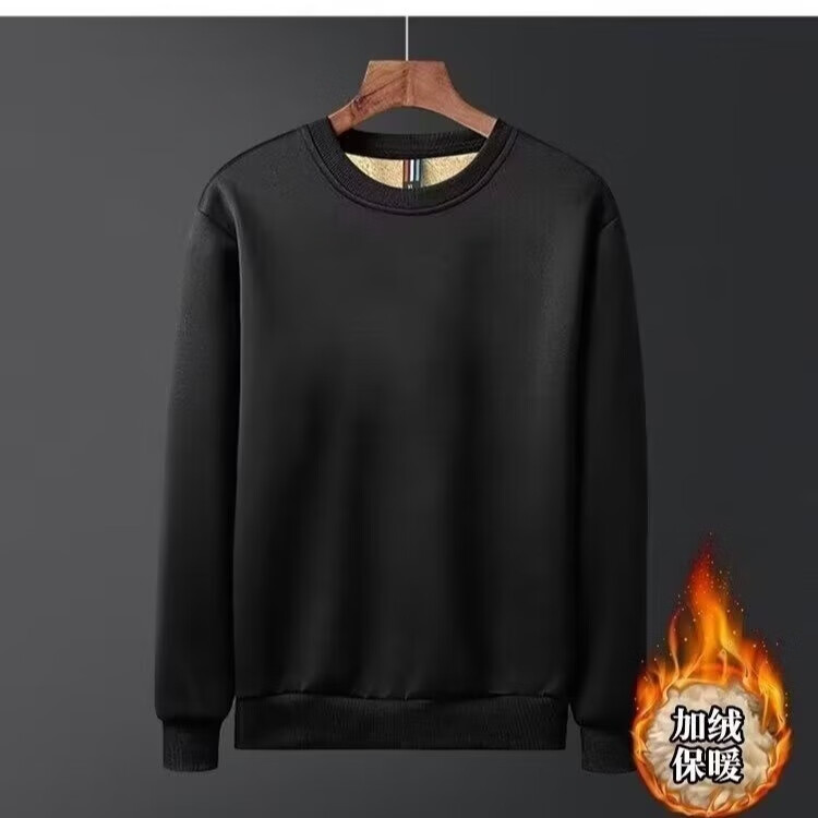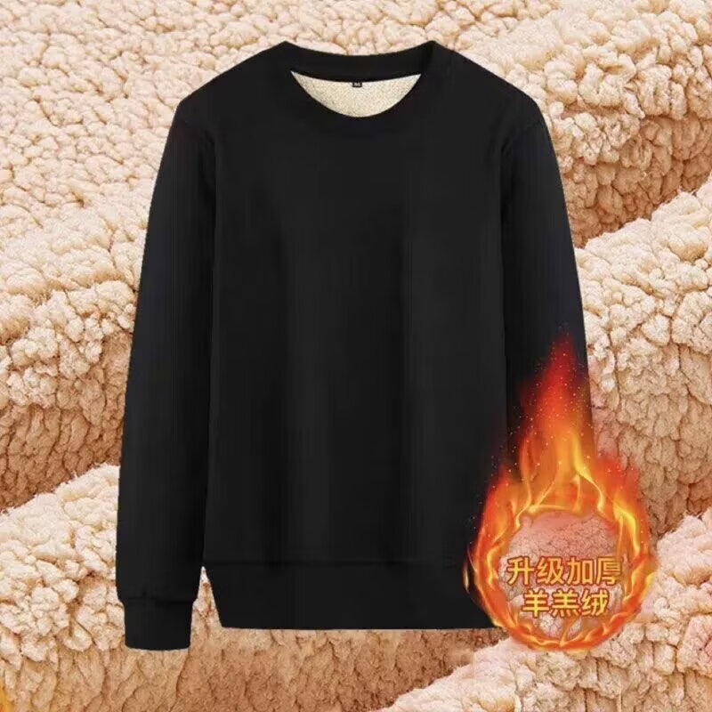 Sheep wool thickened round neck sweatshirt for men in autumn and winter, loose large size warm base shirt jacket, new clothing D80/black XL