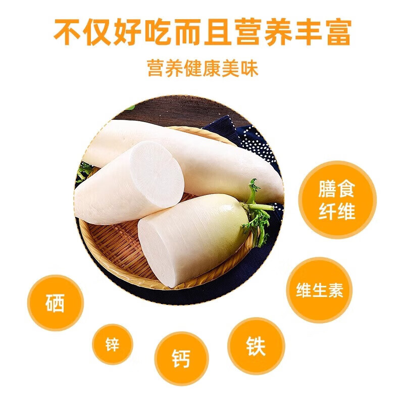 White radish, fresh in season, freshly dug, crispy, sweet and juicy, farm-grown and eaten raw, crispy, sweet and refreshing. White radish 5Jin Jin is equal to 0.5kg.