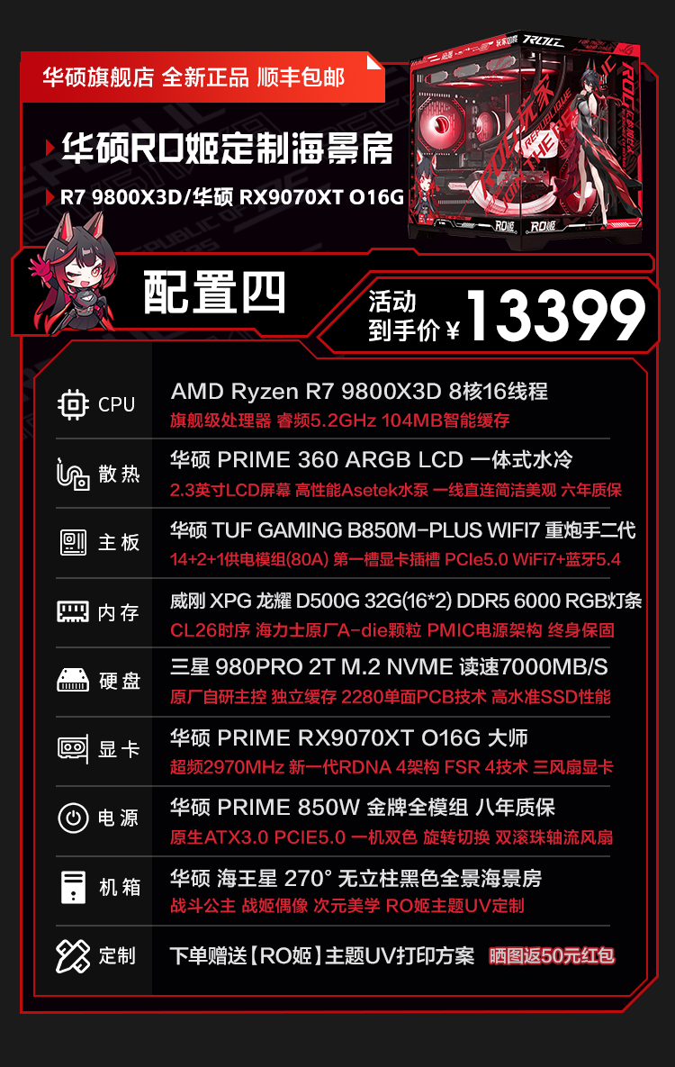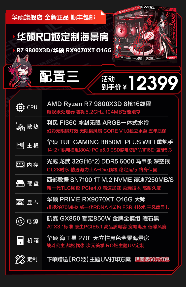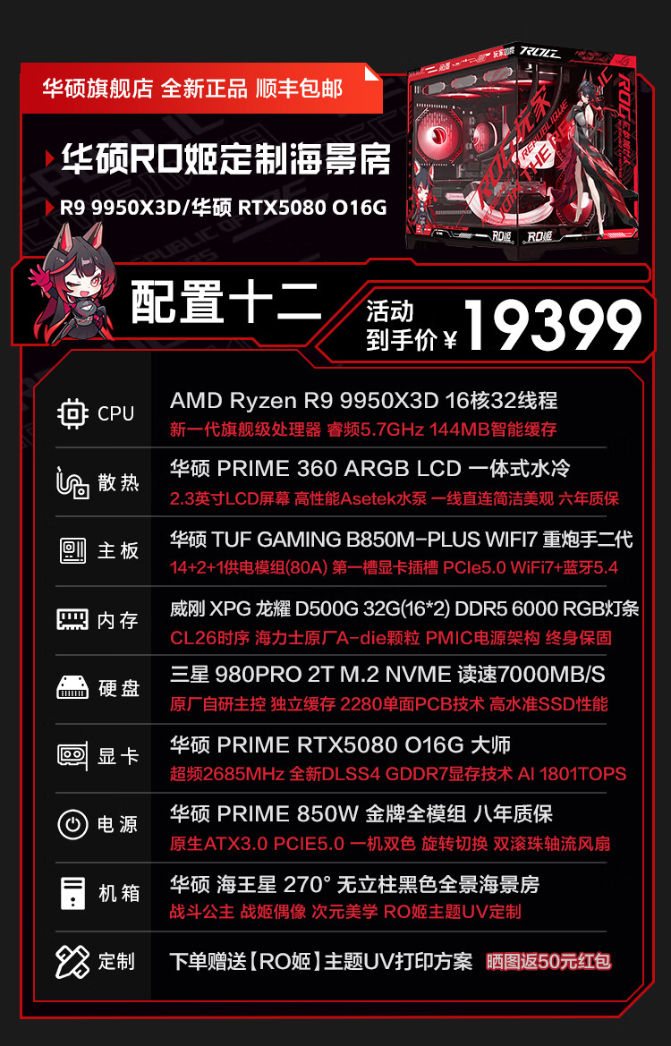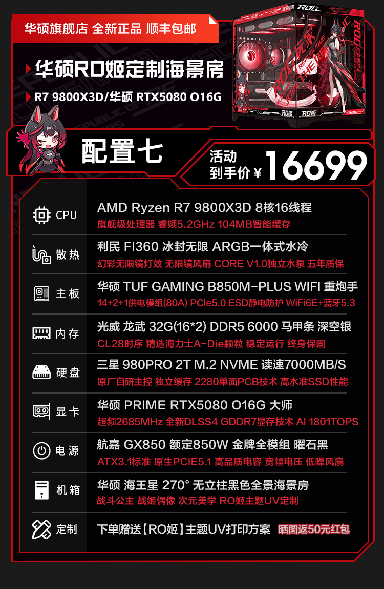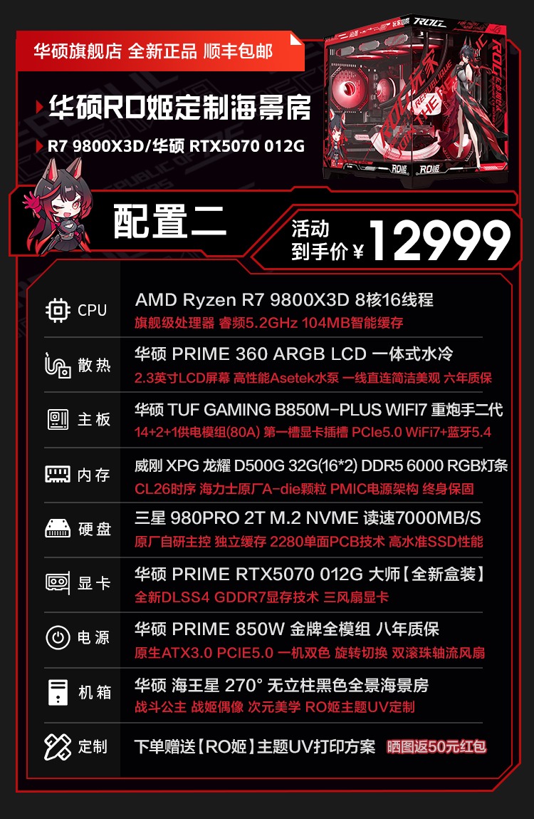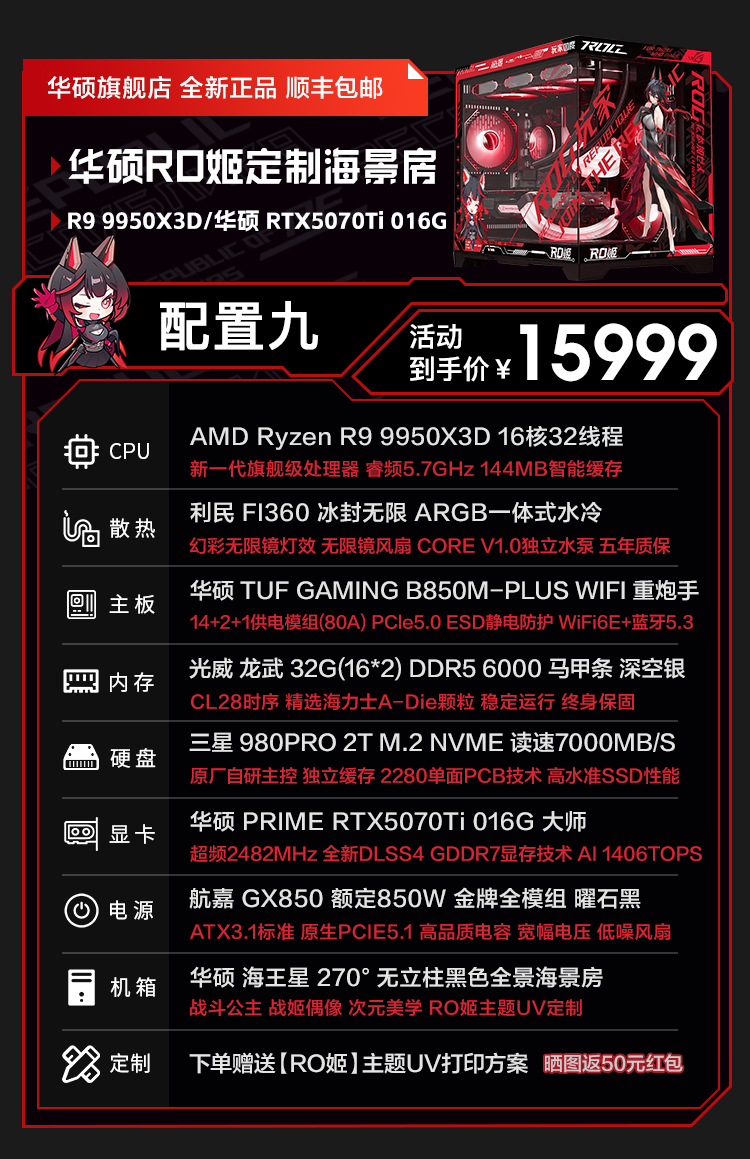 ASUS family bucket RTX5080/5070ti/5070 graphics card AMD thousand frames e-sports R7 9800X3D assembled computer host game DIY desktop complete machine RO Ji mod sea view room R7 9800X3D + ASUS RTX5070Ti with five