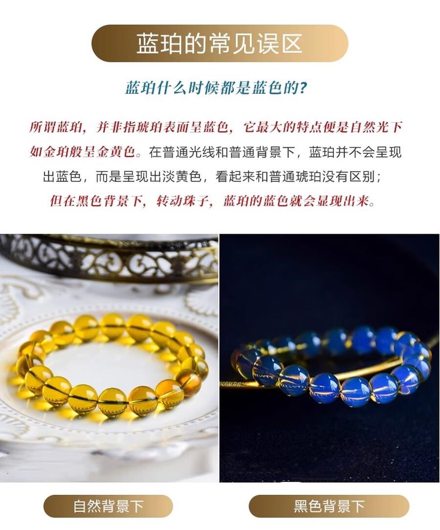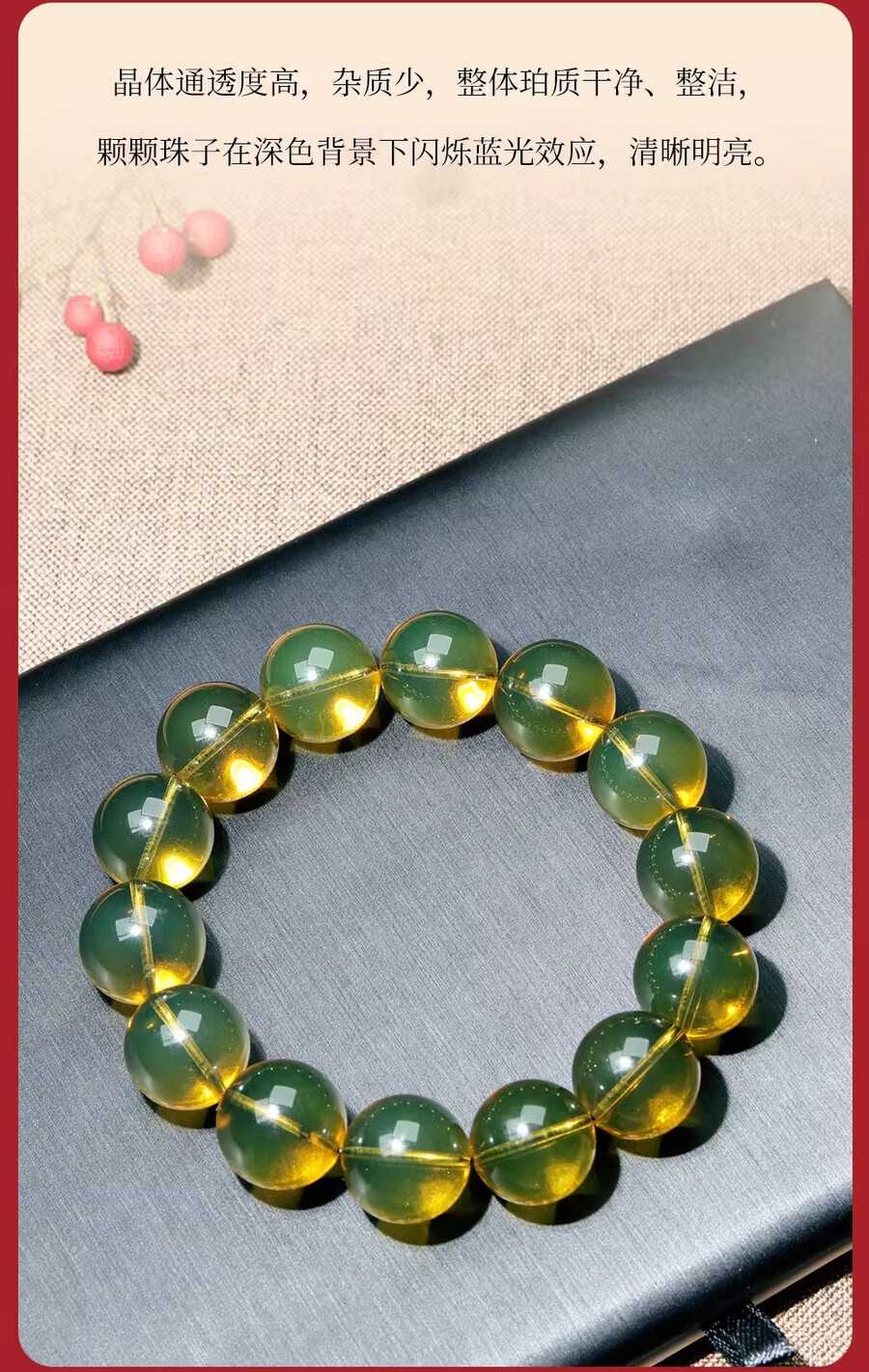 Nine Color Cloud Purified Water High Blue Mexican Blue Amber Bracelet Women's Men's Bracelet Single Circle Amber Jewelry Bracelet Purified Water Blue Amber 10mm