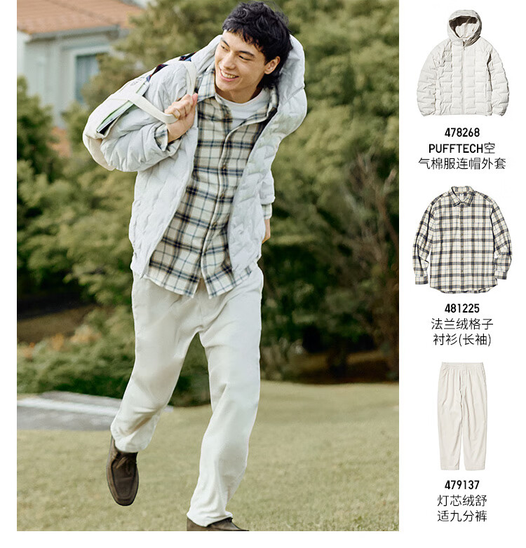 Uniqlo men's and women's flannel plaid shirt long-sleeved shirt thin jacket 481225 480770 481225/30 light beige S