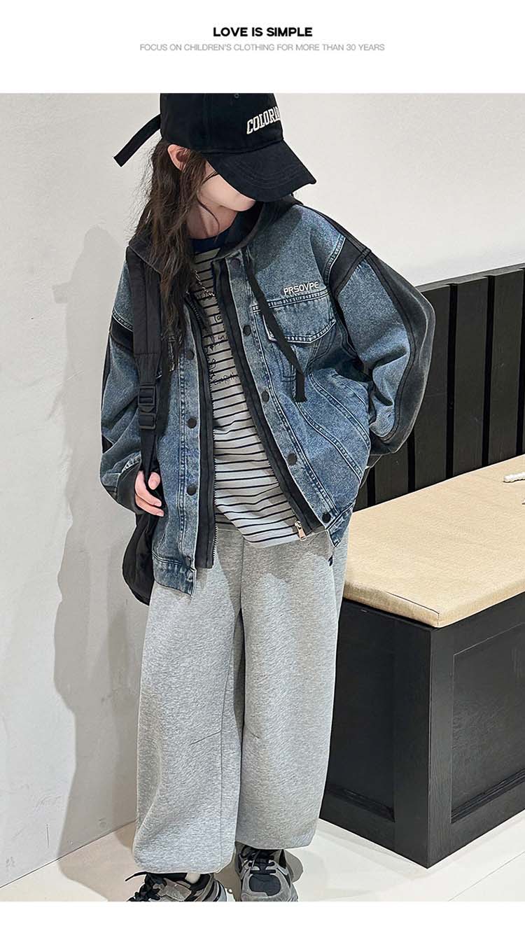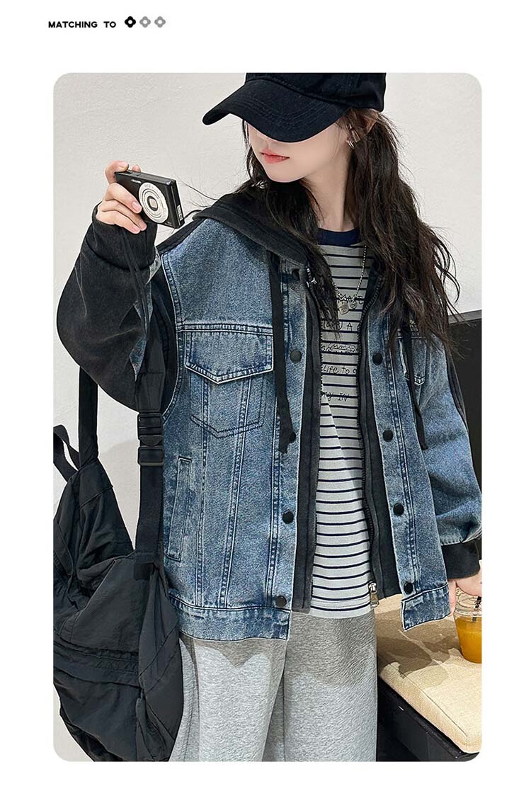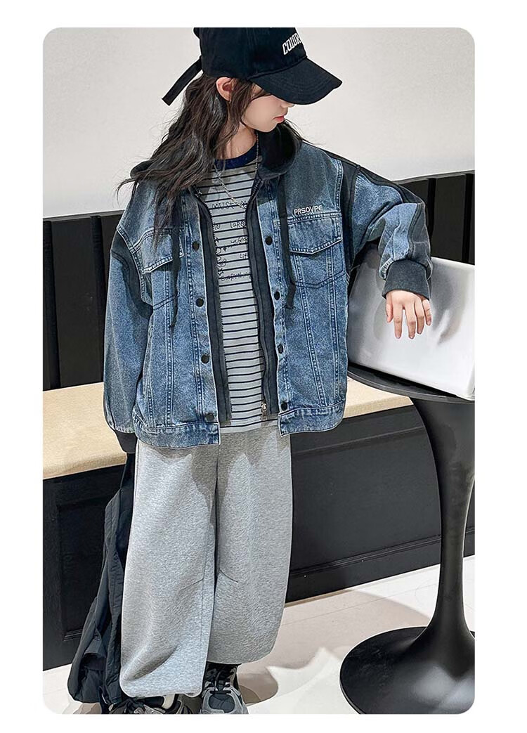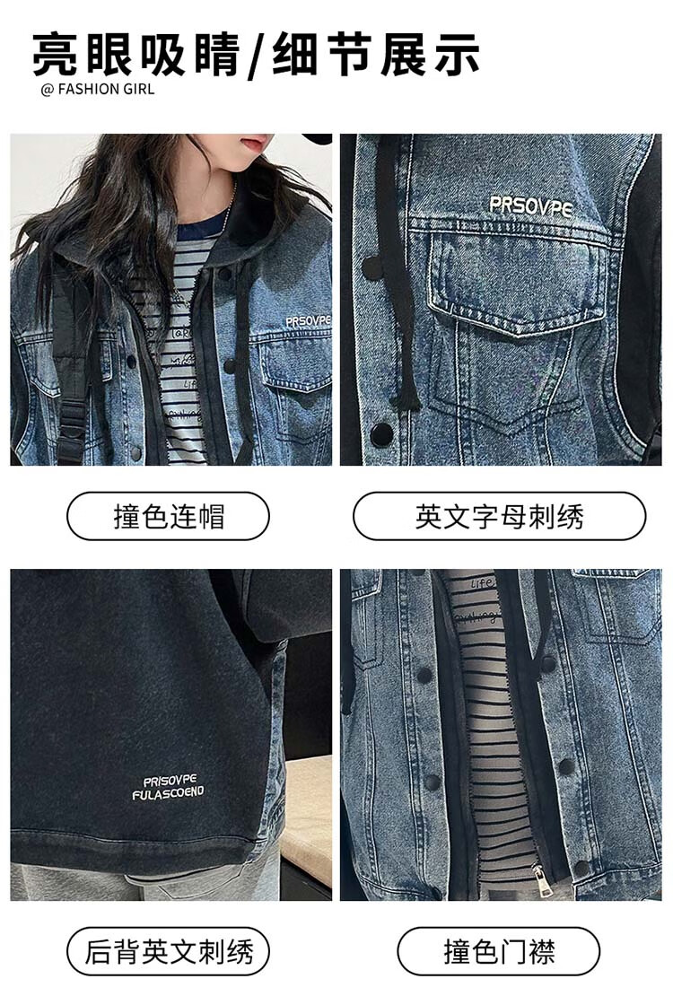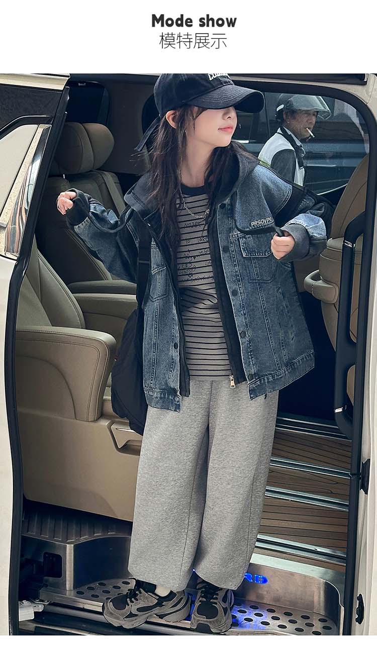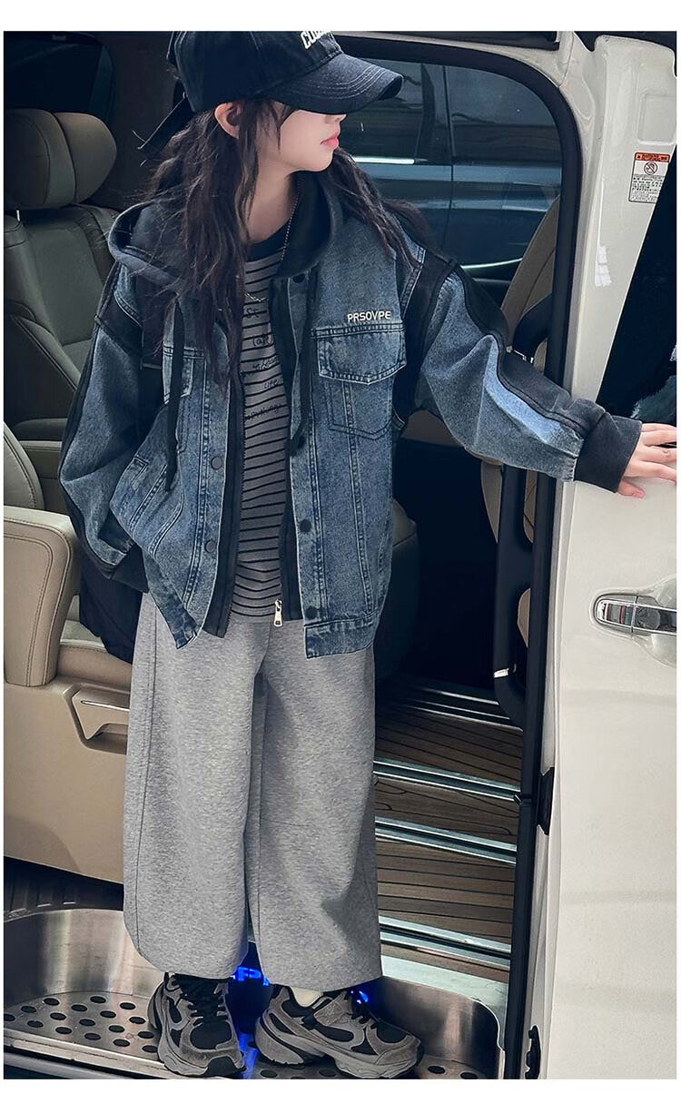 Burwilde international brand girls' denim jacket Korean style spring and autumn 2025 new style for middle-aged and older girls with style and personality hooded blue (jacket) 120 cm