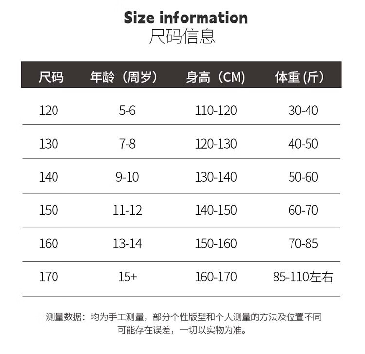 China (cm) 160-165/84-86 165-170 / 88-90 167-172 / 92-96 168-173 / 98-102 170-176 / 106-110
