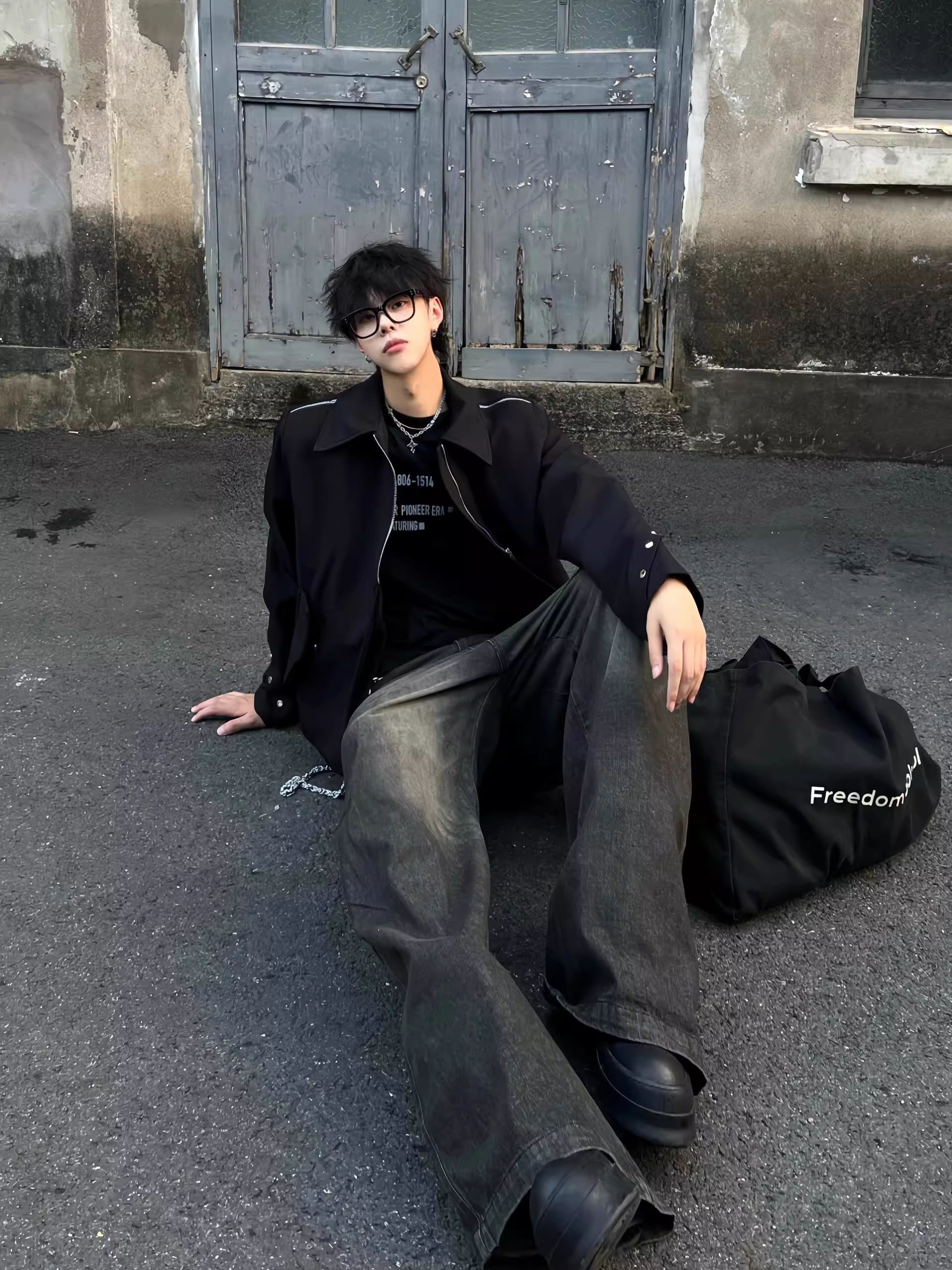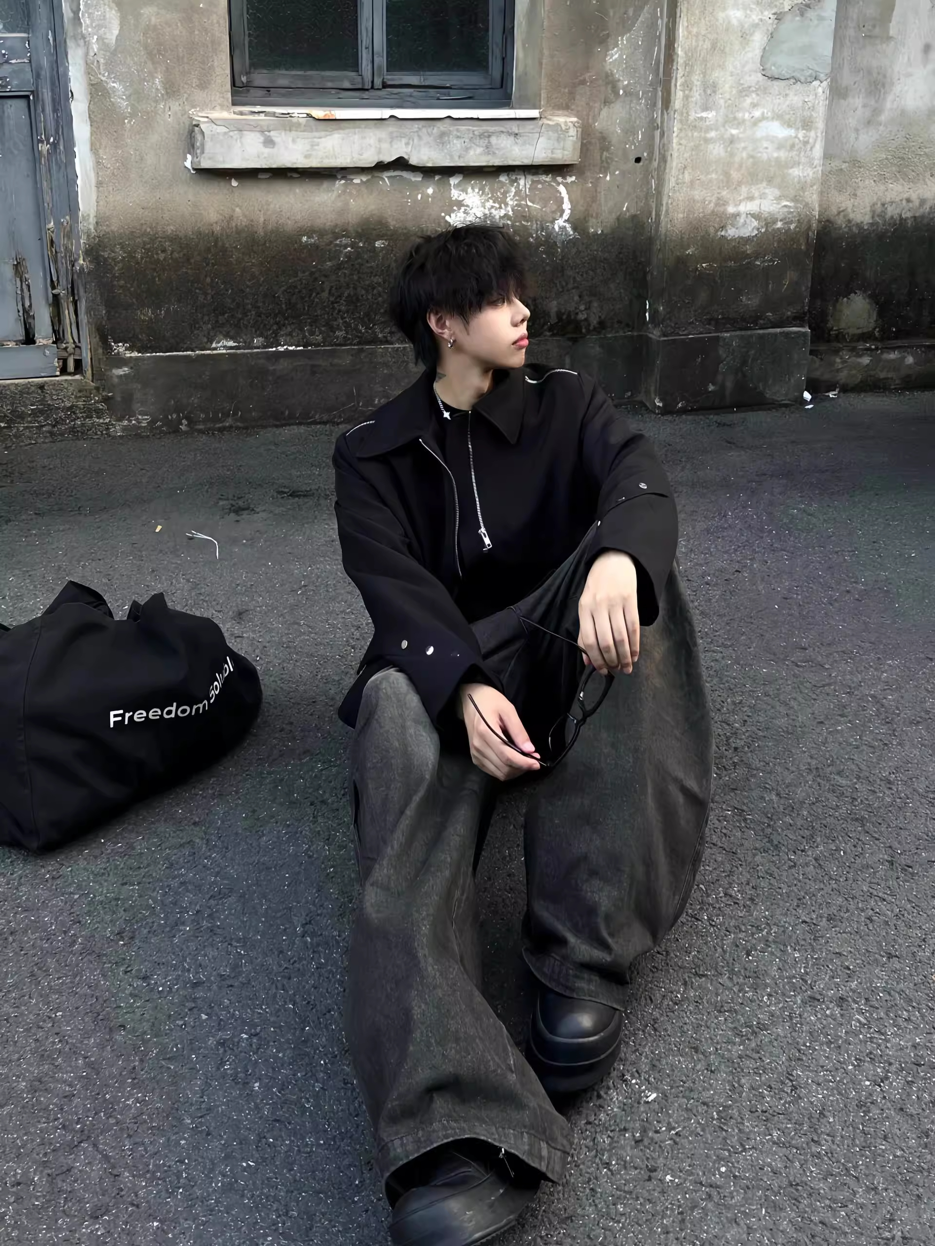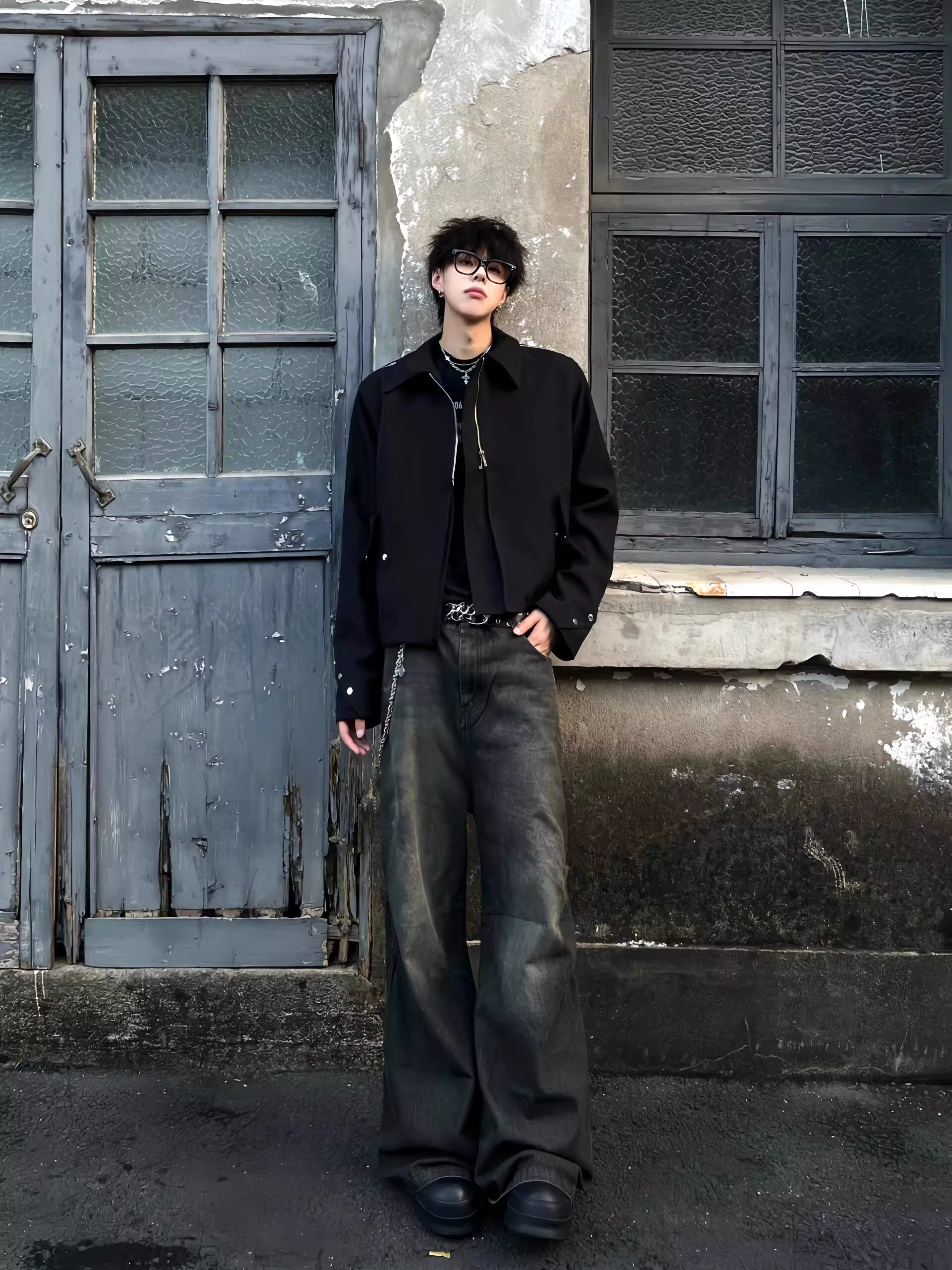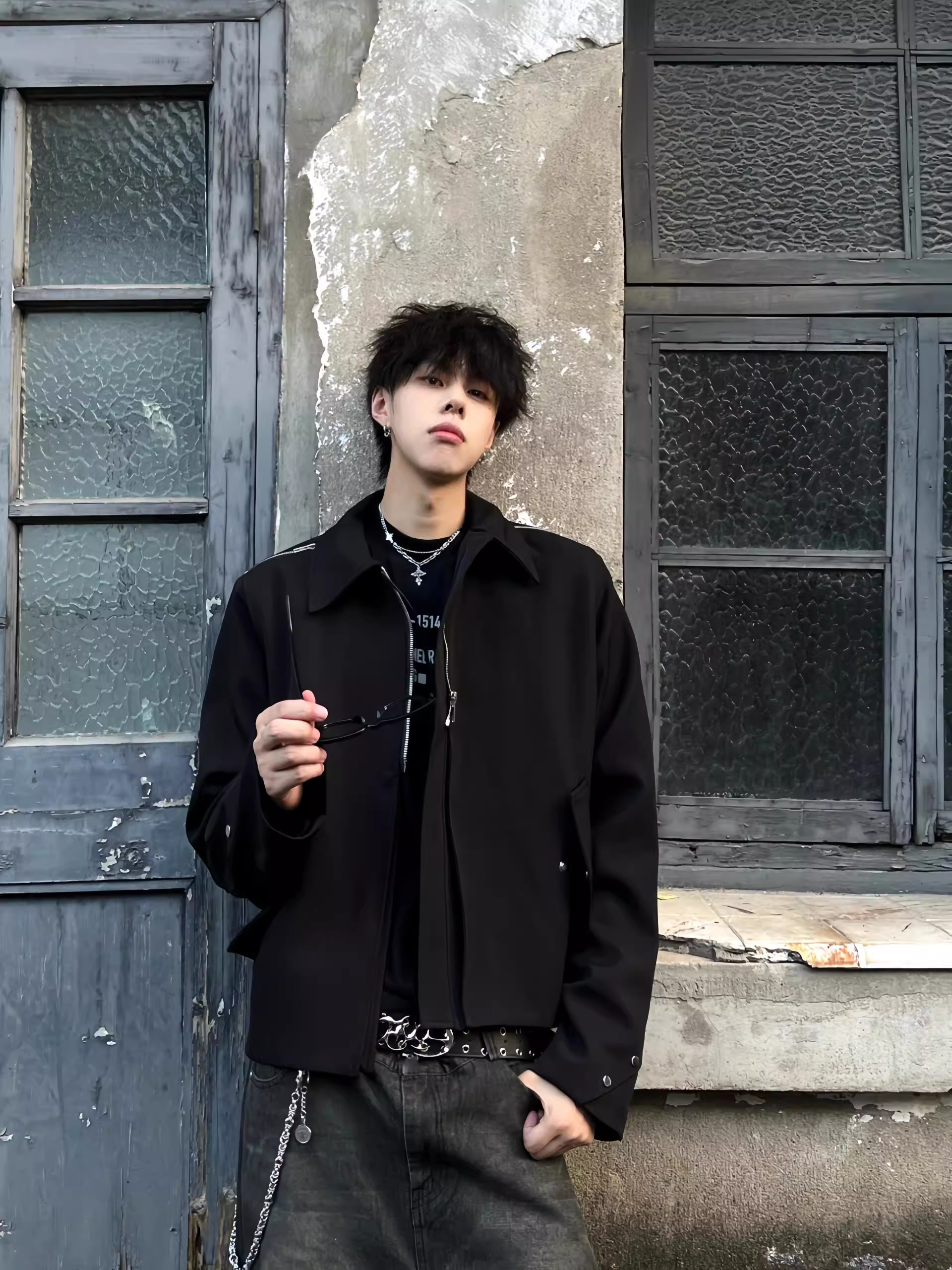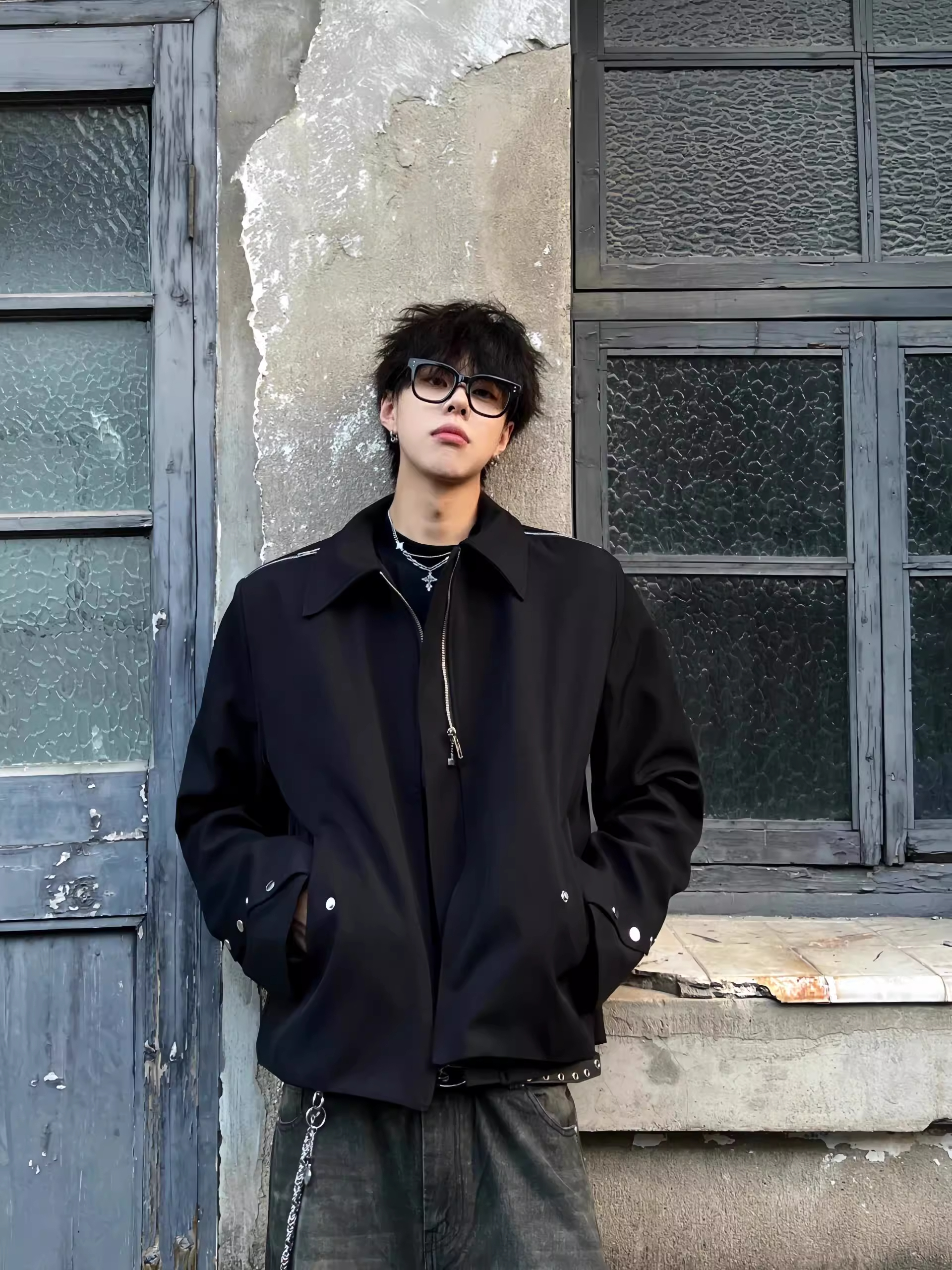 POUM American cleanfit shoulder pad short jacket men's handsome lapel shoulder top design niche jacket trend XKFS-J422 black XL