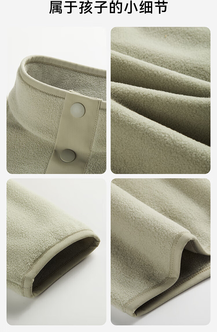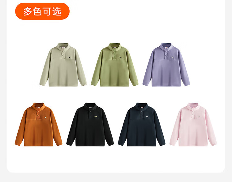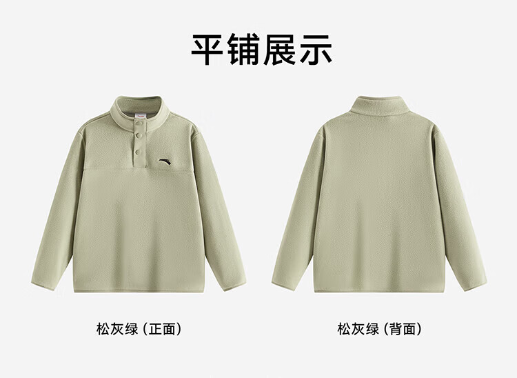 ANTA Children's Sports Sweatshirt for Boys and Girls 2025 Spring and Autumn New Stand Collar Pullover Polar Fleece Warm Long Sleeve T-Shirt Smoke Green 160 cm