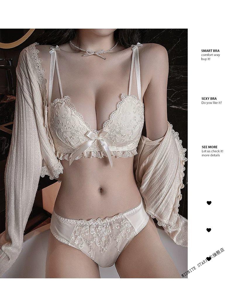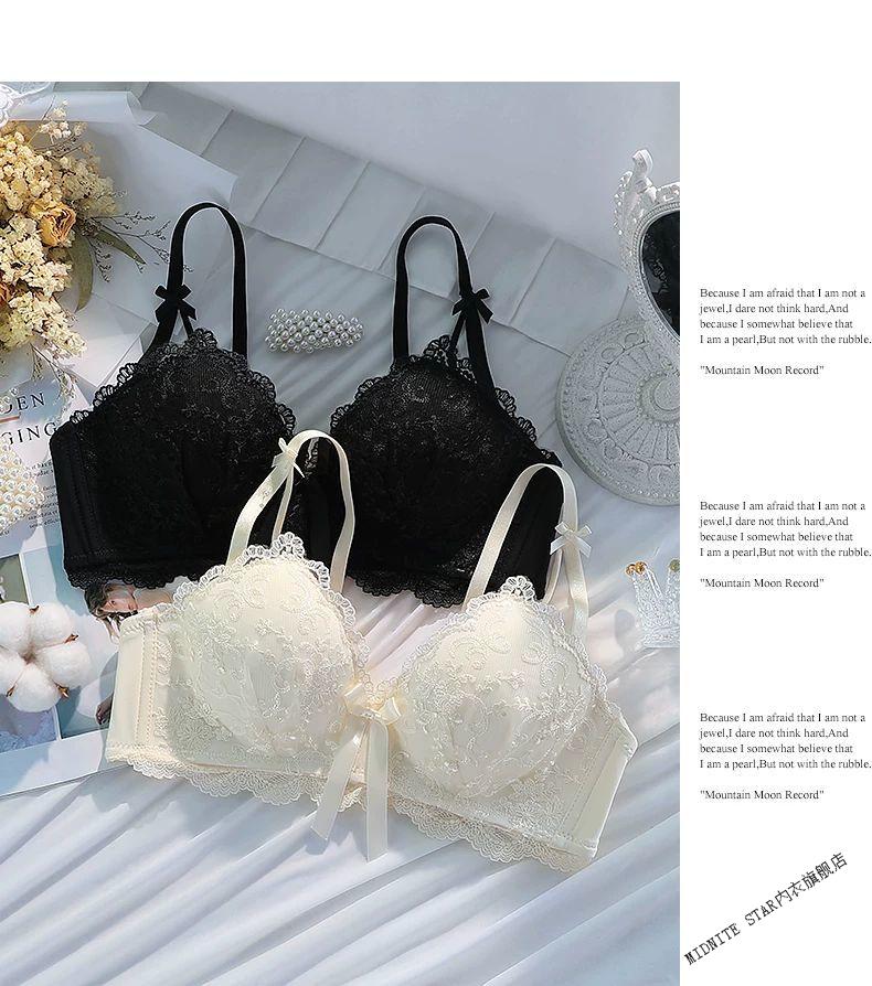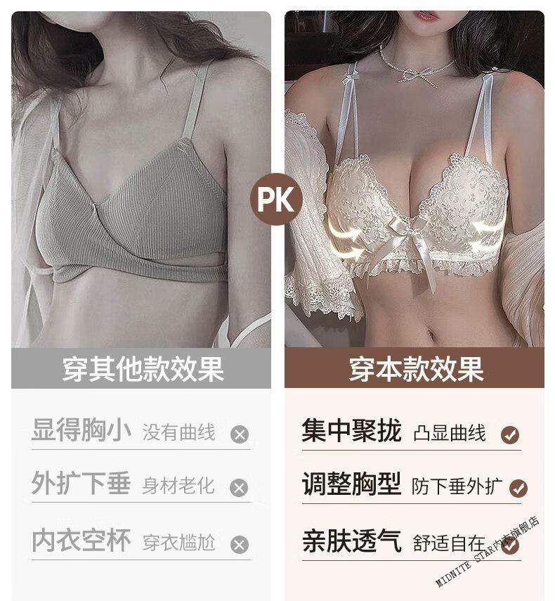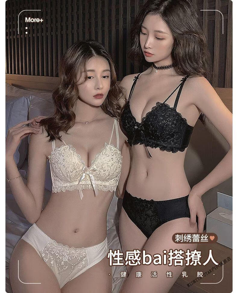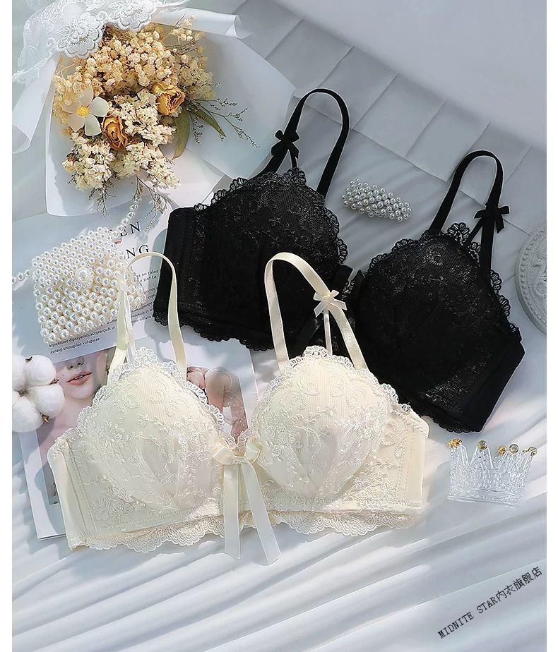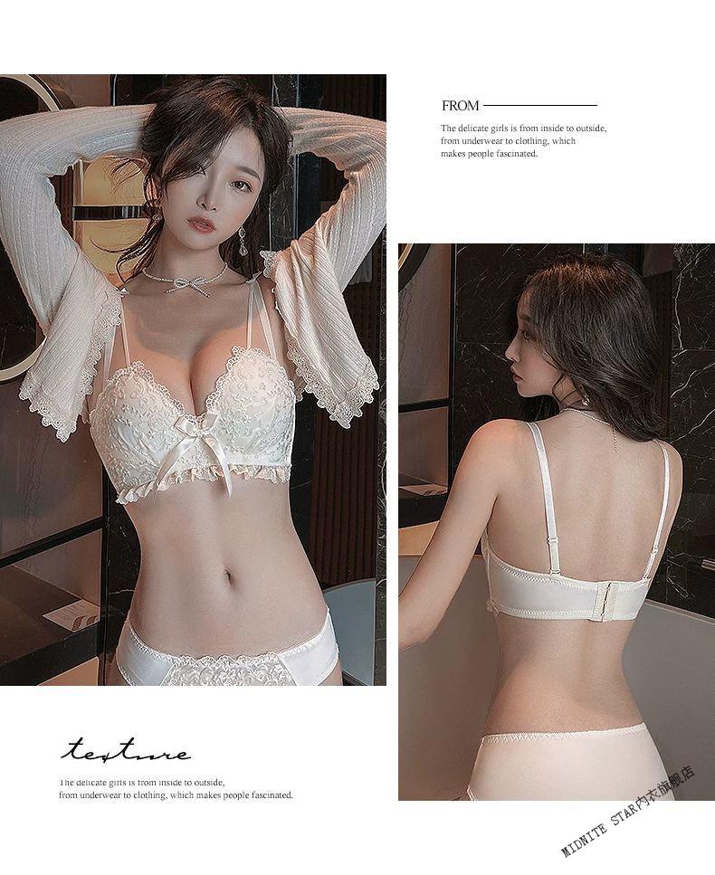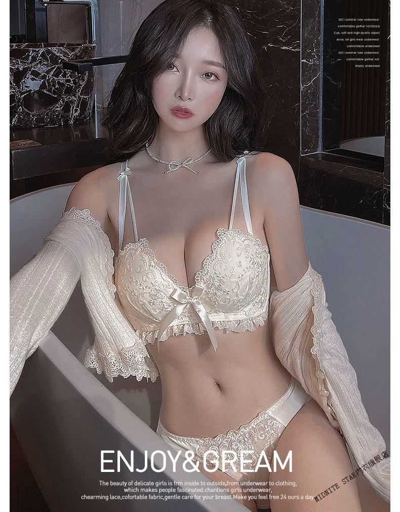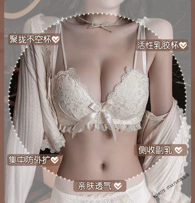 MIDNITE STAR Latex Bra 2025 New Women's Underwear Women's Small Breast Gathering Big Sexy Lace Bra Set Cream Single Piece 70A 32