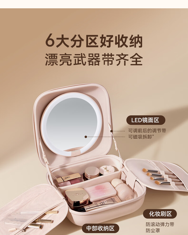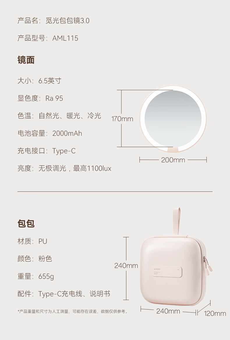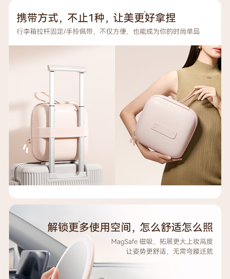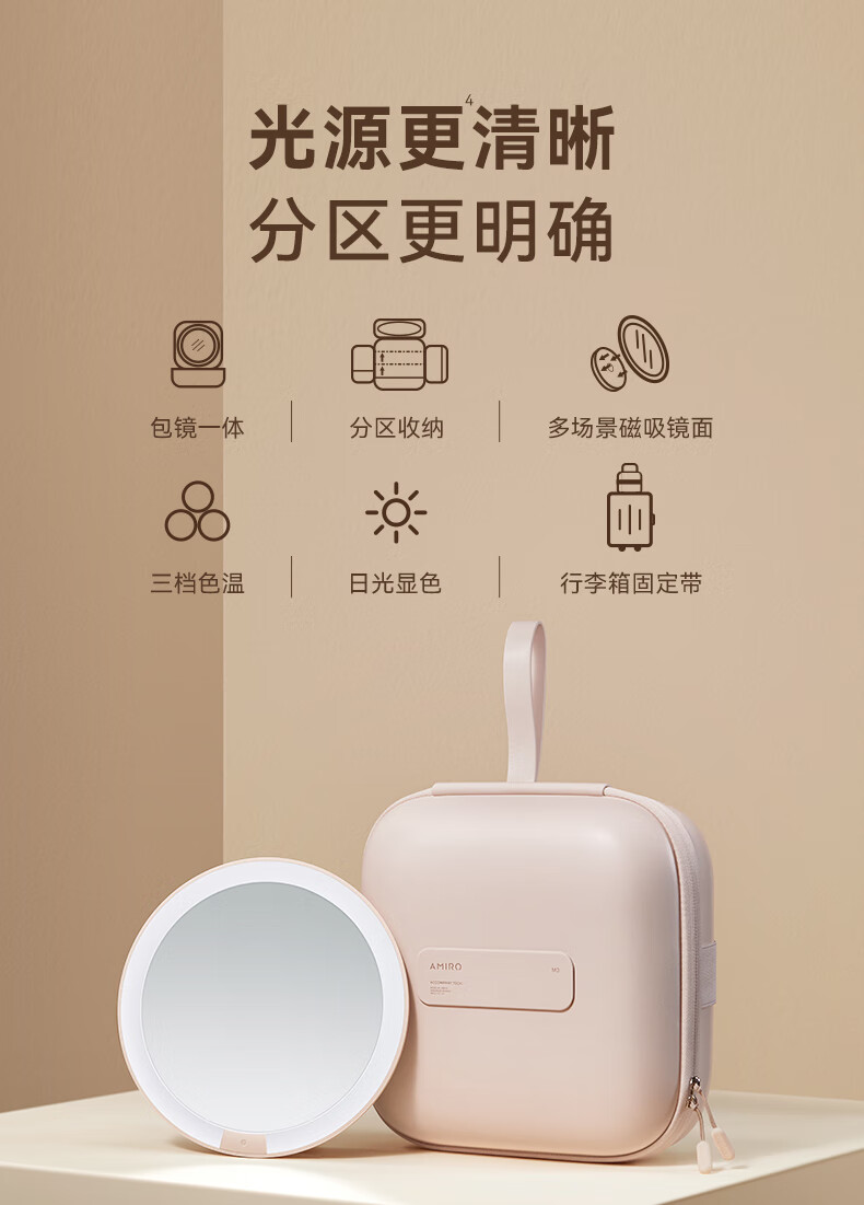 MiGuang bag mirror magnetic makeup mirror LED lighted makeup mirror portable hand-held makeup bag makeup mirror M3.0 magnetic mirror pink