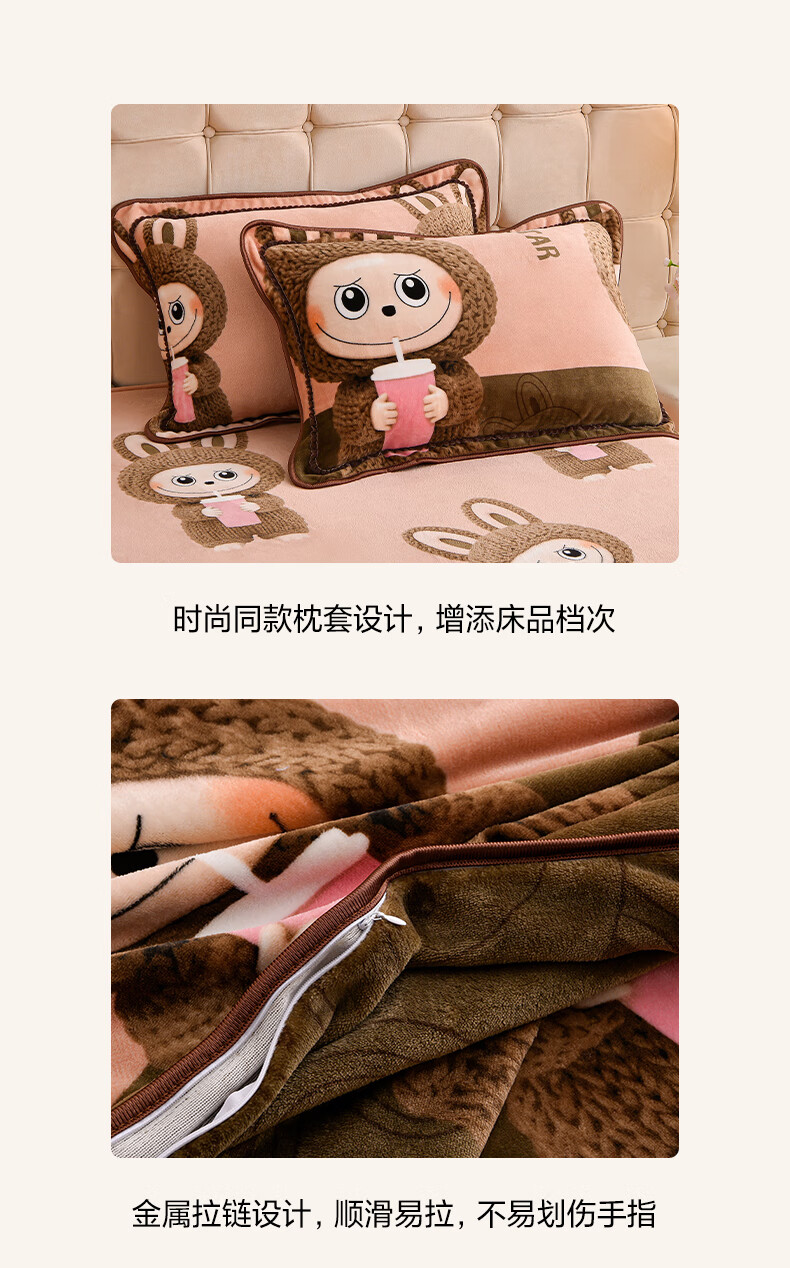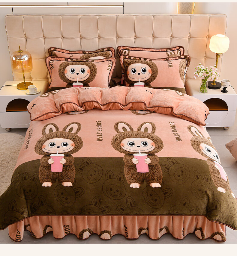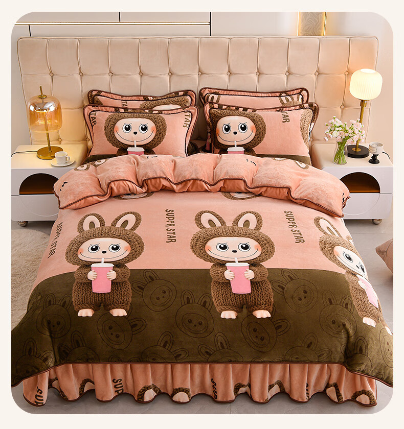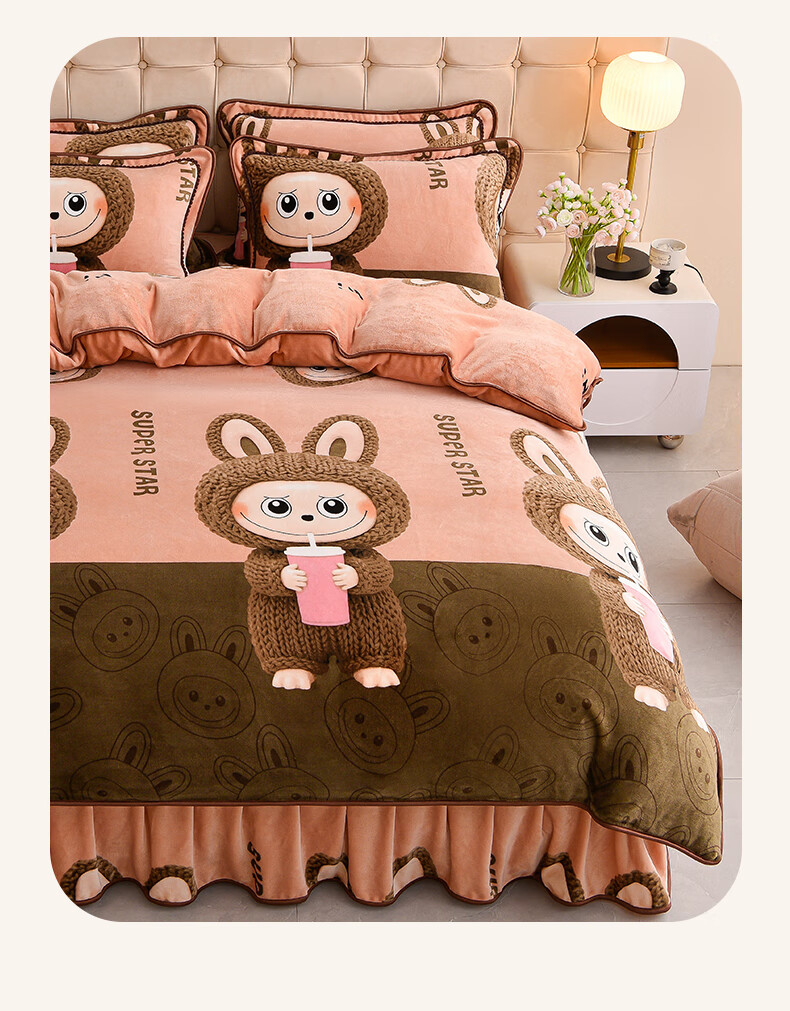 Langsha Winter Milk Velvet Four-piece Set 2025 New Labbu Winter Double-sided Thickened Baby Coral Velvet Quilt Cover Sheets Labbu 1.2m Bed Sheet Style Quilt Cover 150*200cm Three-piece Set