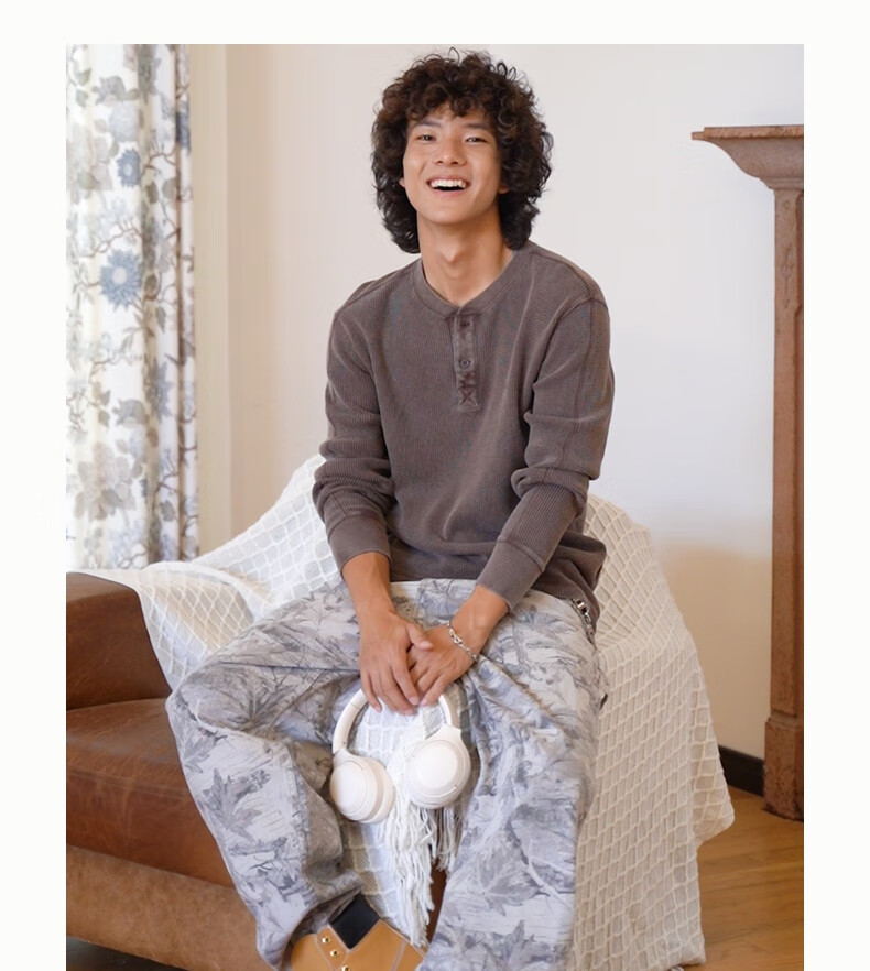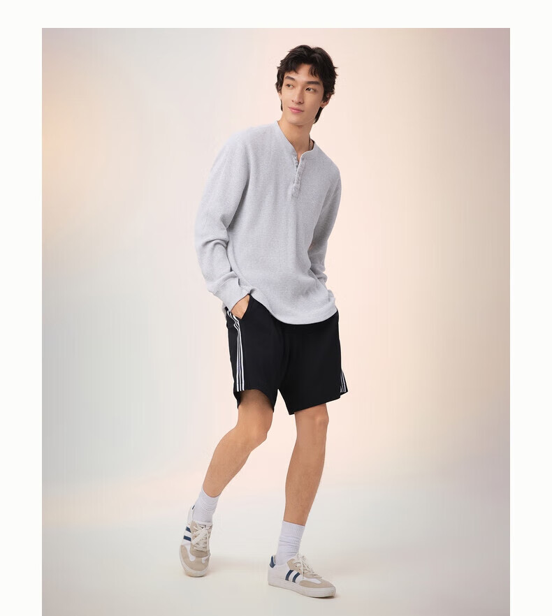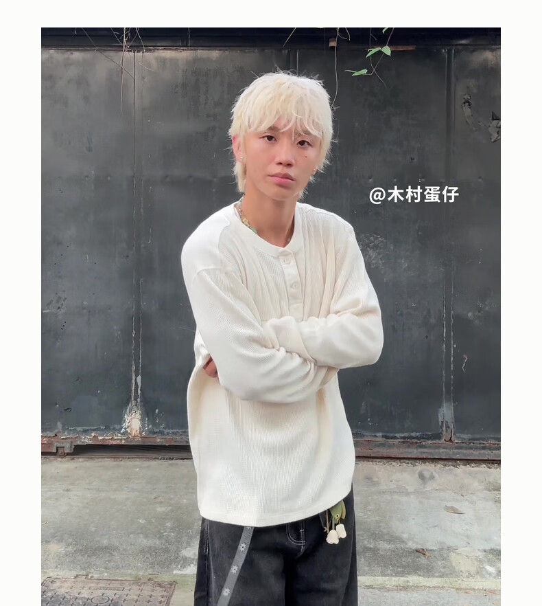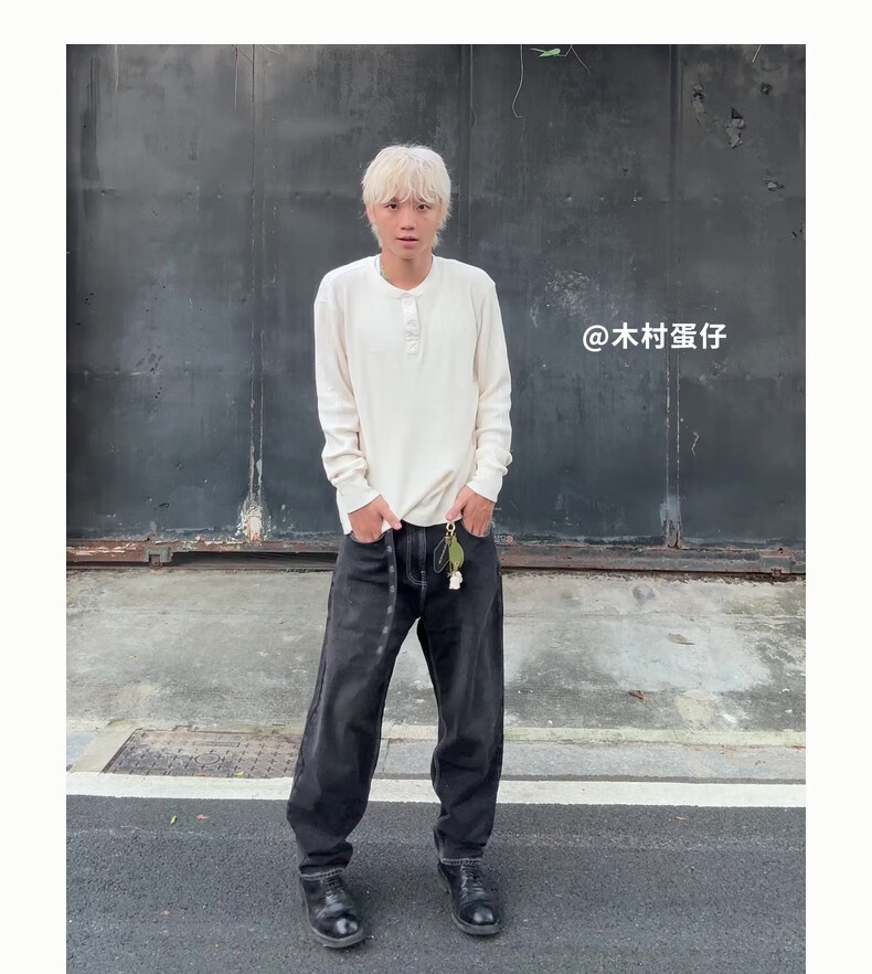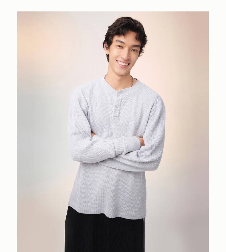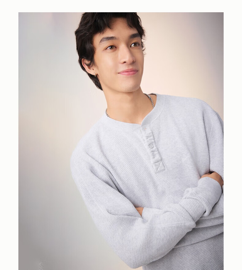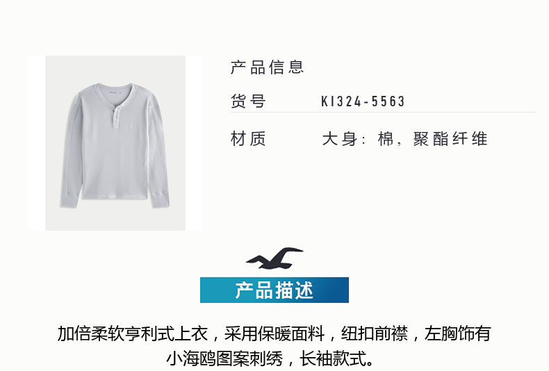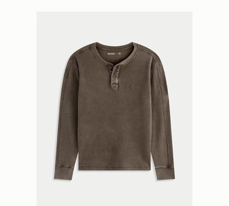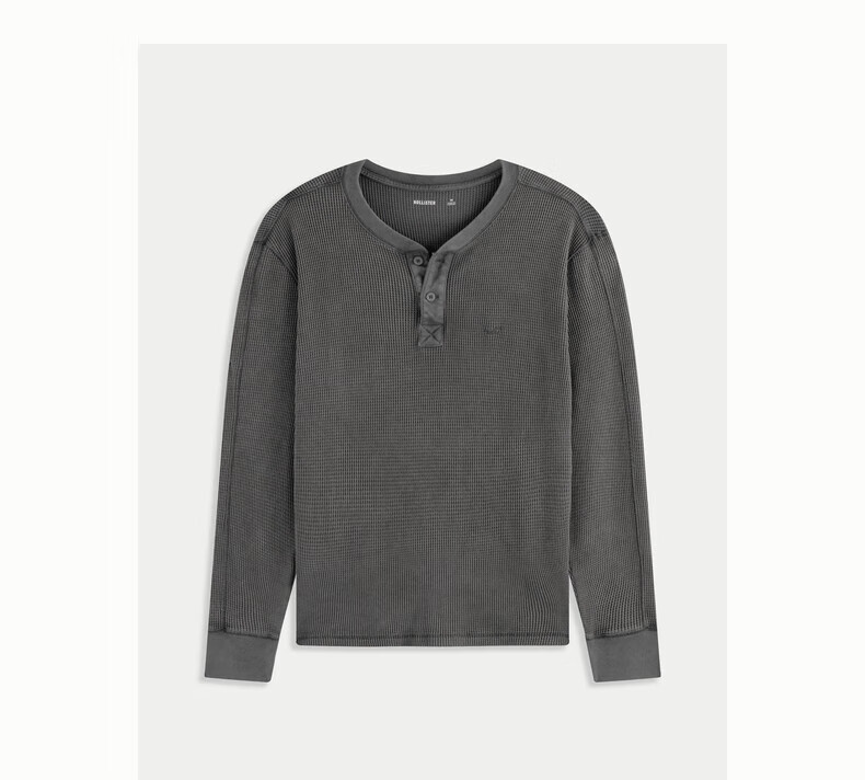 HOLLISTER Multicolor Henley Shirt Little Seagull Pattern 25 Autumn and Winter T-shirt for Men and Women 324-5563 Washed Black S (175/92A)