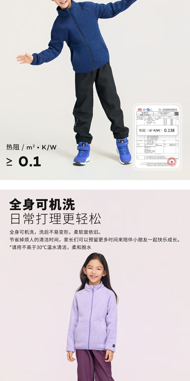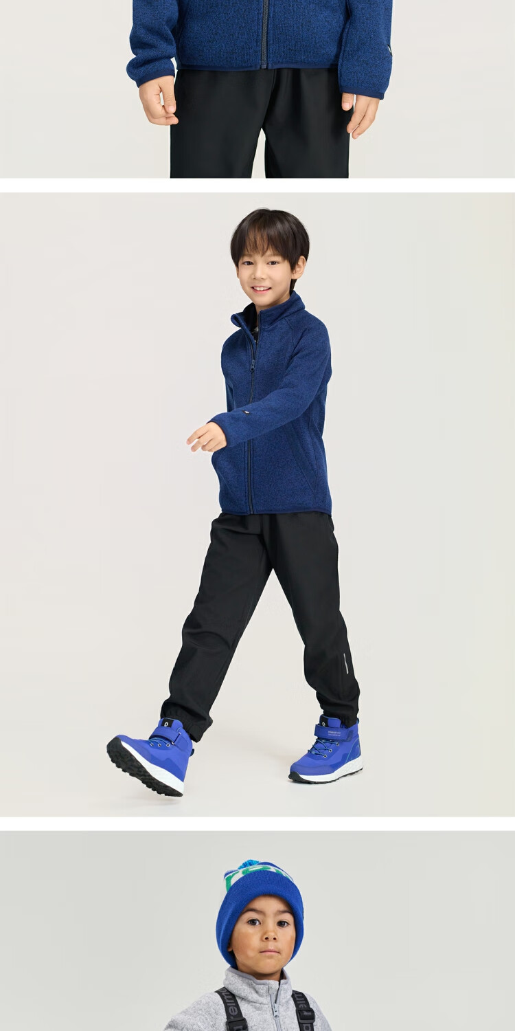 Reima Finland reima2025 new autumn and winter new products for boys and girls, warm fleece solid color knitted cardigan sweatshirt for boys and girls, blue-6760 140 cm